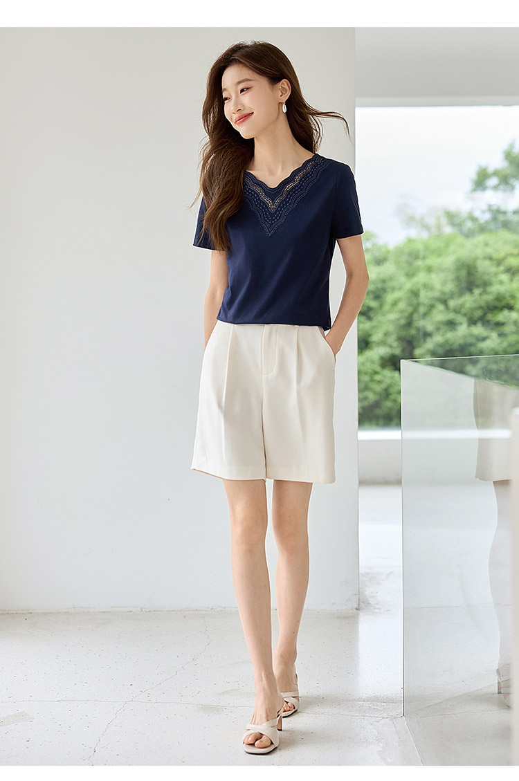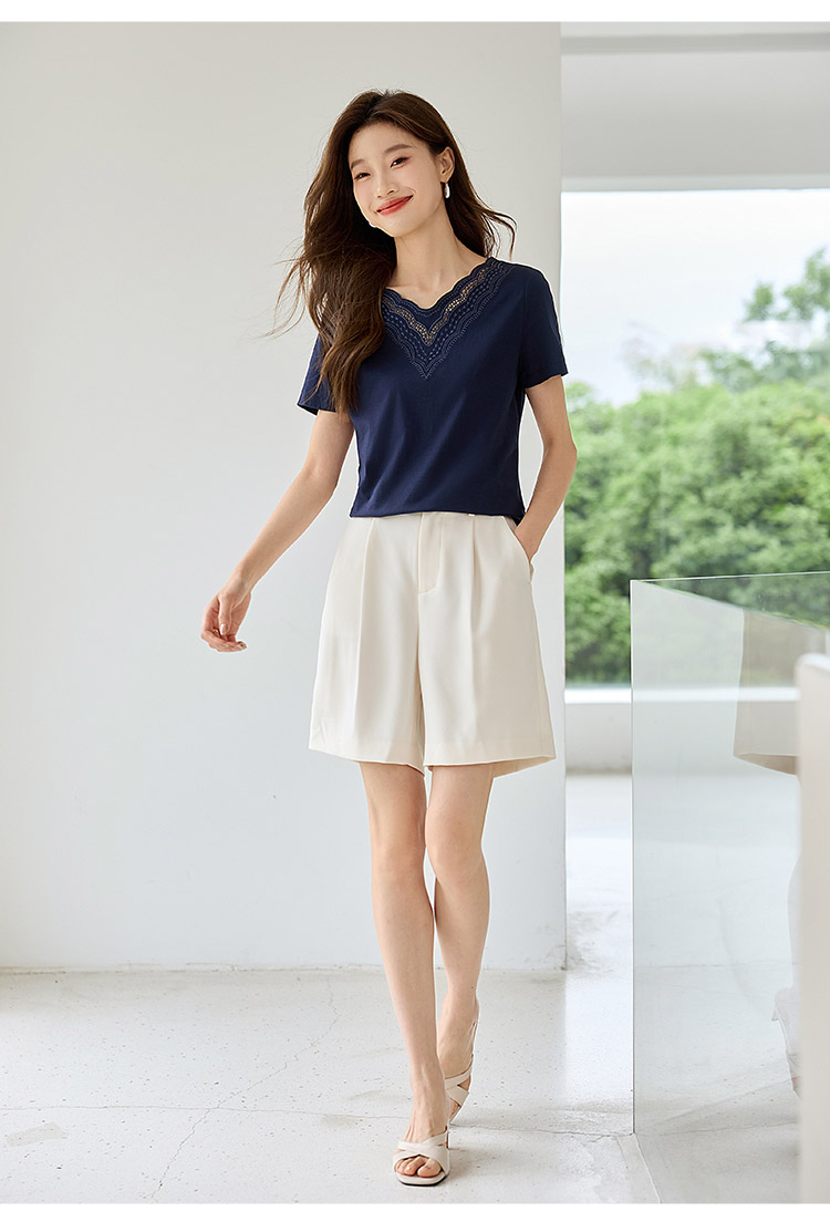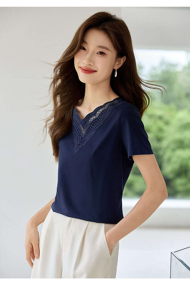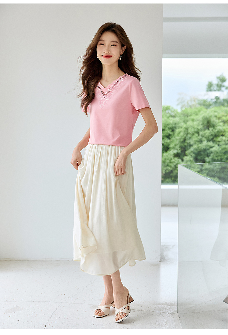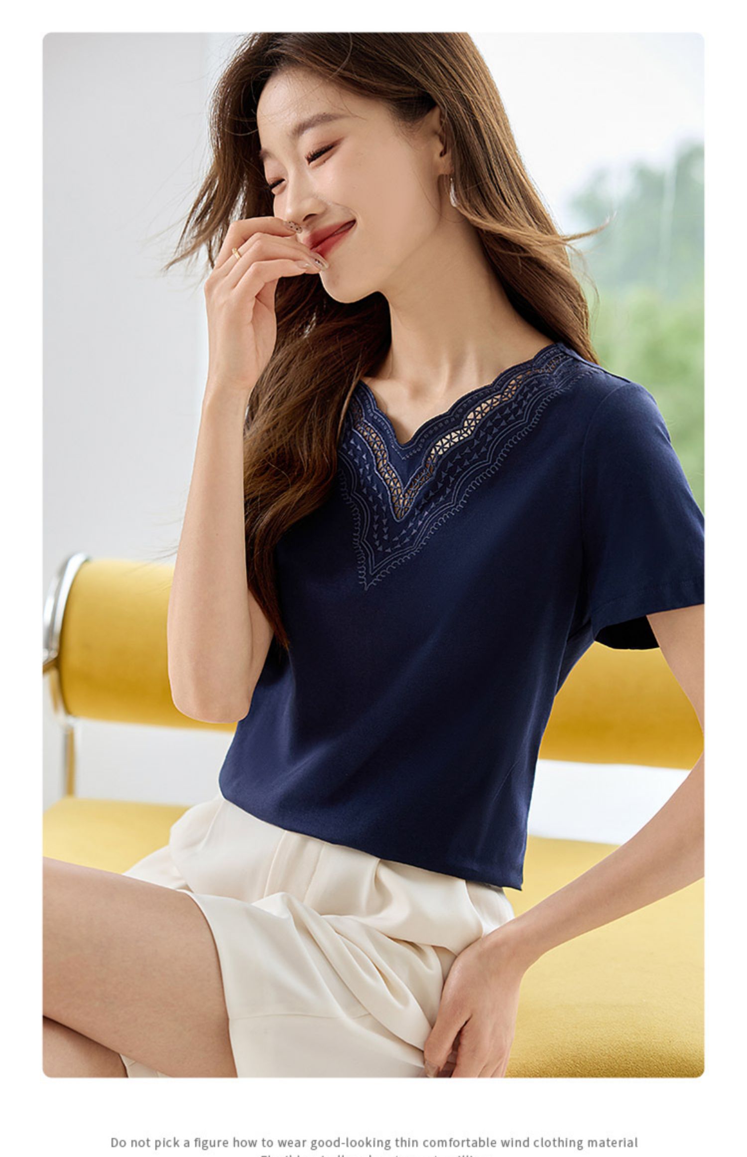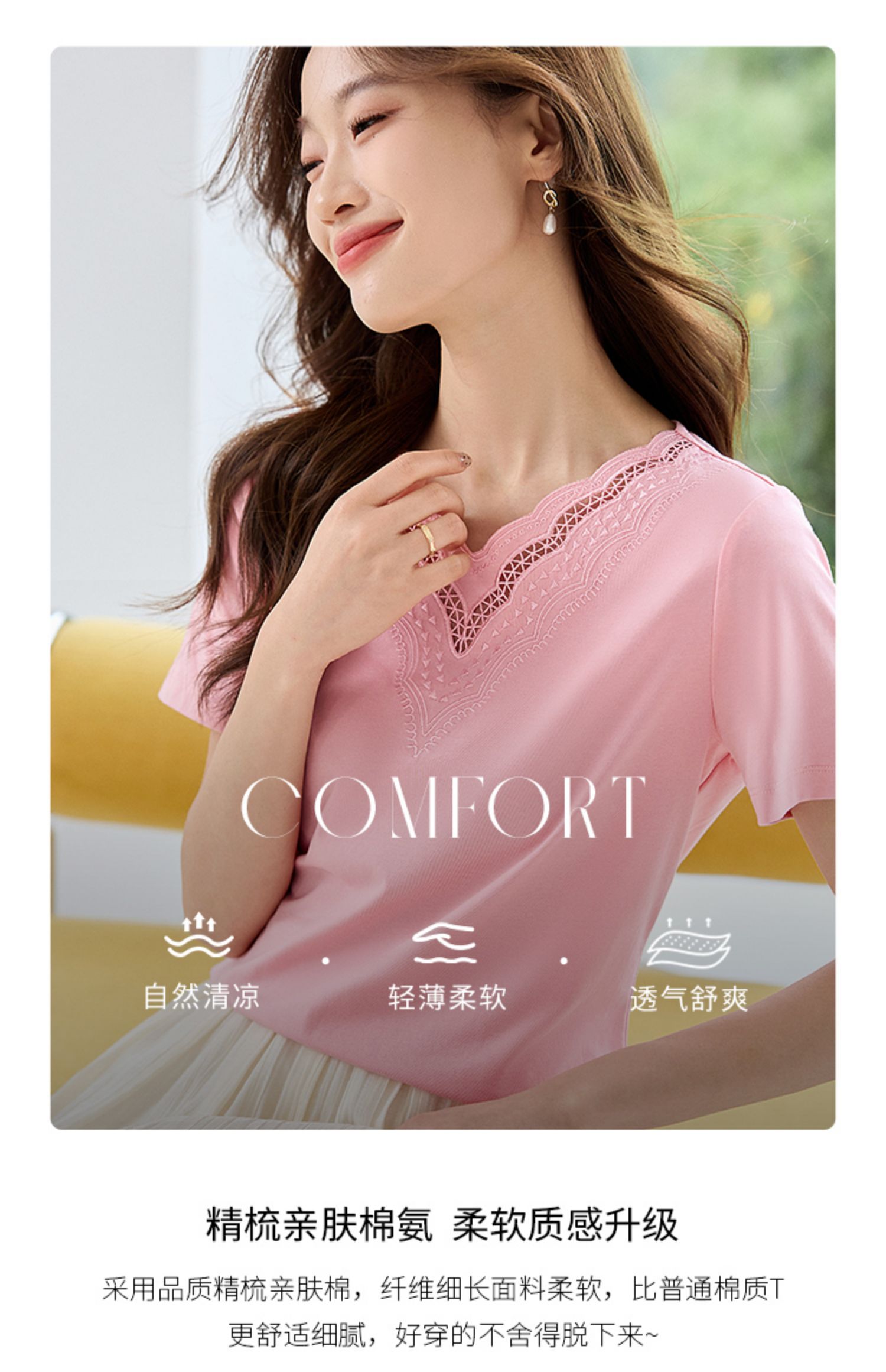 【专属特价】熙世界正肩t恤短袖2025夏季新款宽松显瘦刺绣V领百搭甜美上衣