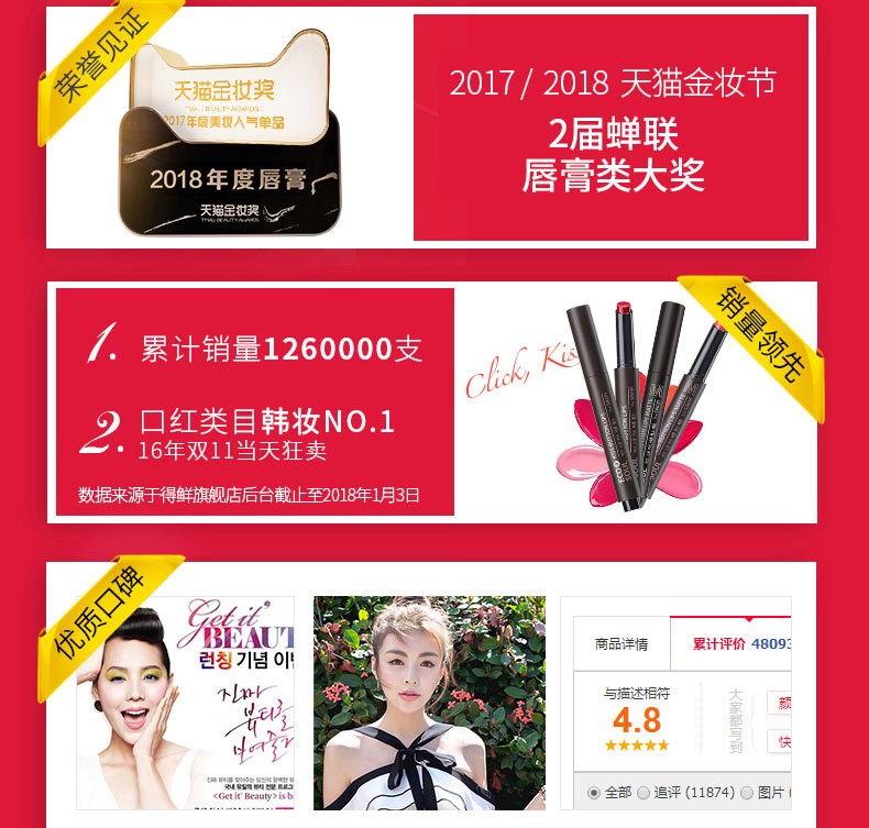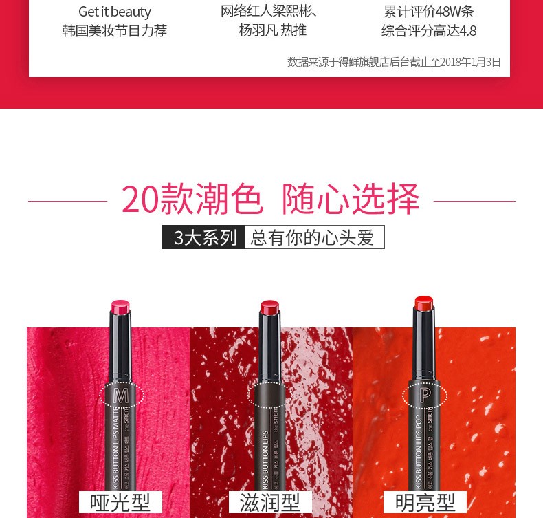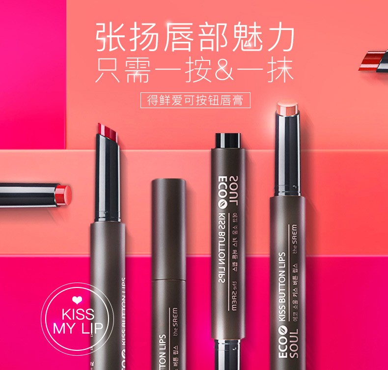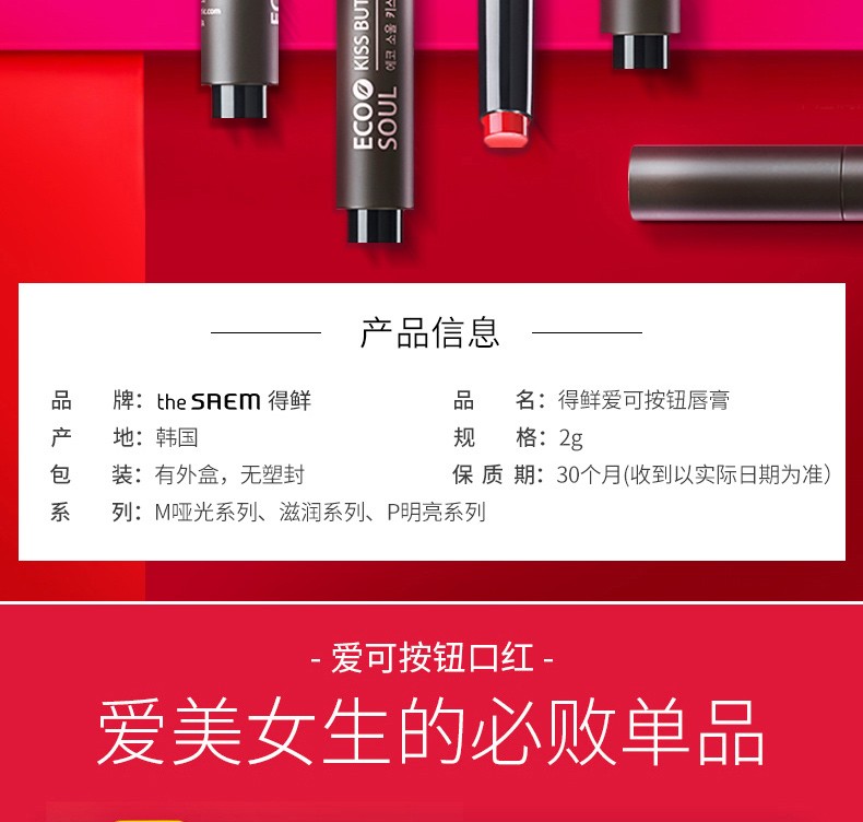 THE SAEM/得鲜 爱可按钮唇膏01热吻红色JPY带授权招加盟代理