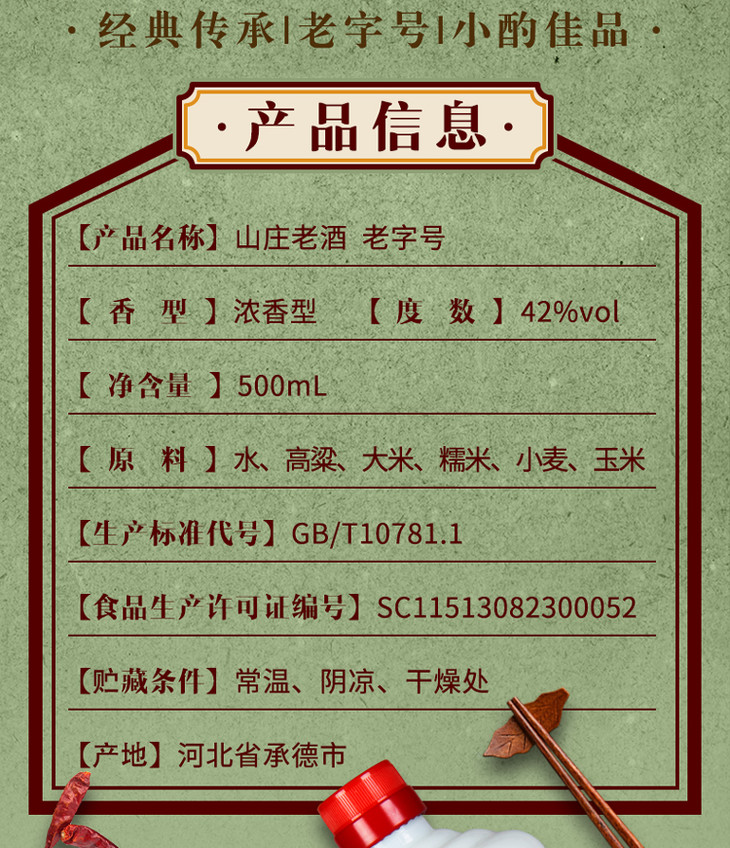 山庄老酒 老字号 42°纯粮浓香型白酒 整箱装6瓶