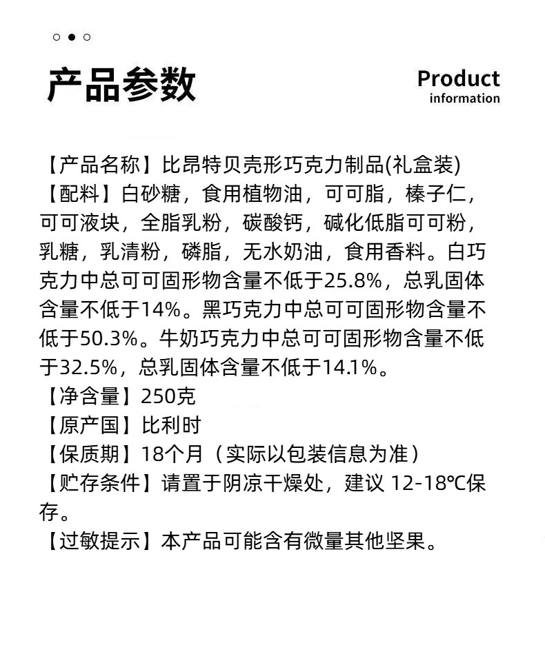 比利时进口比昂特贝壳形巧克力制品(礼盒装)250g