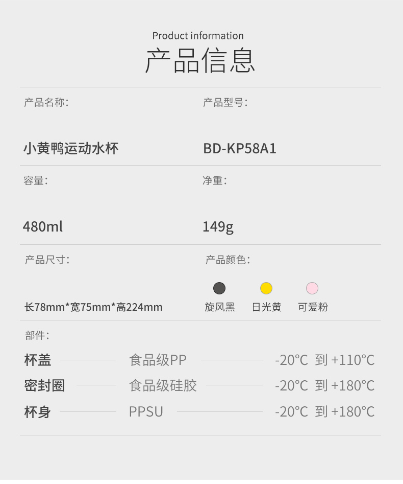 【专柜同款精品】BD-KP58A1 B.Duck运动水杯480ml(吸管盖)