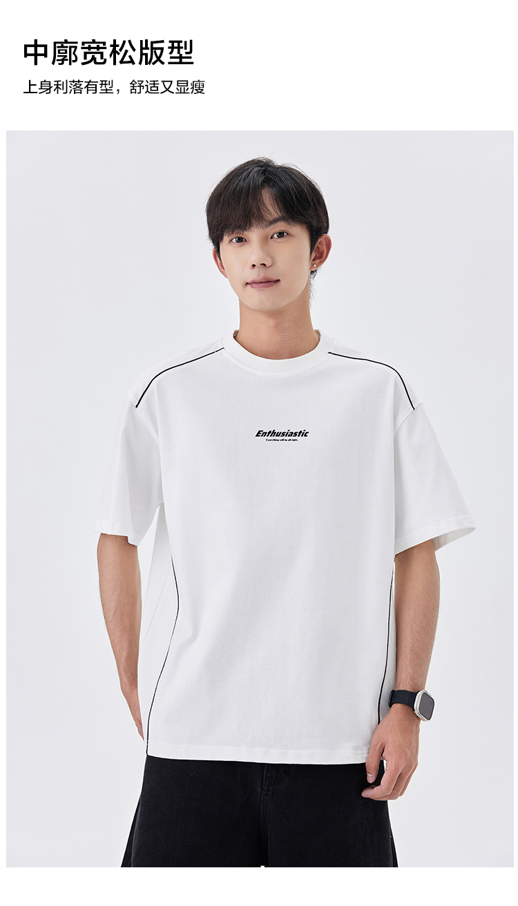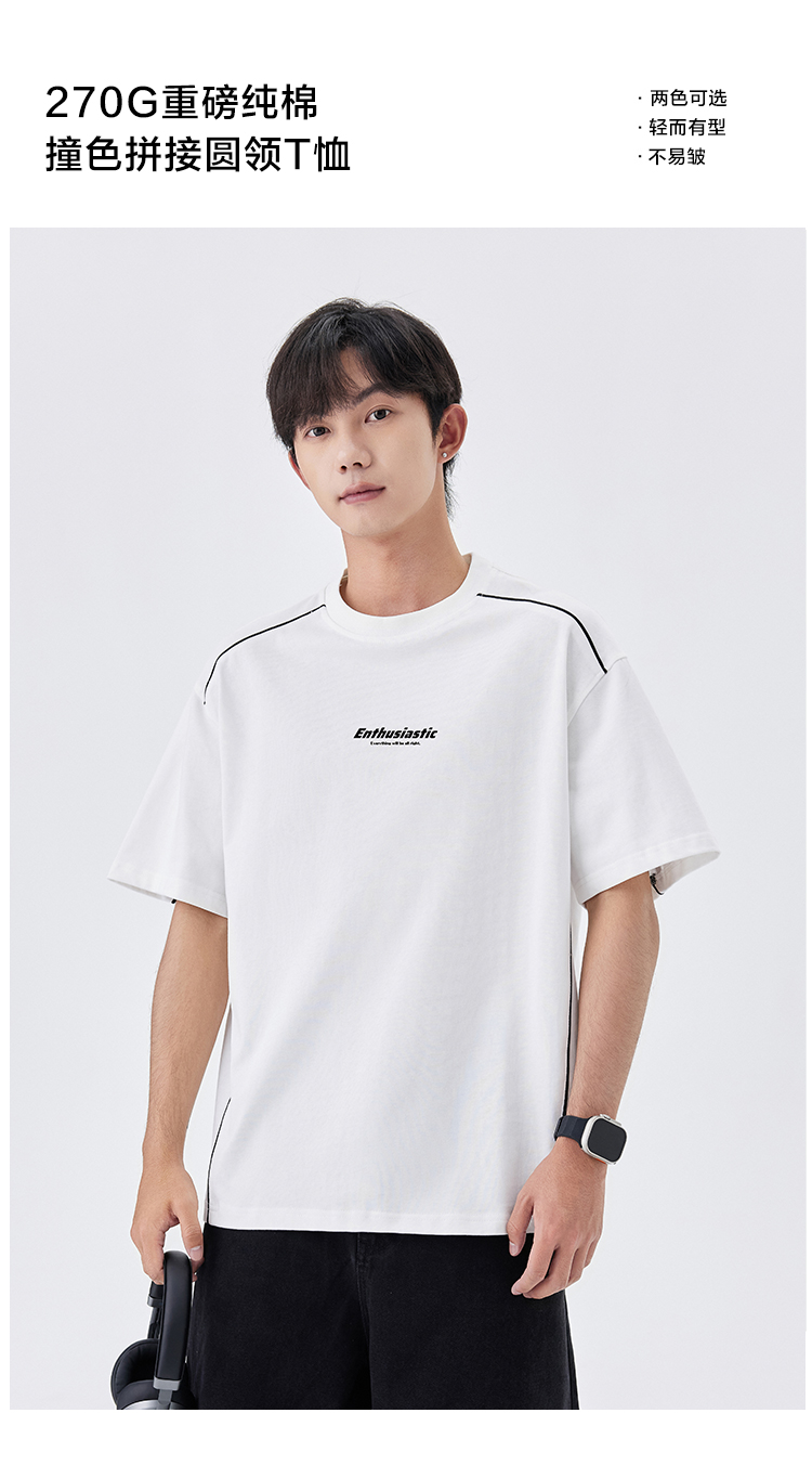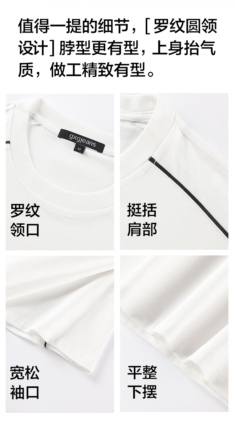 gxgjeans男装【重磅全棉】男士运动T恤25夏款潮流百搭简约休闲青少年短袖K&C