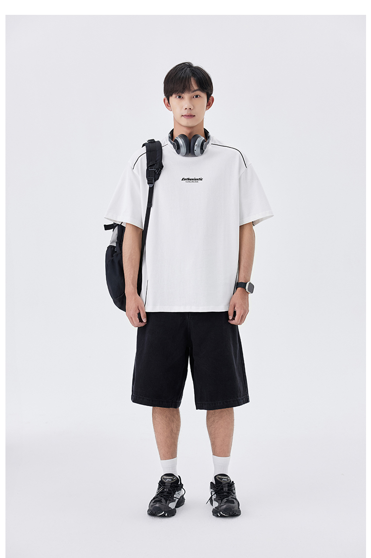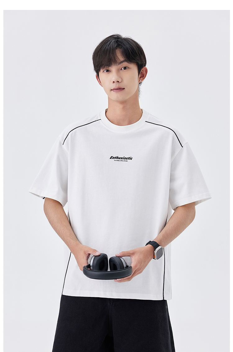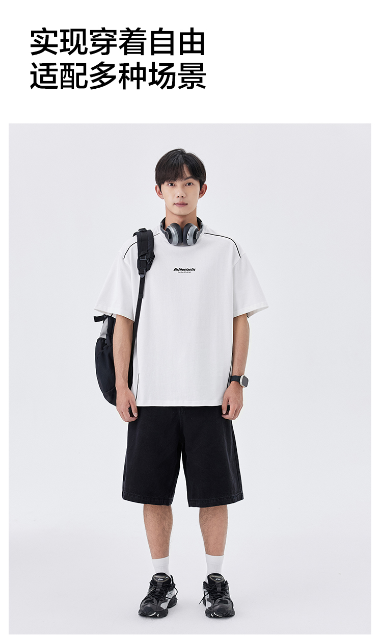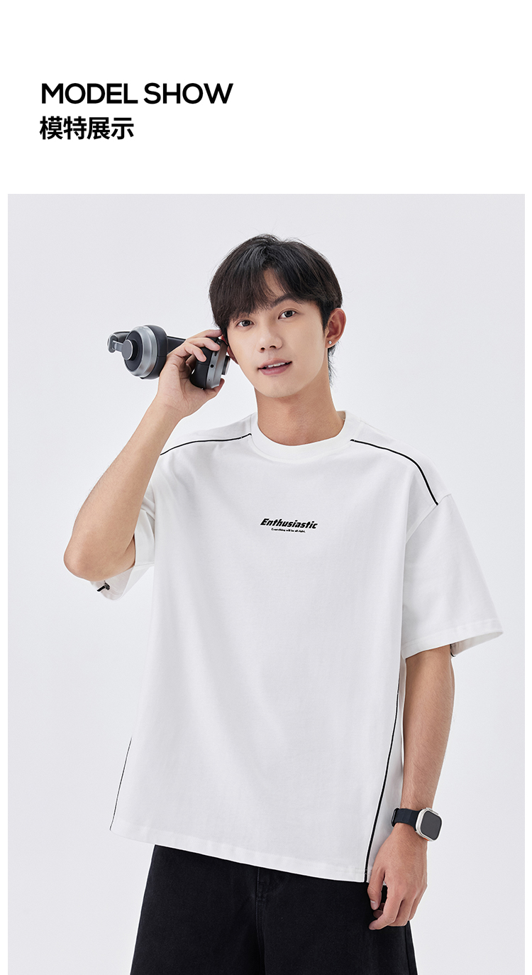 gxgjeans男装【重磅全棉】男士运动T恤25夏款潮流百搭简约休闲青少年短袖K&C