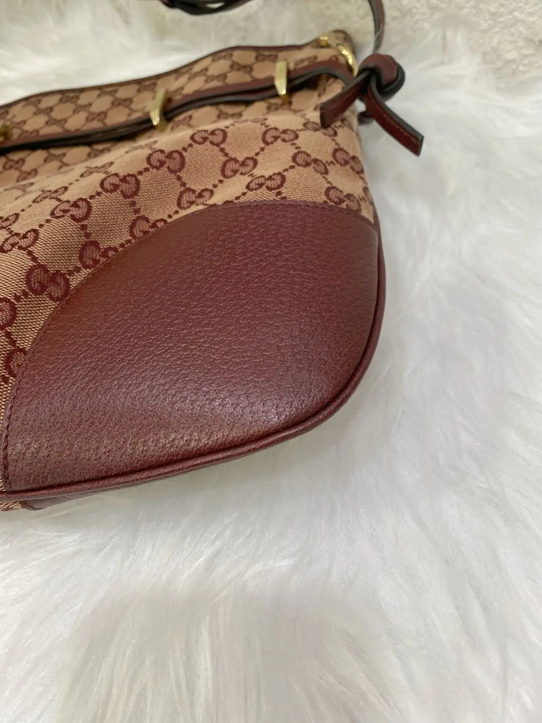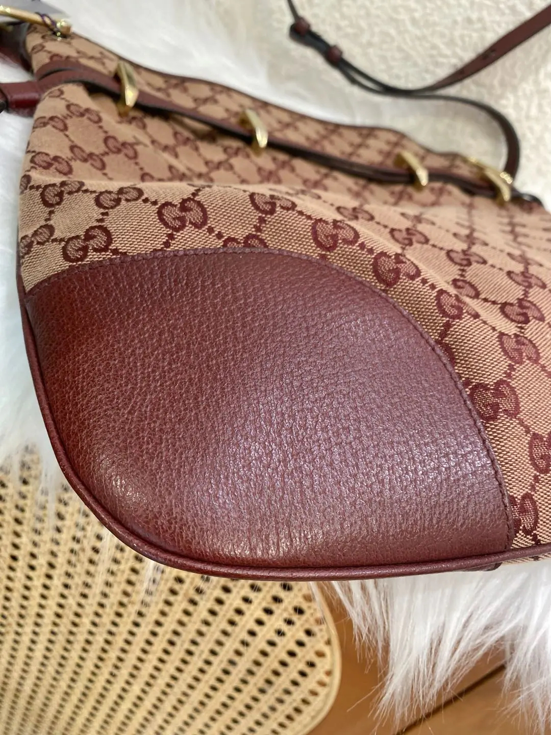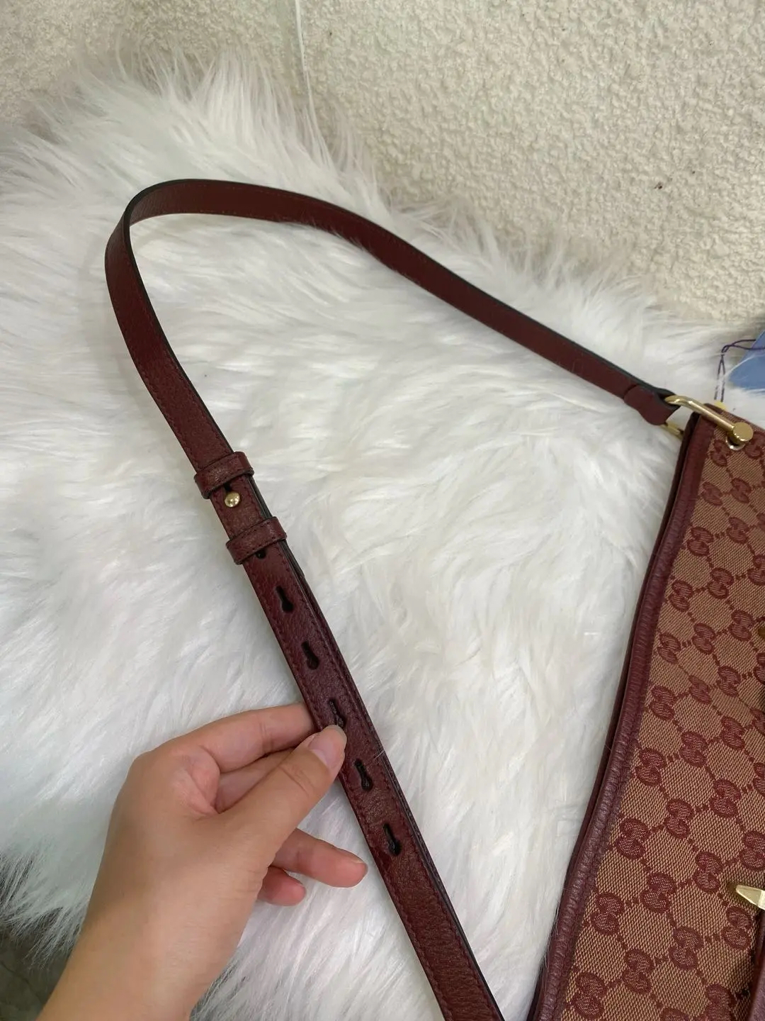 【商品详情】正品二手 Gucci 1955 马衔扣 酒红色 老花 帆布拼皮 邮差包💗97新 36×35。复古时尚