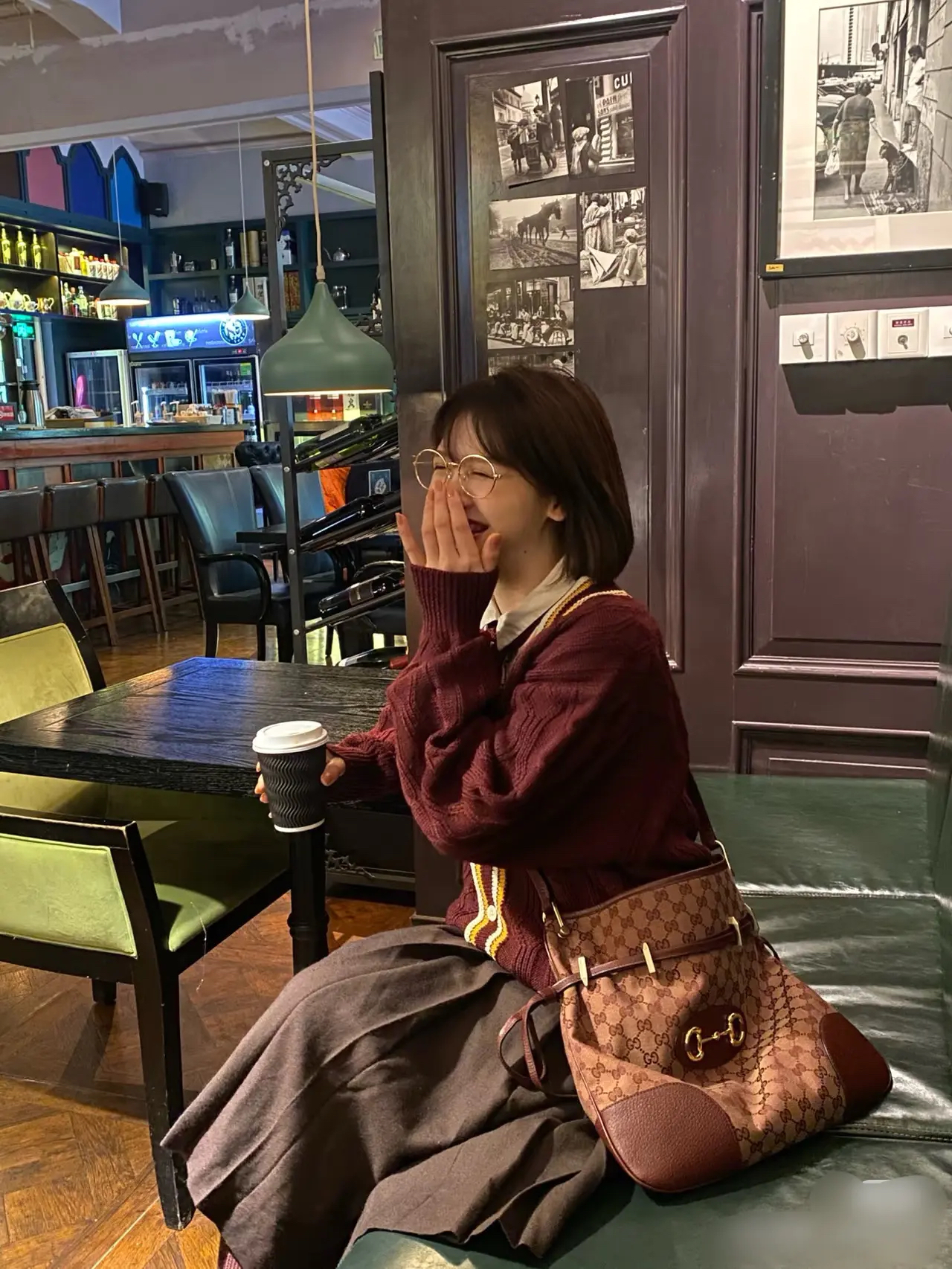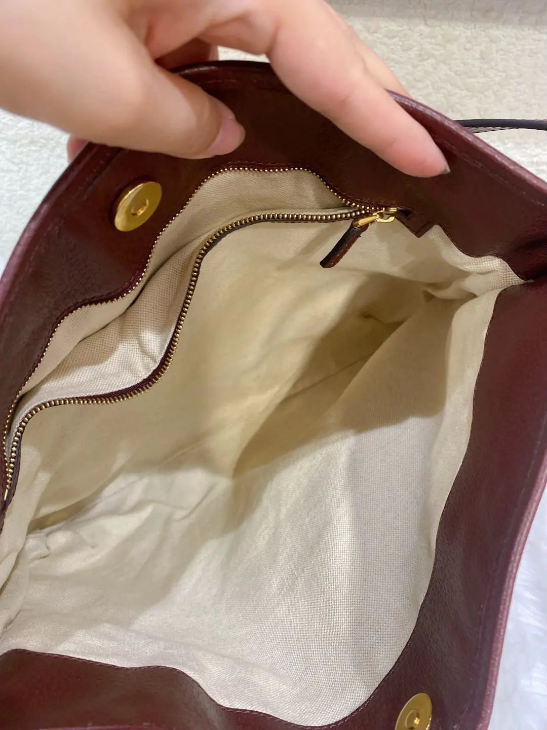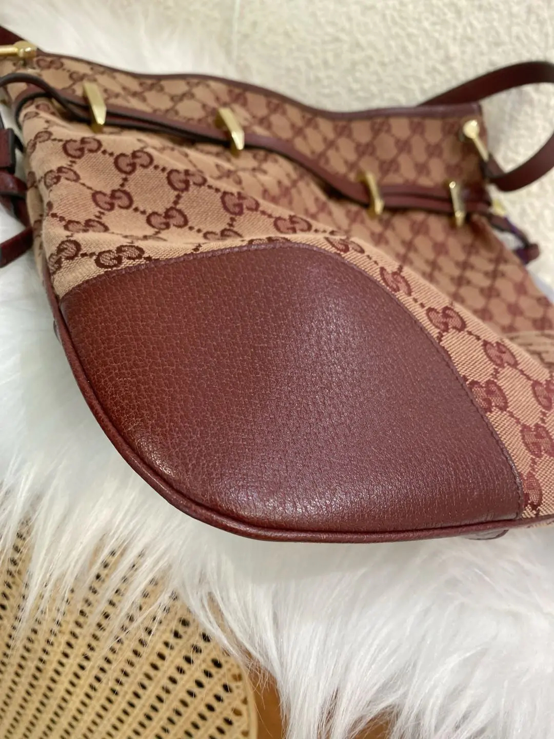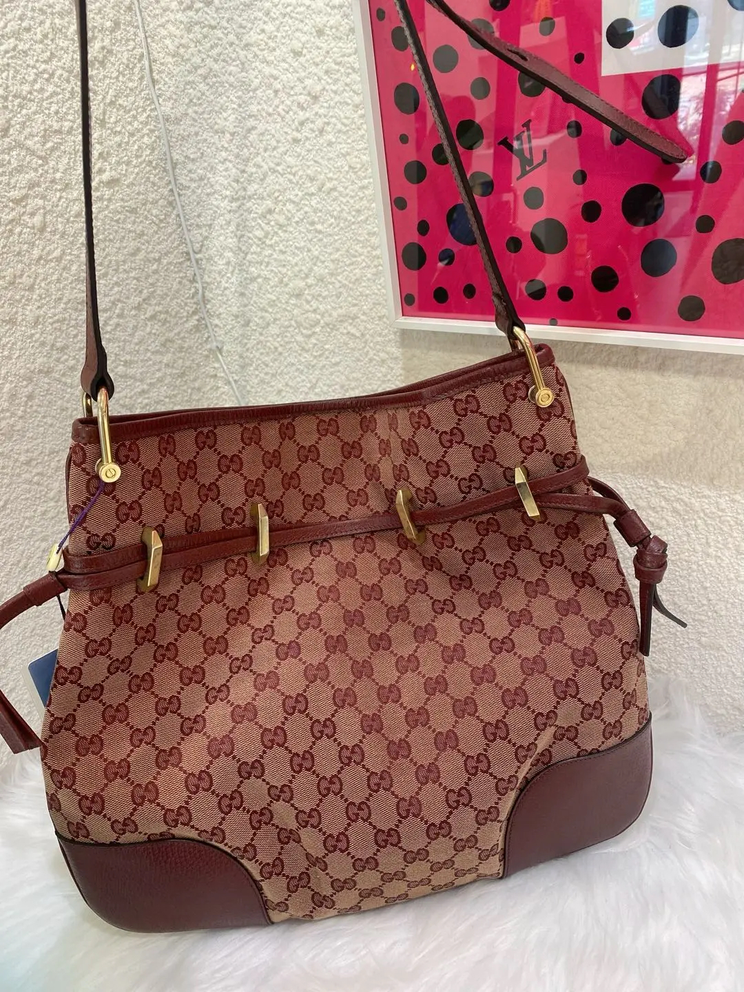 【商品详情】正品二手 Gucci 1955 马衔扣 酒红色 老花 帆布拼皮 邮差包💗97新 36×35。复古时尚