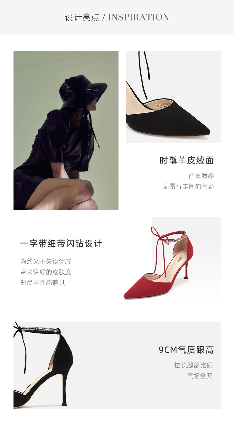 westory女鞋2021夏季新款尖头高跟细跟包头一字带凉鞋W21AH53051