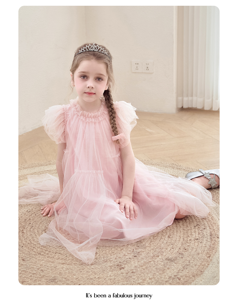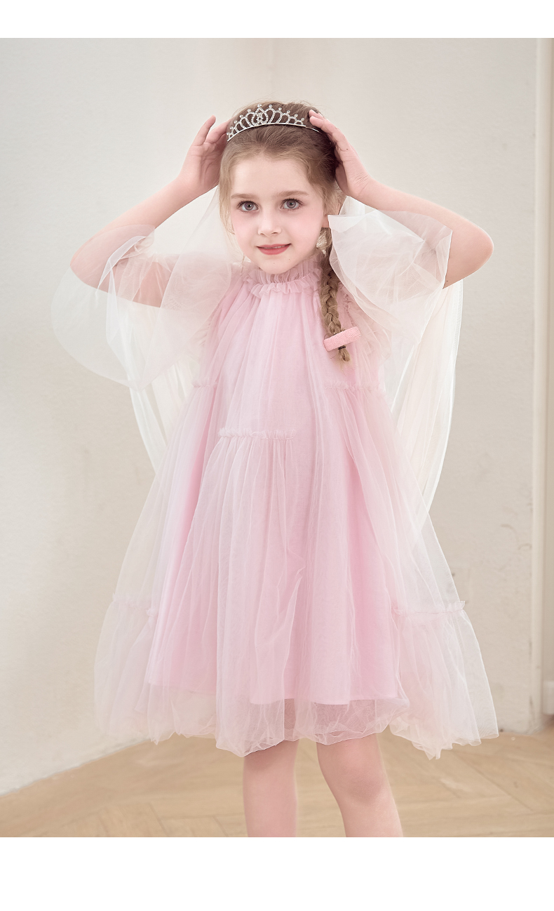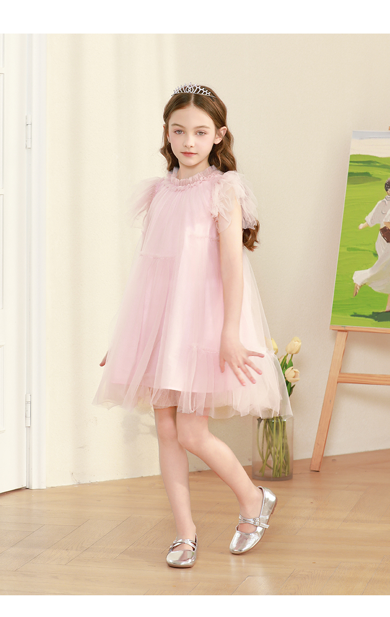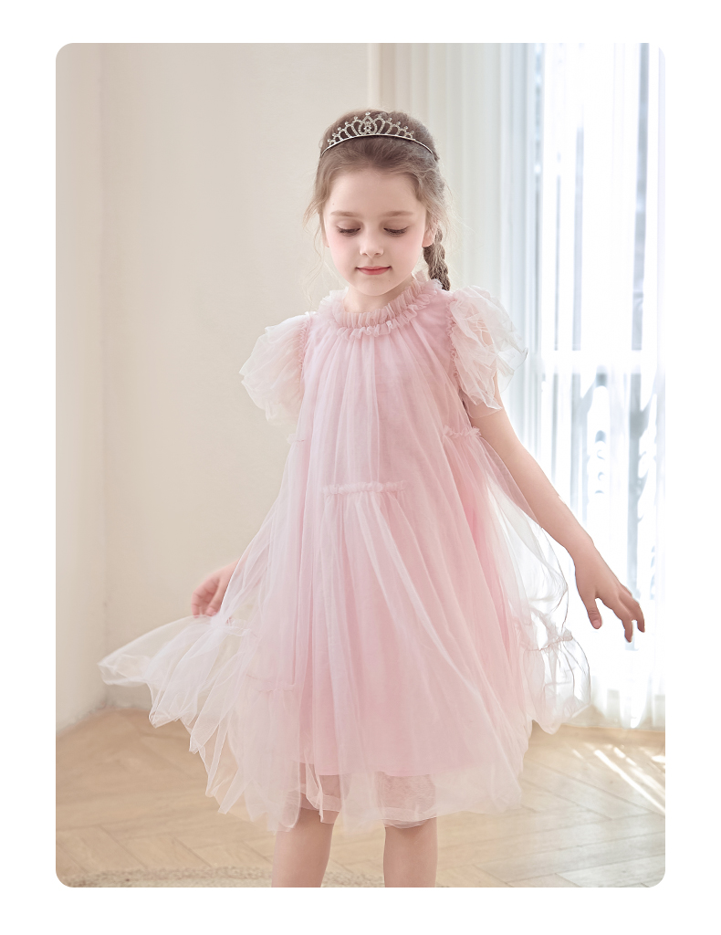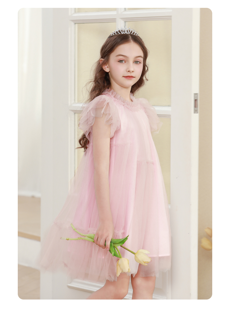 女童连衣裙2024夏新款粉色甜美公主裙蓬蓬裙演出礼服儿童网纱裙子