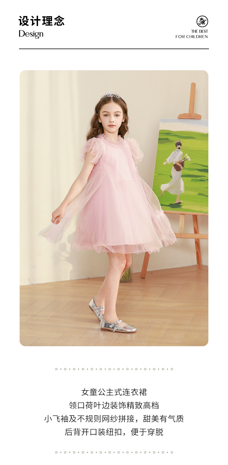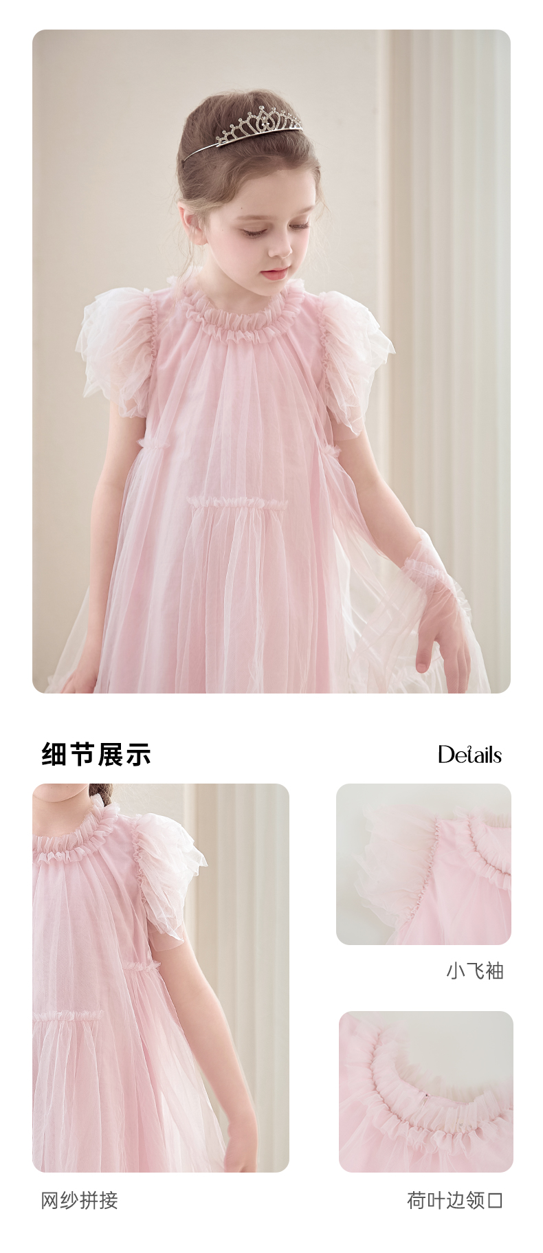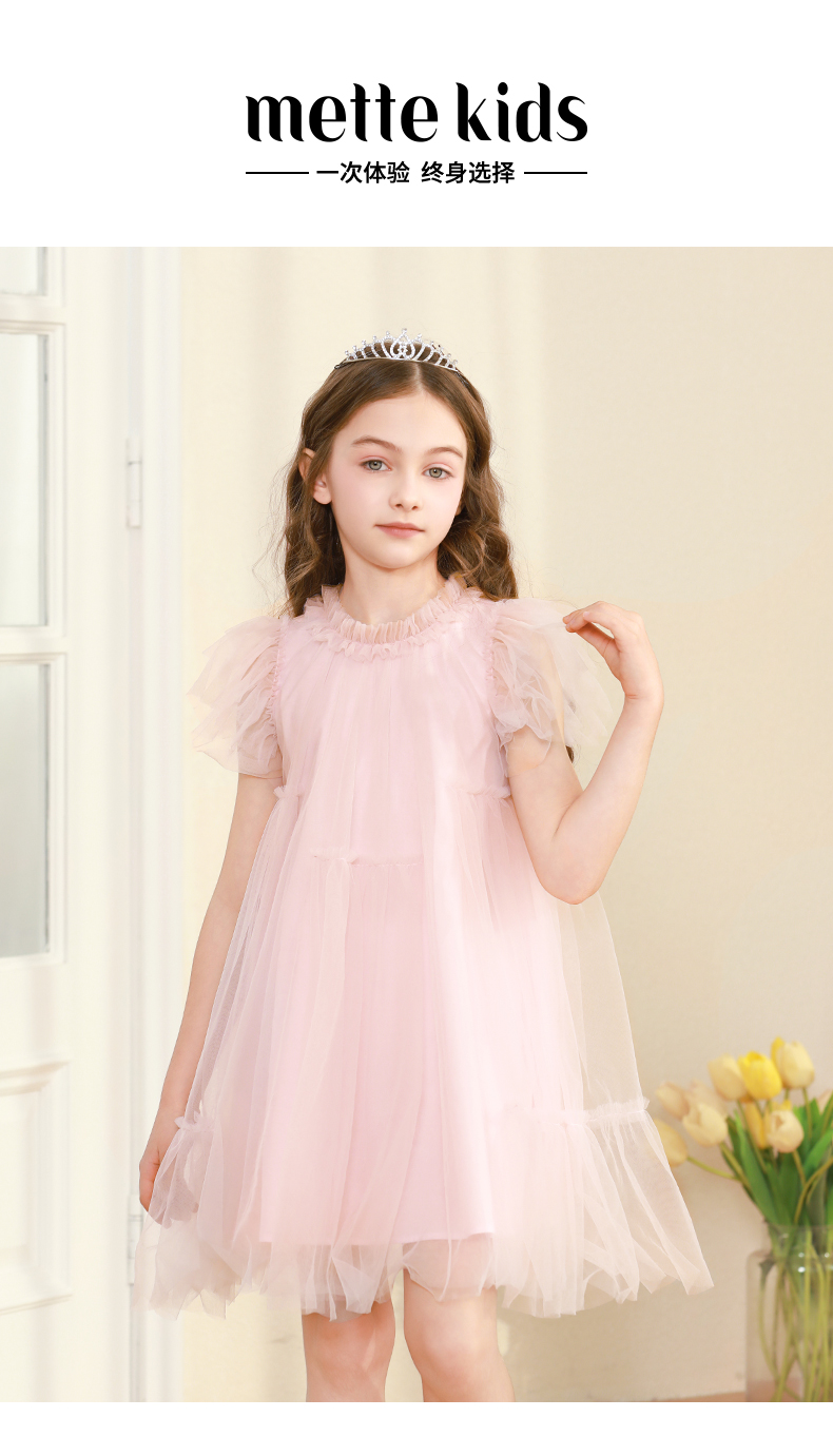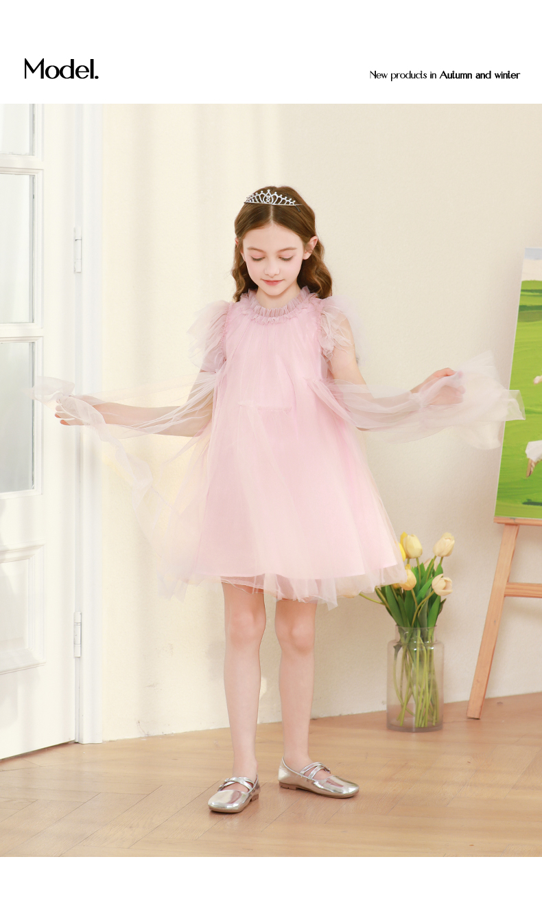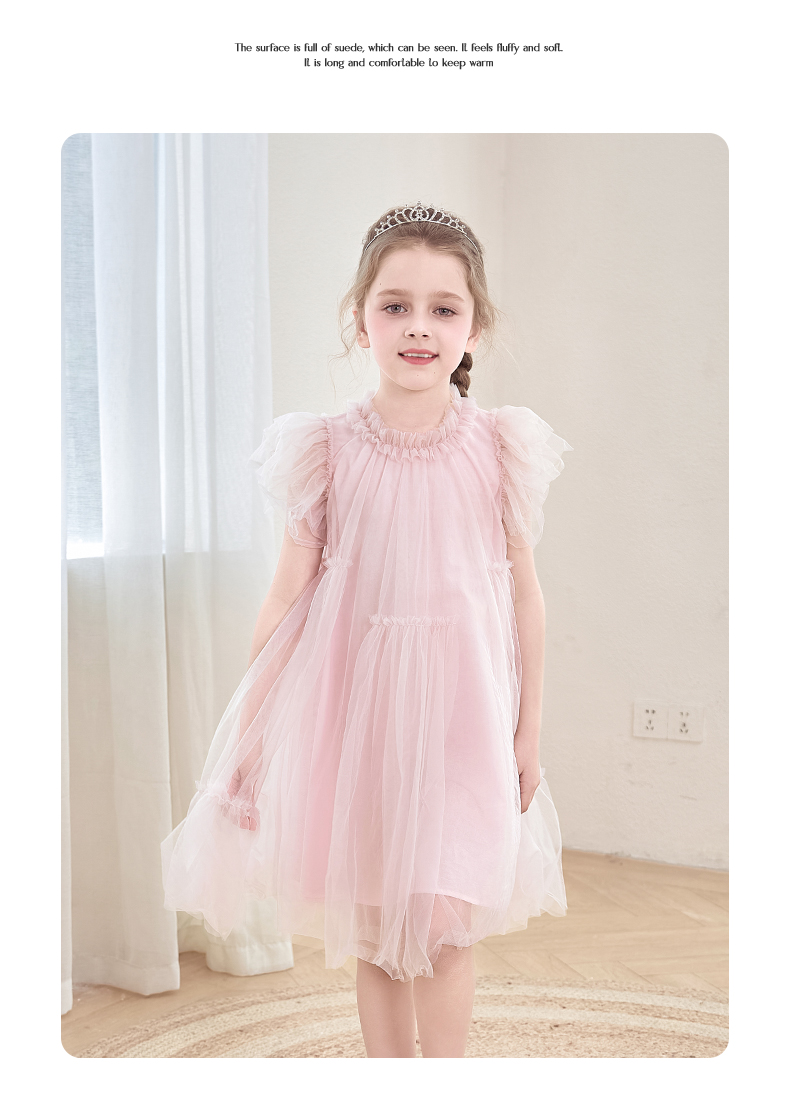 女童连衣裙2024夏新款粉色甜美公主裙蓬蓬裙演出礼服儿童网纱裙子