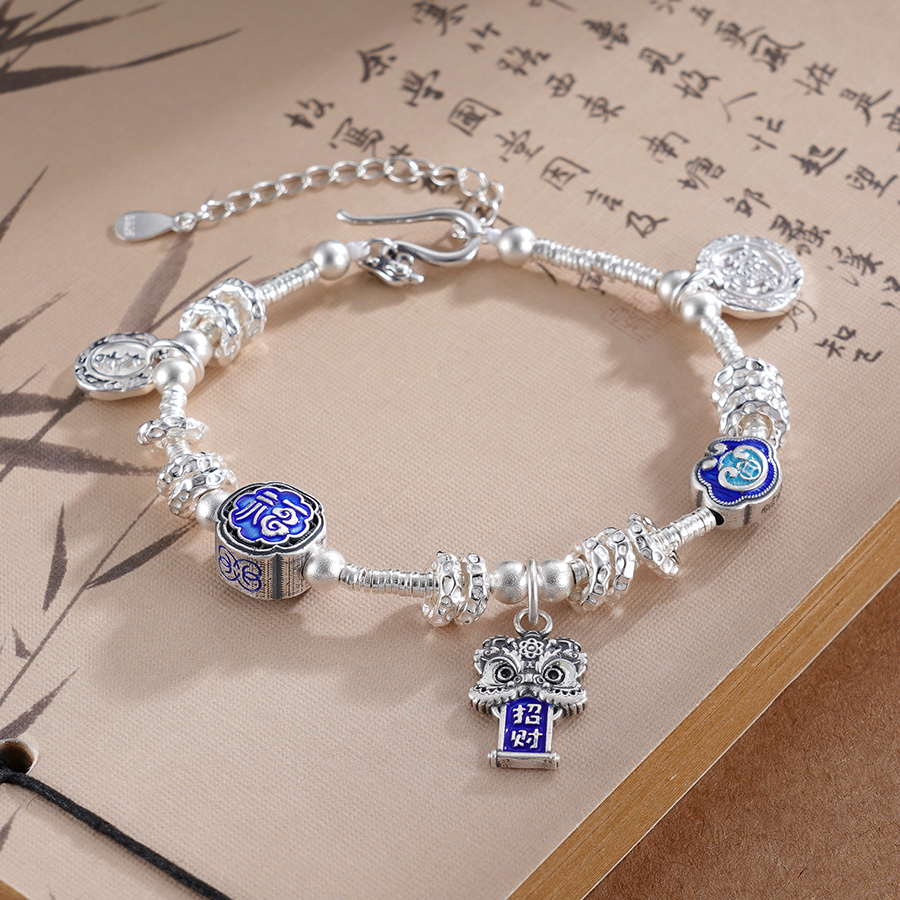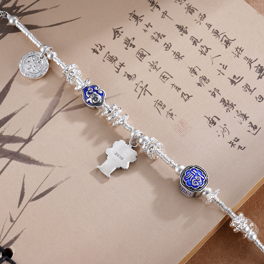 子佩集S925银【福瑞满满】手链【SL00859】纯银钱串腰缠万贯珐琅彩盘缠盘缠2504