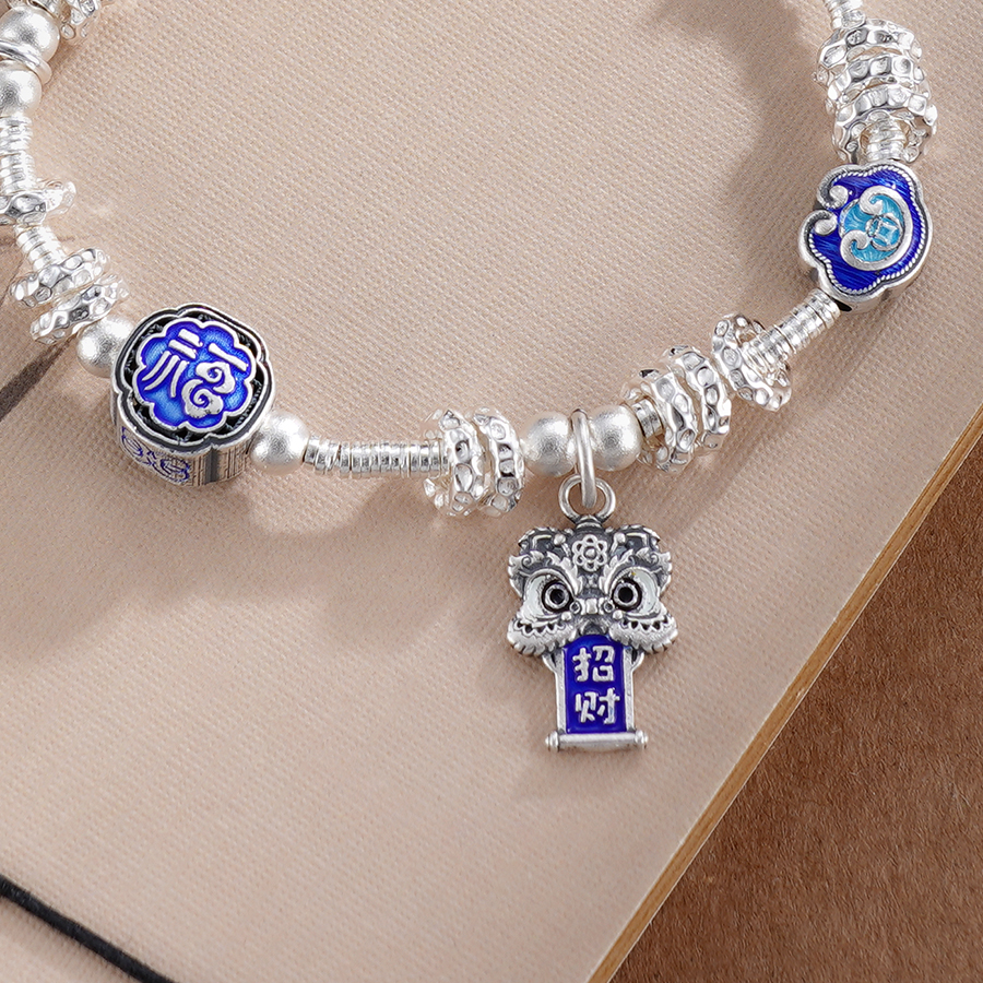 【寓意】:设计独特的盘缠手串,经醒狮瑞兽点缀,增添俏皮风格,象征喜上加喜,安乐相伴。