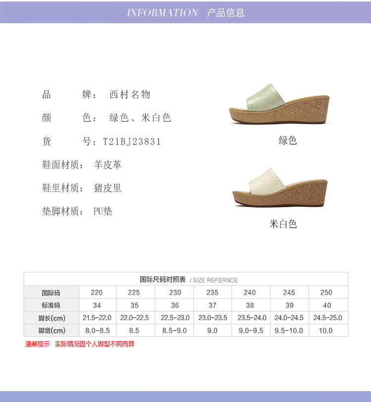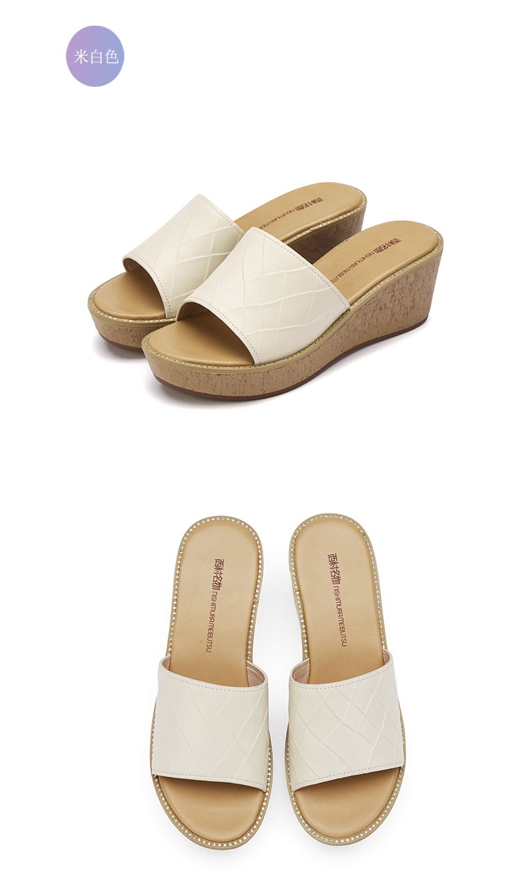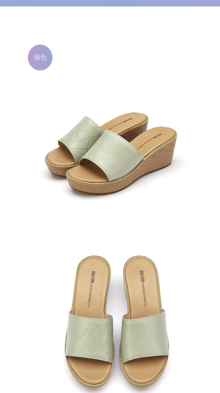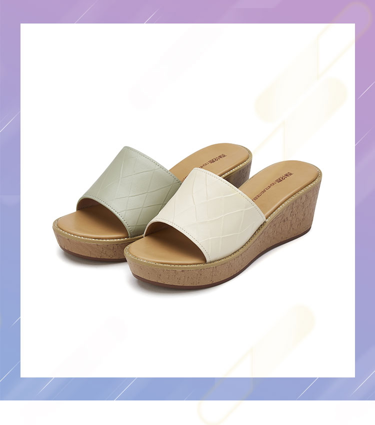 夏季新款休闲凉拖女厚底松糕外穿女拖鞋坡跟增高露趾女凉鞋T21BJ23831
