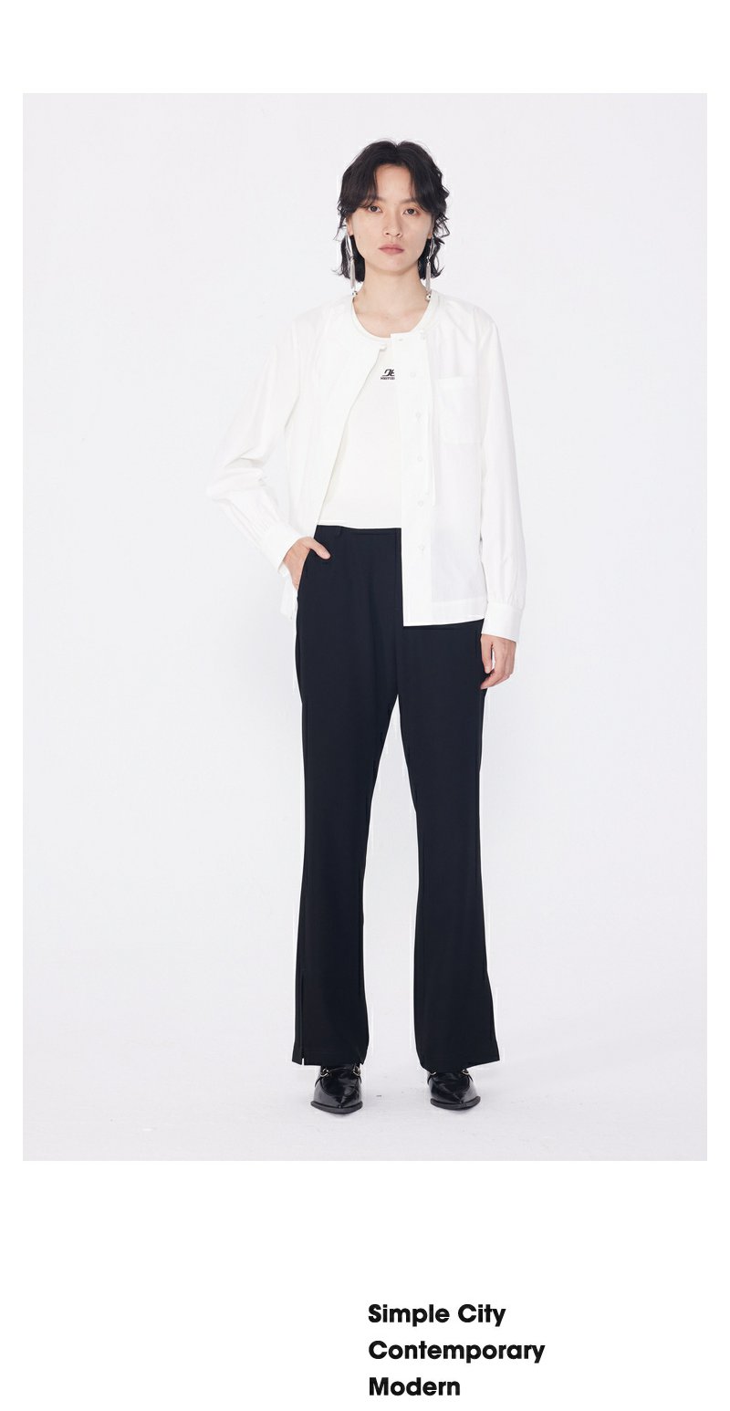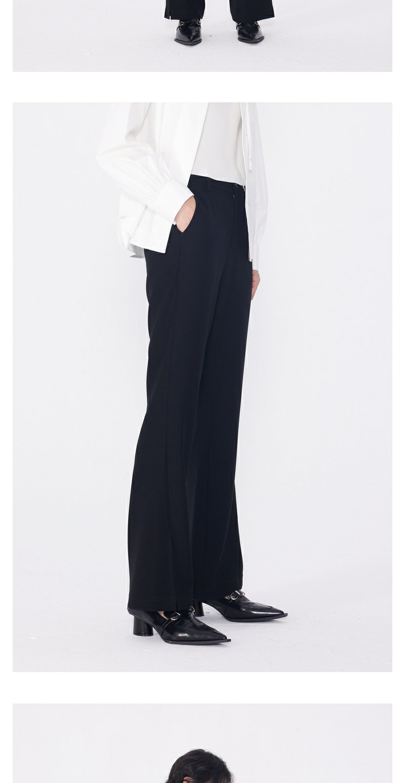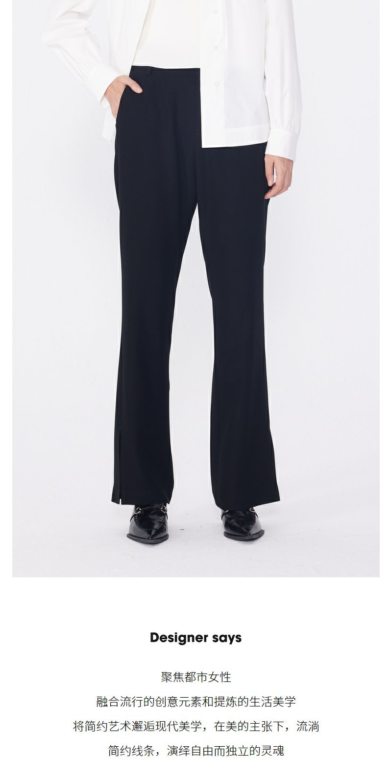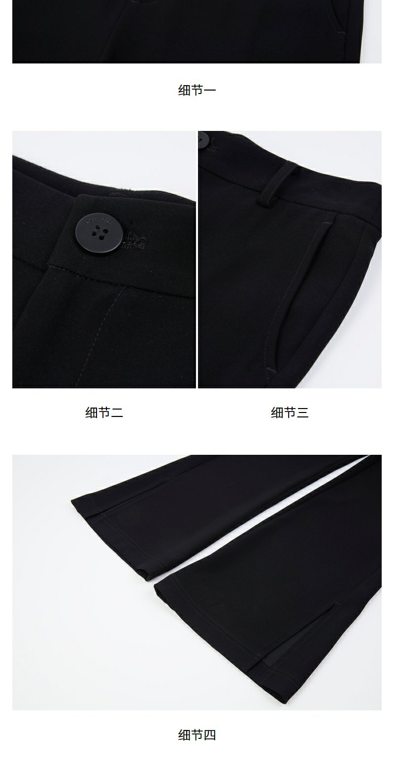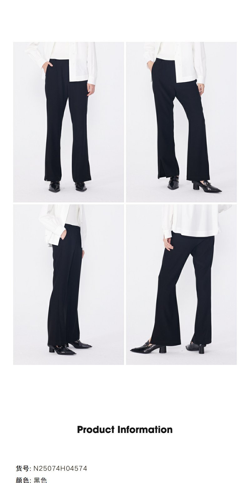 NEELLY纳俪商场同款春季新款黑色微喇裤女显瘦设计感开口通勤长裤N25074H04574