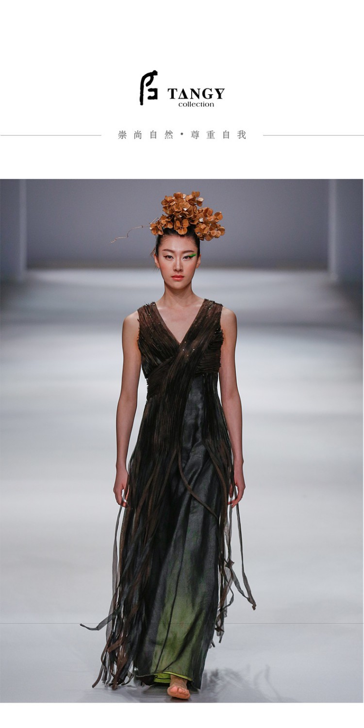 TANGY Collection/天意精品走秀款禾雀花系列流苏片珠柯纱礼服裙