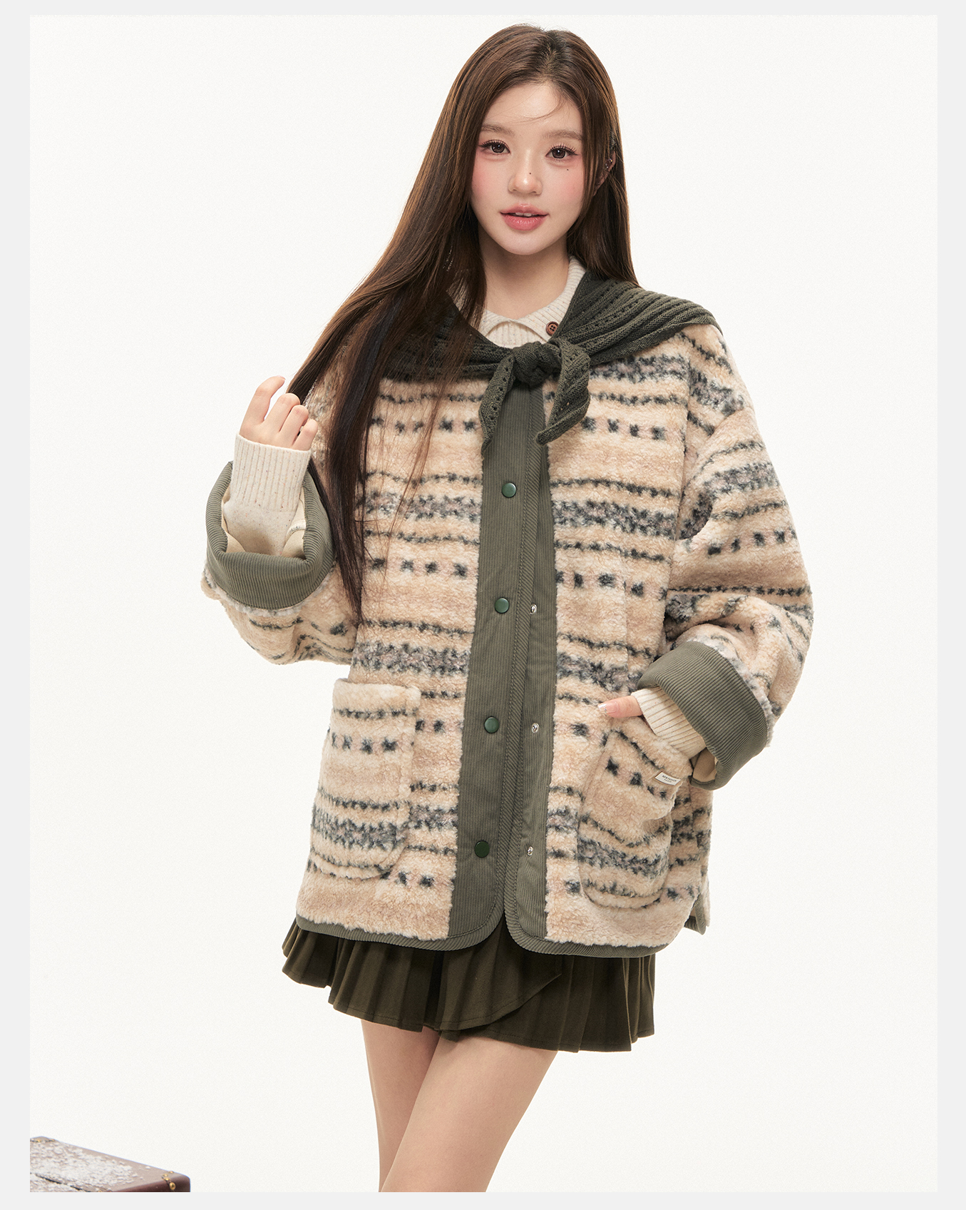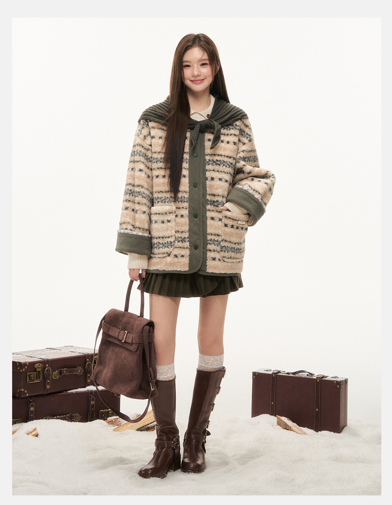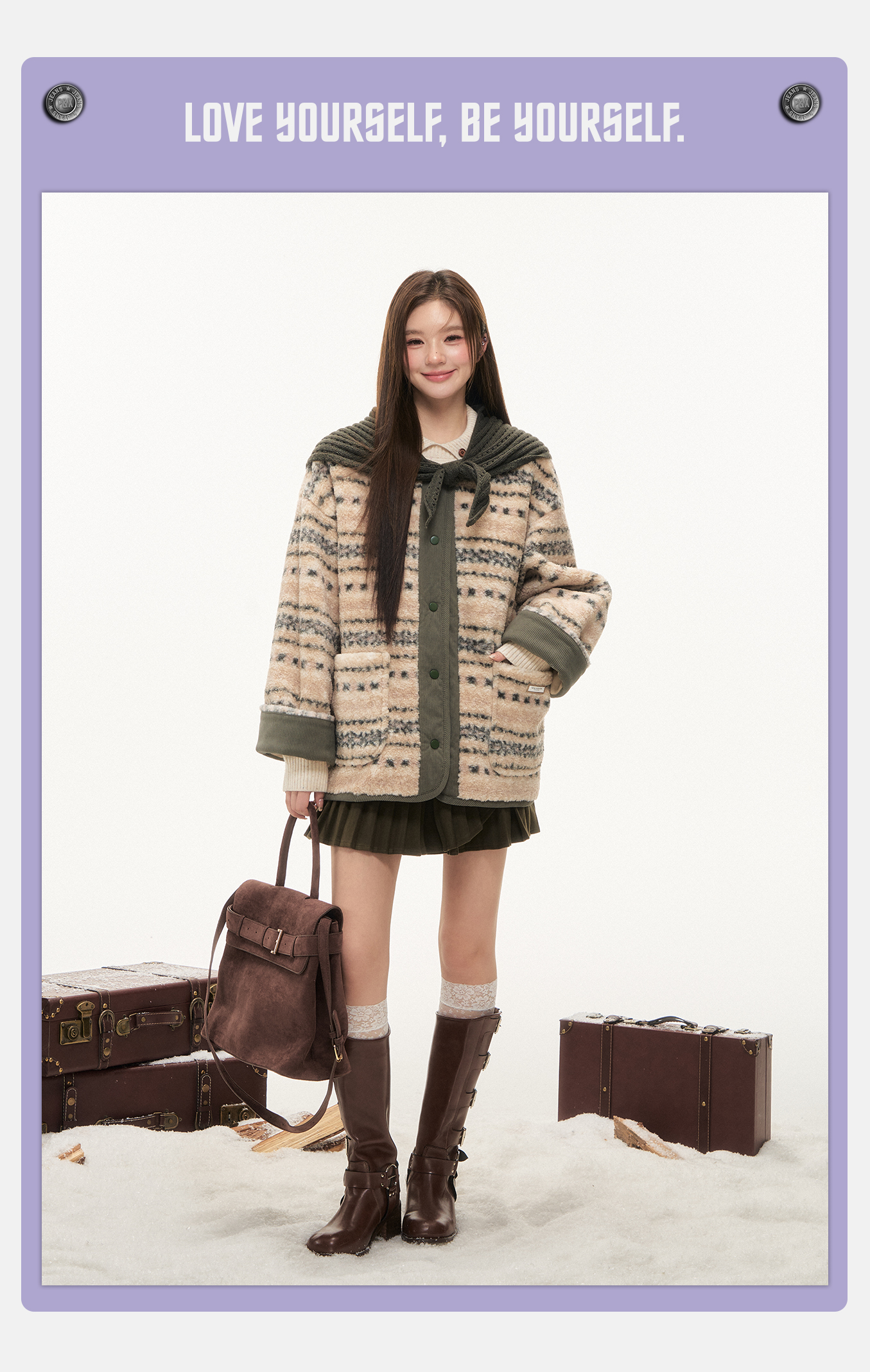 P&X设计师女装2025冬季拼接复古假两件短款外套825413237 花色