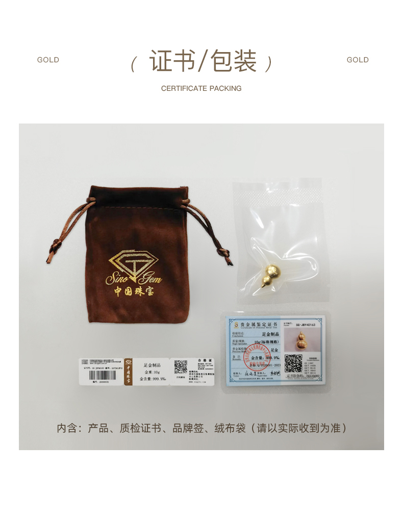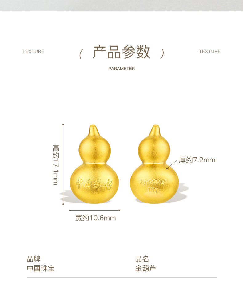 中国珠宝 黄金葫芦足金福禄金葫芦10克宝葫芦送礼物投资收藏【Y】