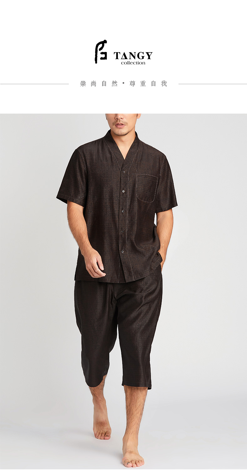 TANGY Collection/天意精品2021年春夏新品男士线迹真丝莨绸衬衫