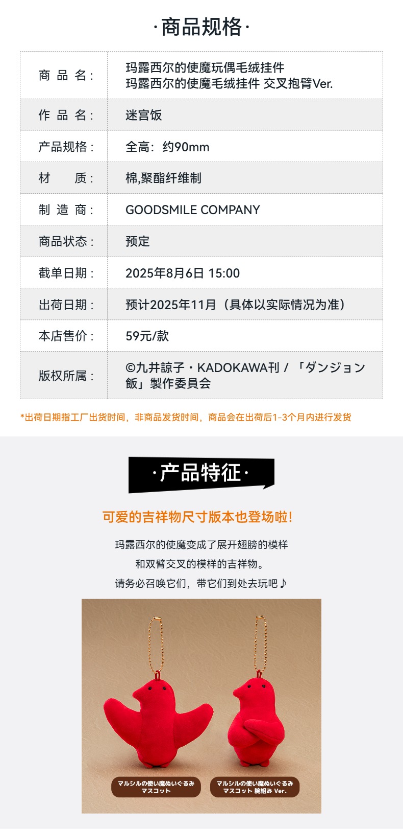 【GSC预售定金】玛露西尔的使魔玩偶/交叉抱臂Ver. 毛绒挂件 迷宫饭