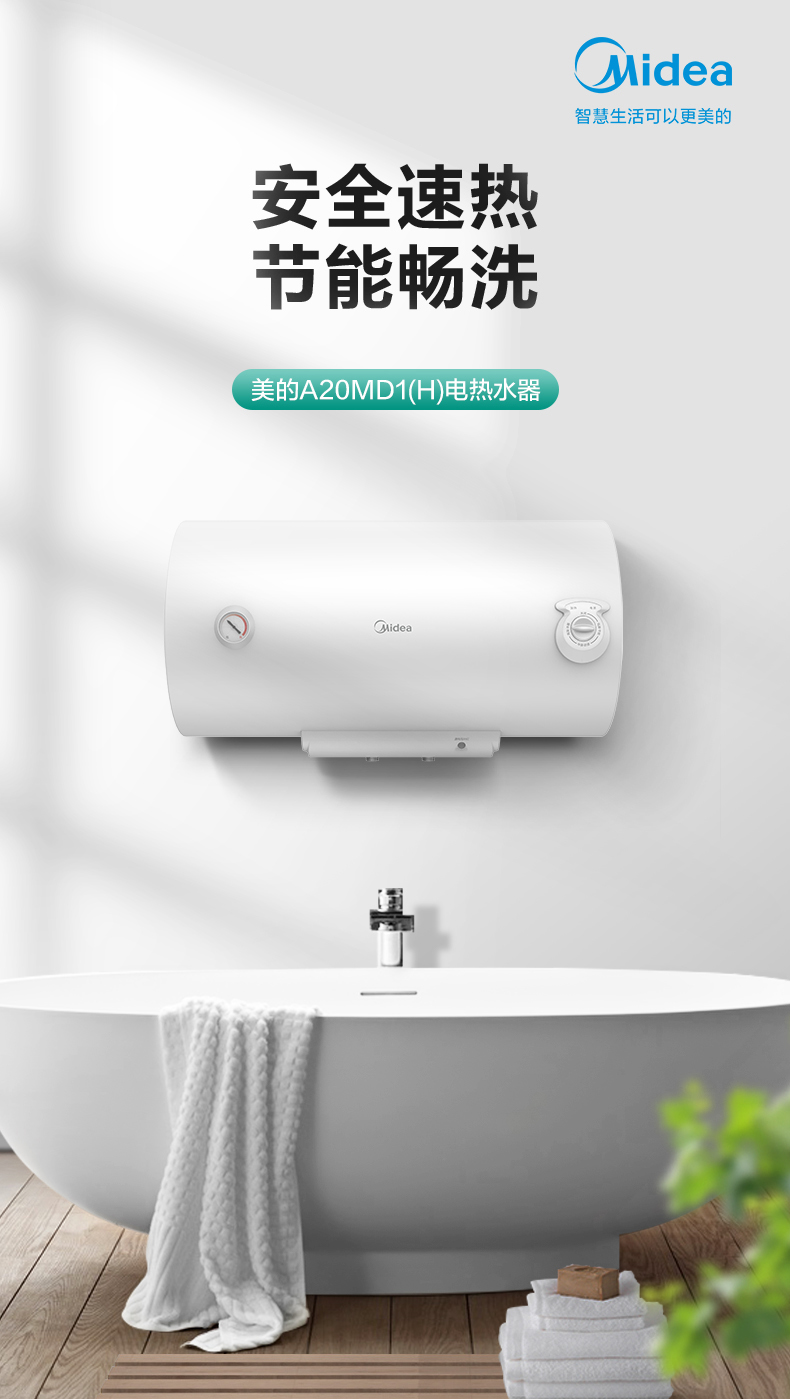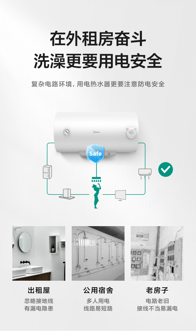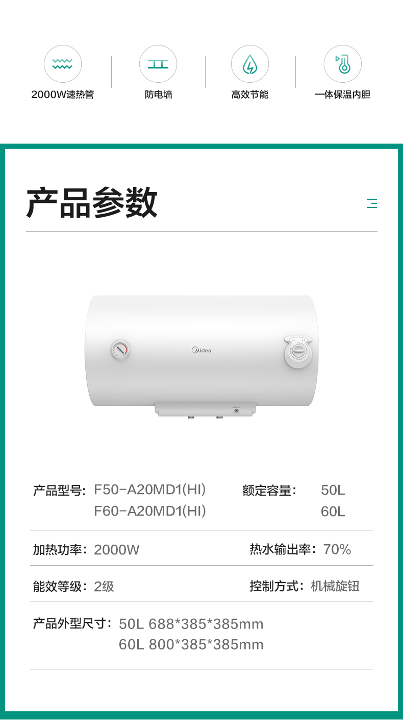 美的(Midea)50升2000W速热 线下同款升级防电墙 蓝钻内胆耐用 8年质保电热水器F50-A20MD1(HI)*