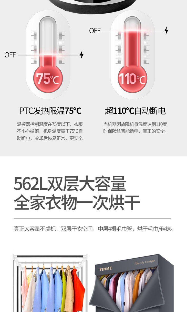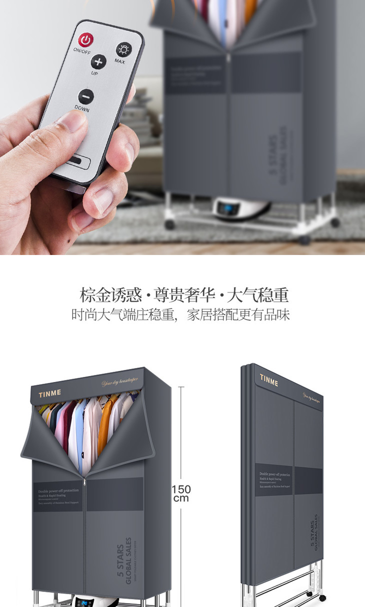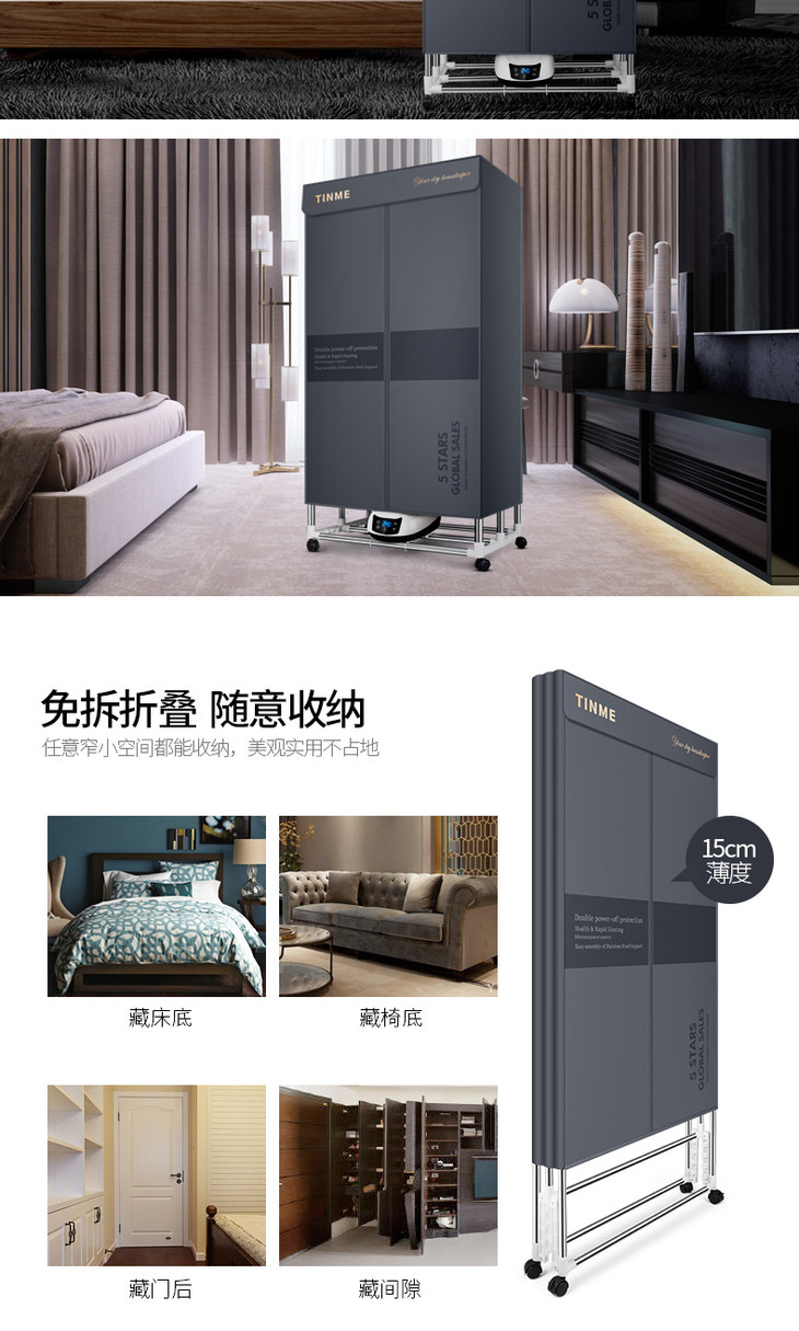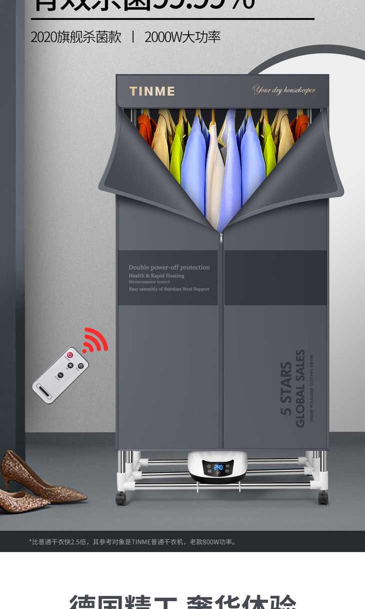 德国TINME折叠烘干机家用速干衣小型暖风大容量紫外线消菌干衣机