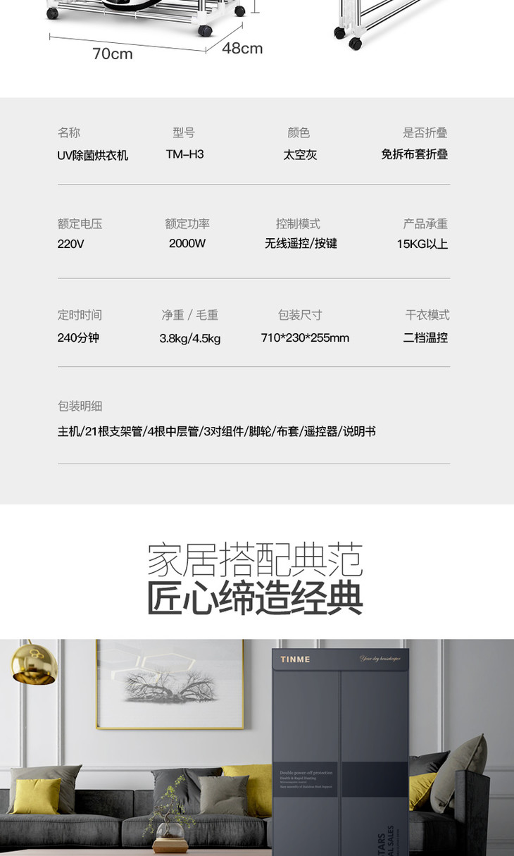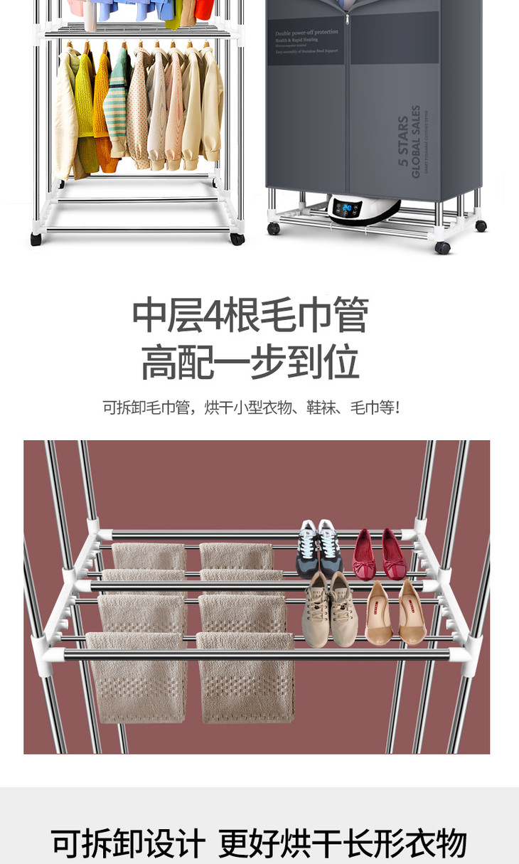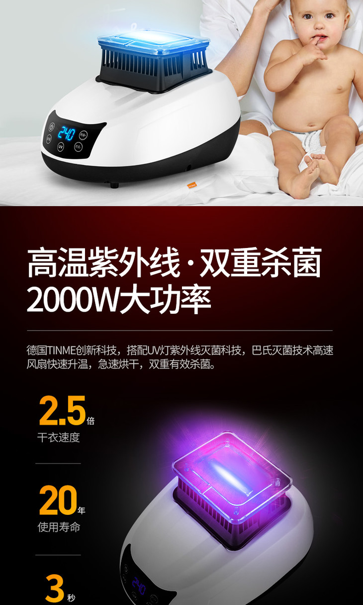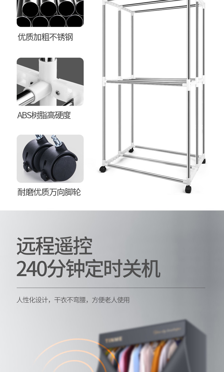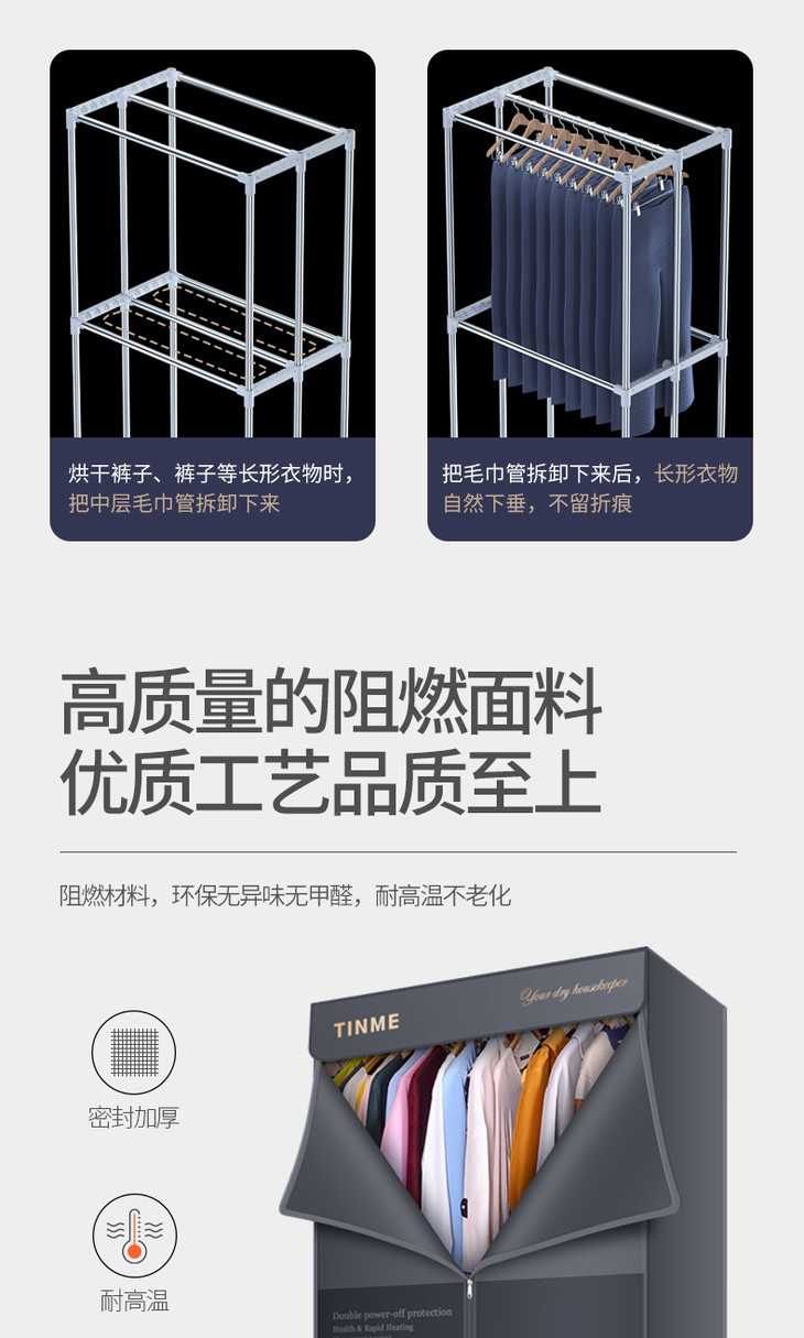 德国TINME折叠烘干机家用速干衣小型暖风大容量紫外线消菌干衣机