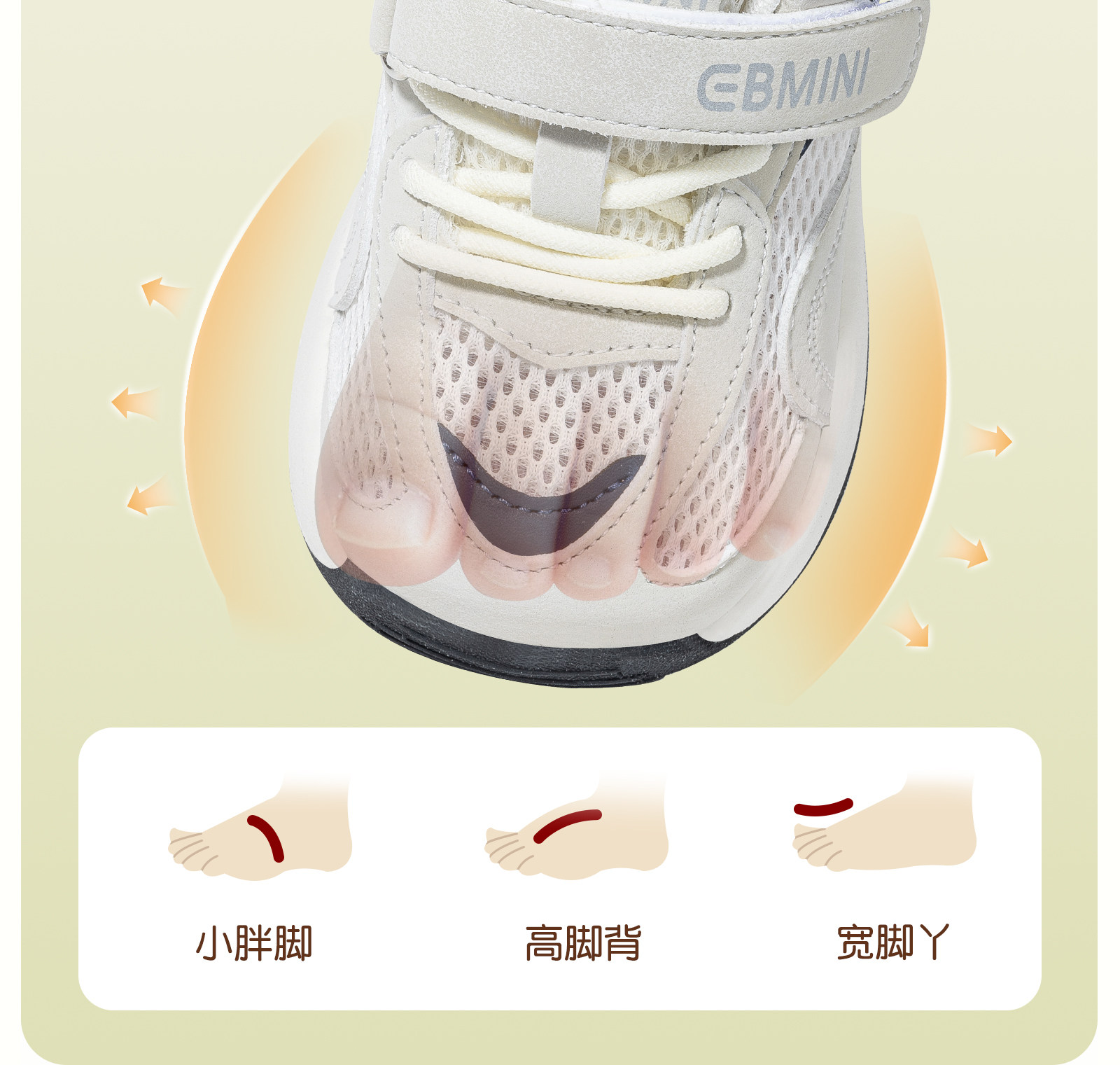 EBMINI英贝米尼儿童运动鞋2026春季新款宽楦男小孩童鞋女童阿甘鞋宝宝鞋22-31