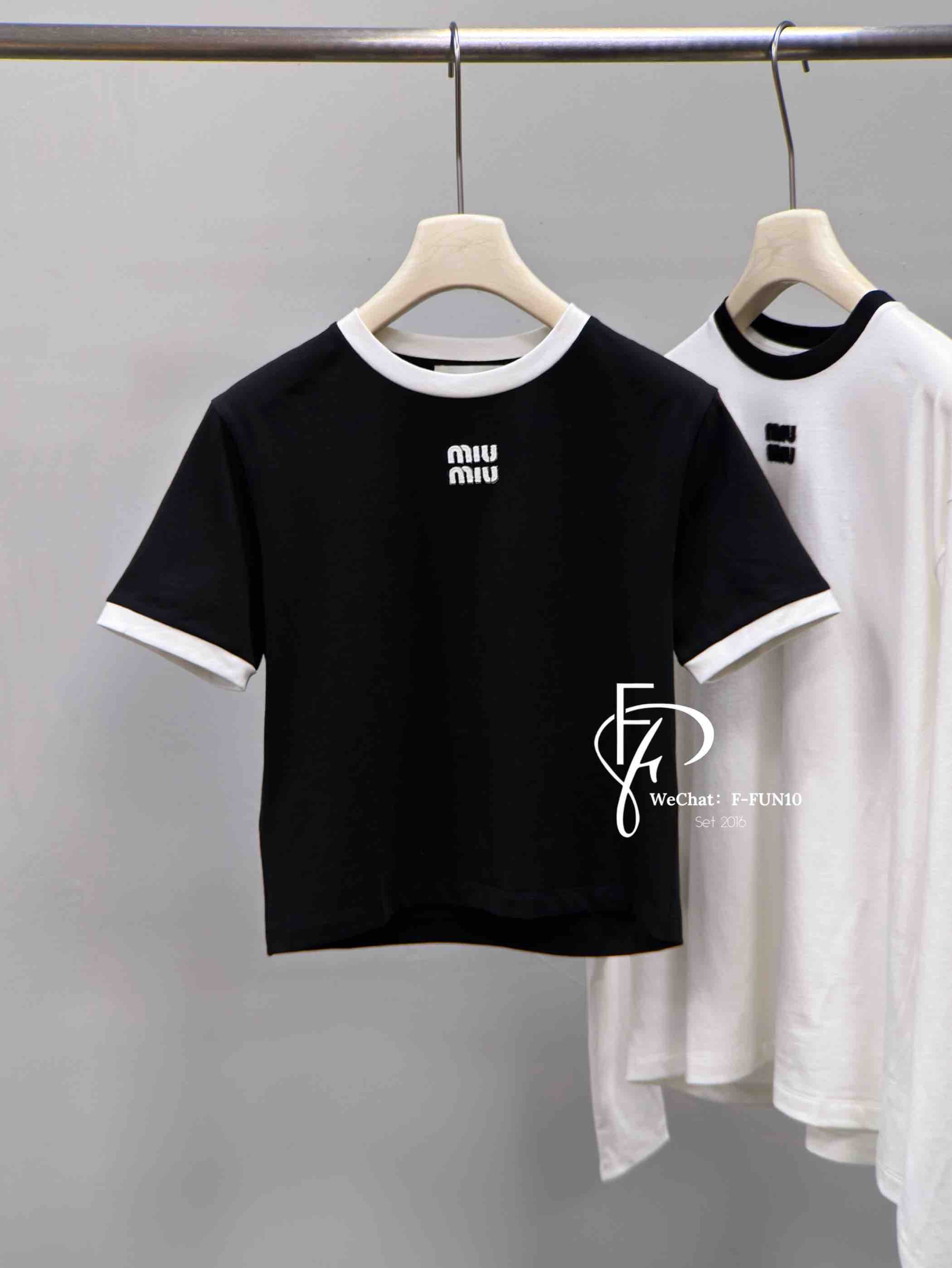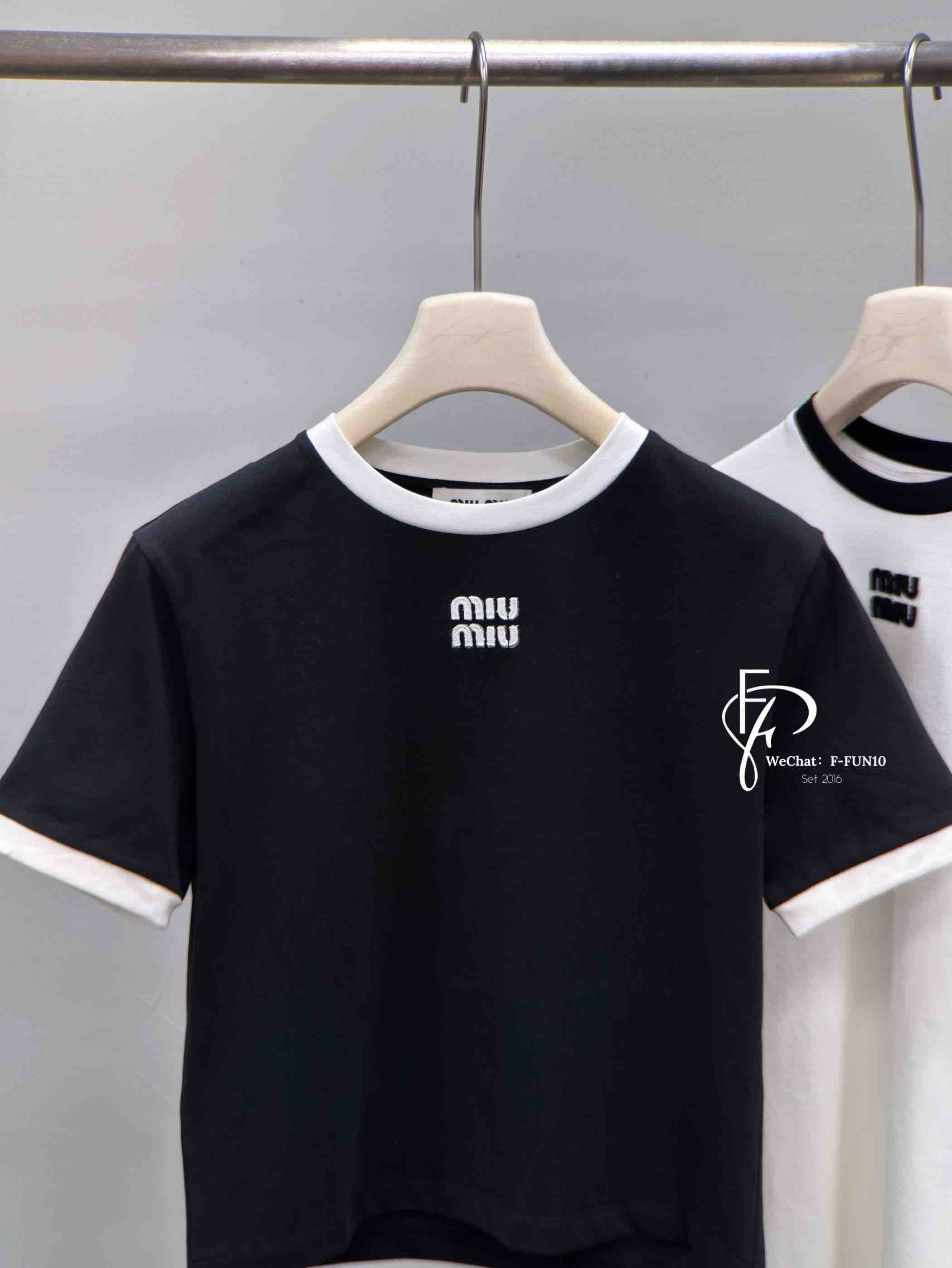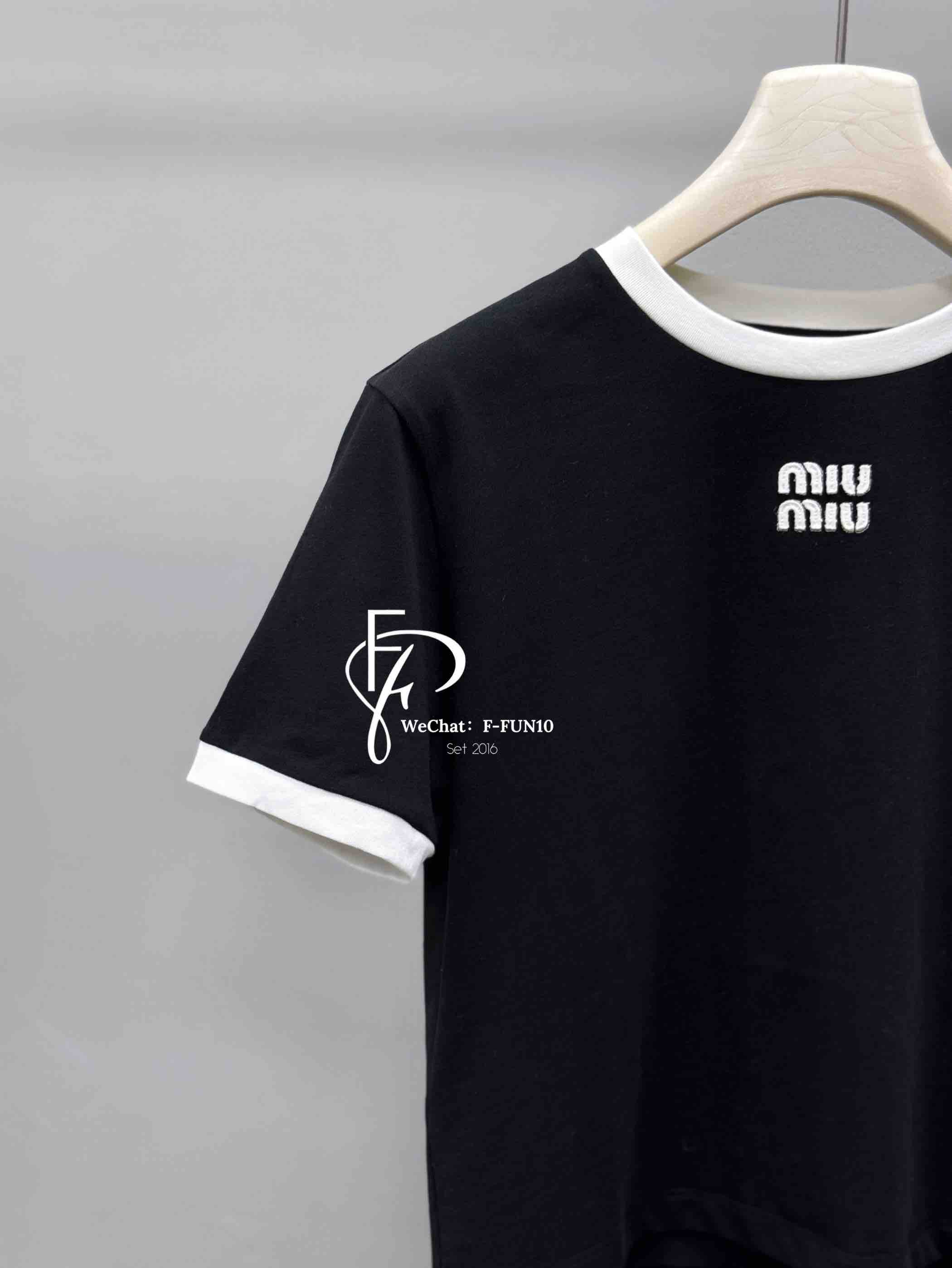 MIU-T 贴布撞色黑T恤