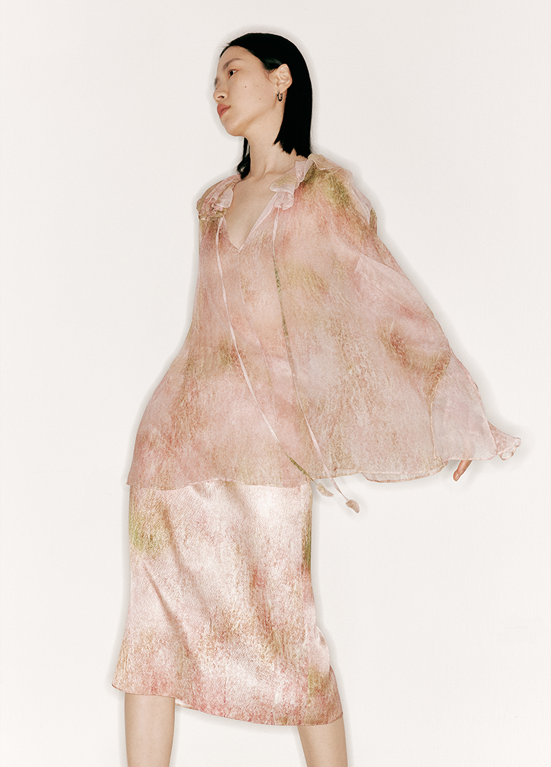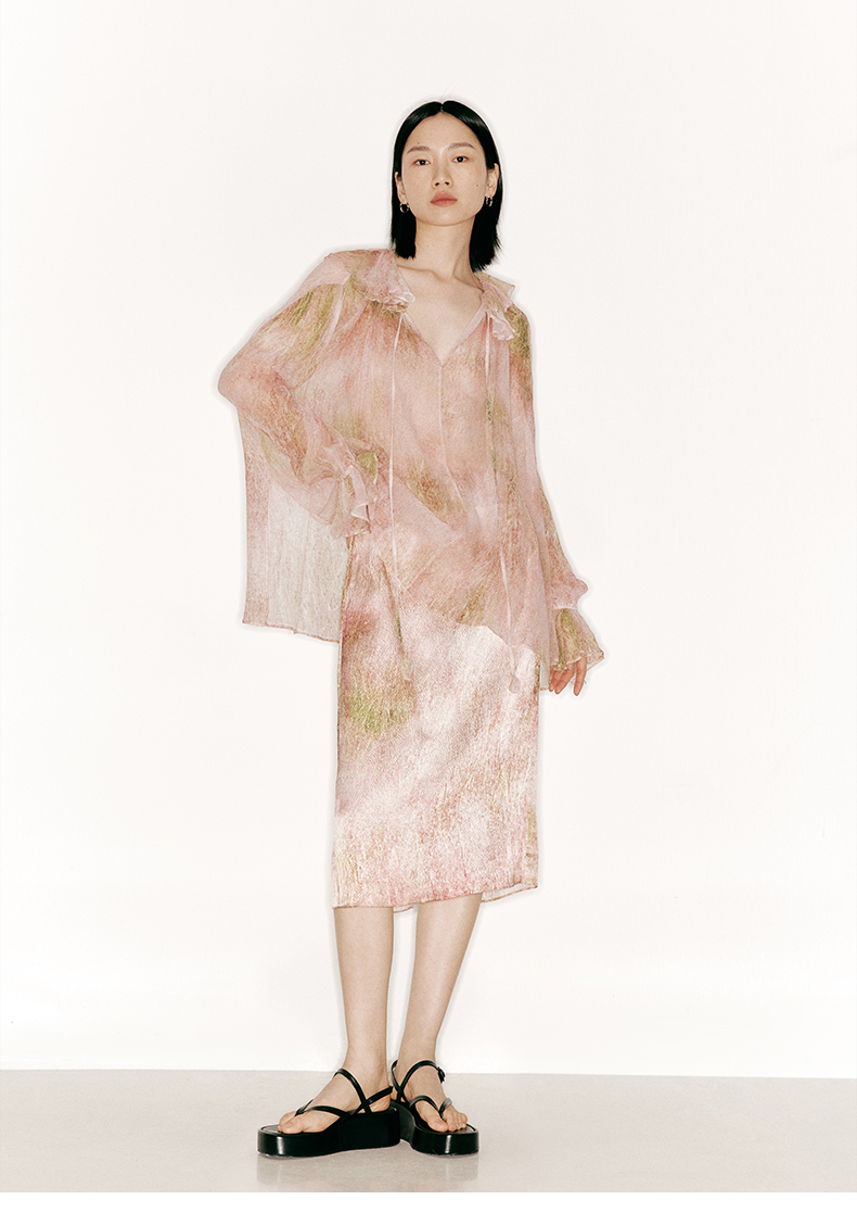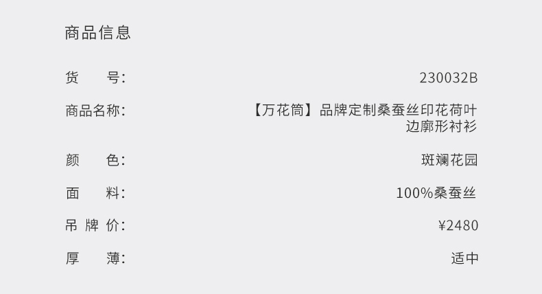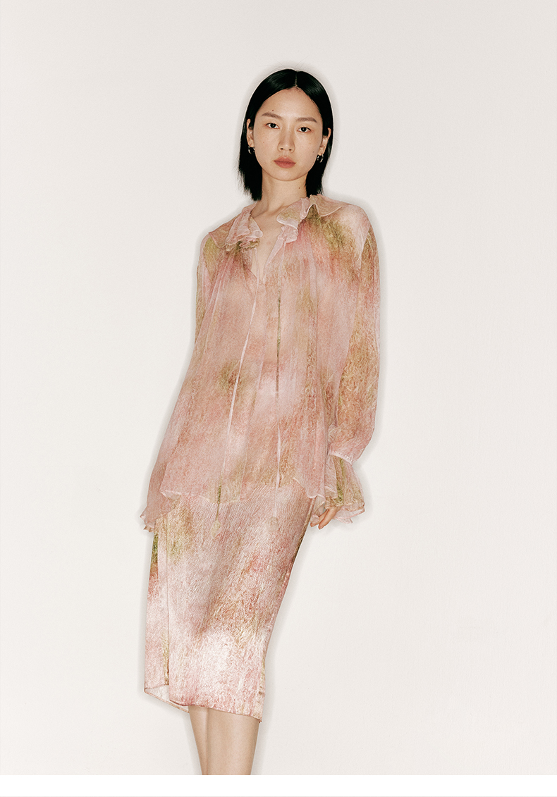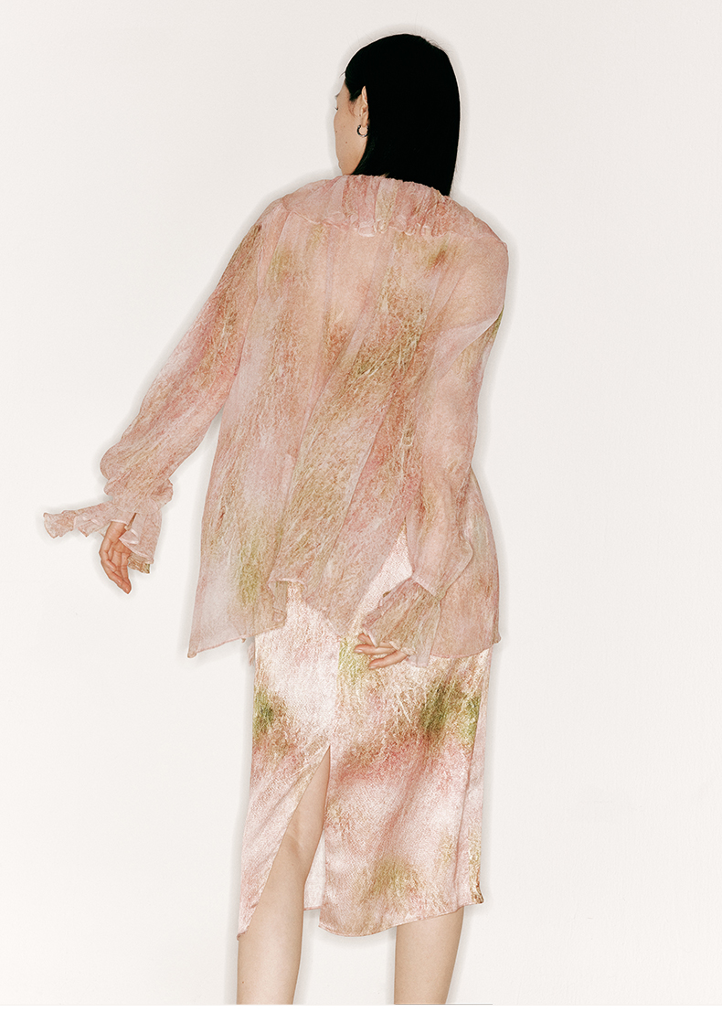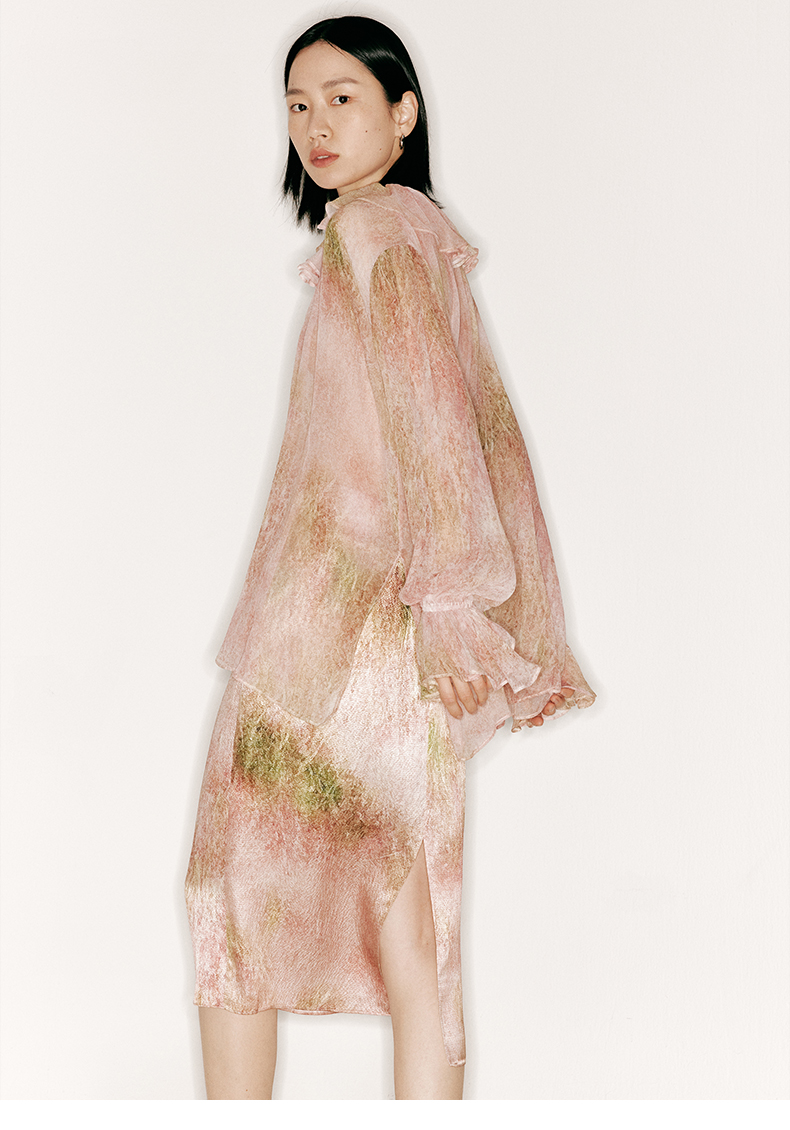 【万花筒】品牌定制桑蚕丝印花荷叶边廓形衬衫/230032B
