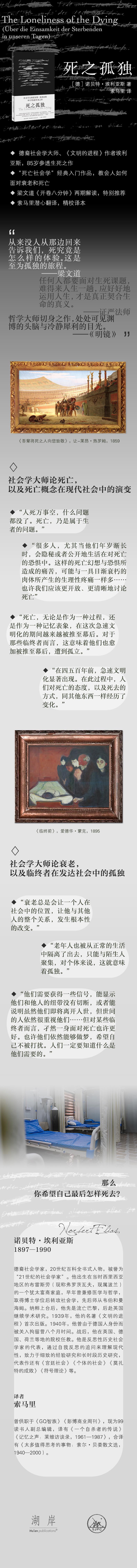 ★社会学大师、《文明的进程》作者埃利亚斯,85岁参透生死之作 ★“死亡社会学”经典入门作品,教会人如何面对衰老和死亡 ★梁文道《开卷八分钟》两期解读,特别推荐 ★索马里潜心翻译,精校译本