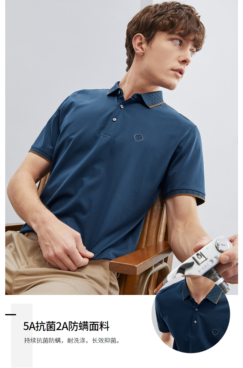 【含桑蚕丝】柒牌男士短袖Polo衫男夏季凉感抗菌休闲商务翻领T恤 124T70580