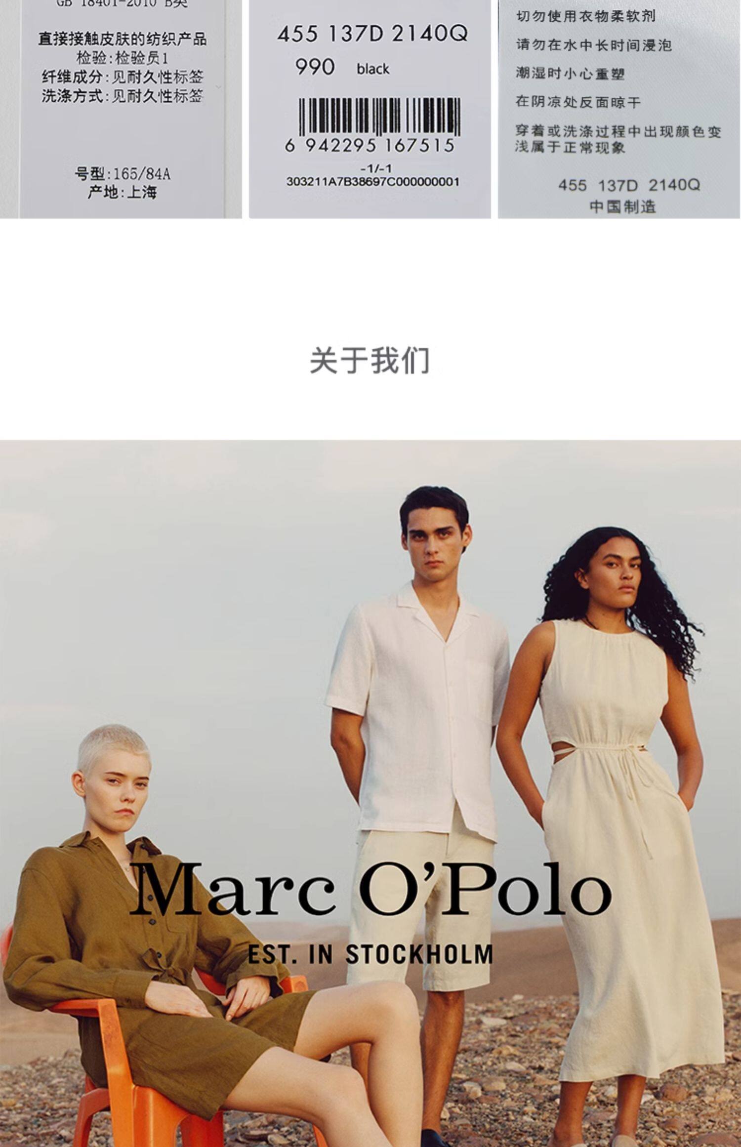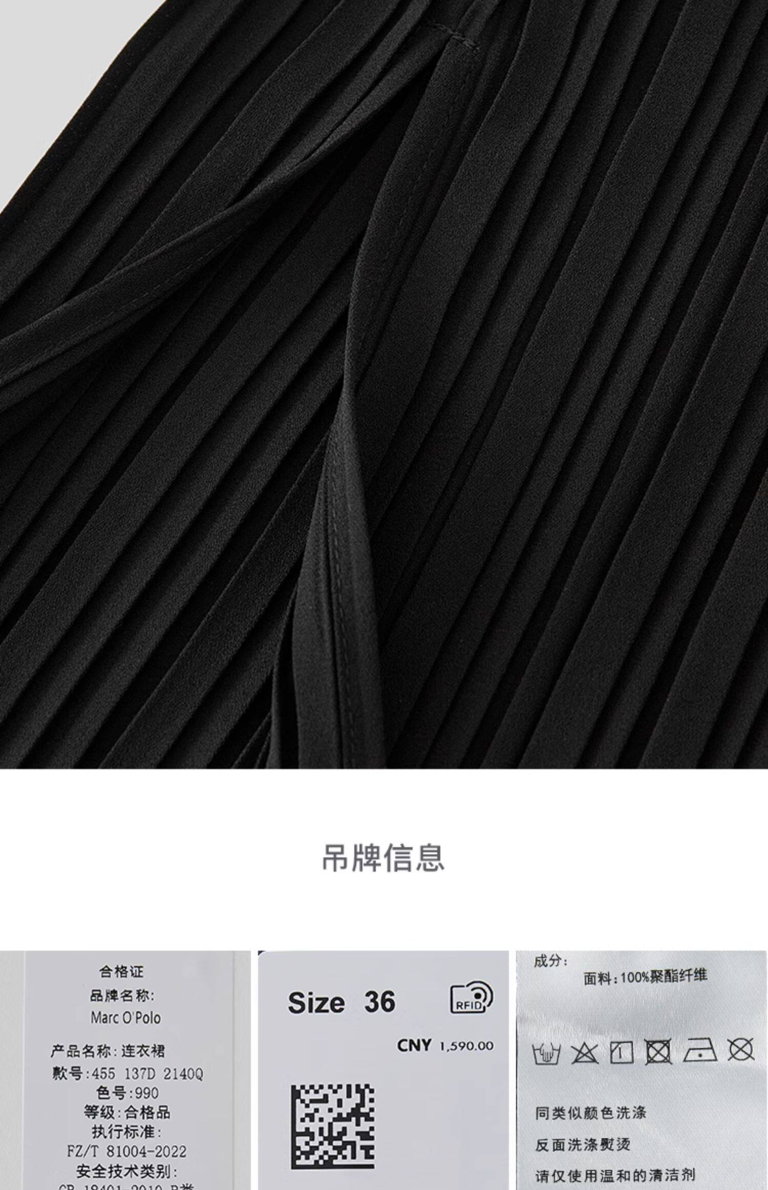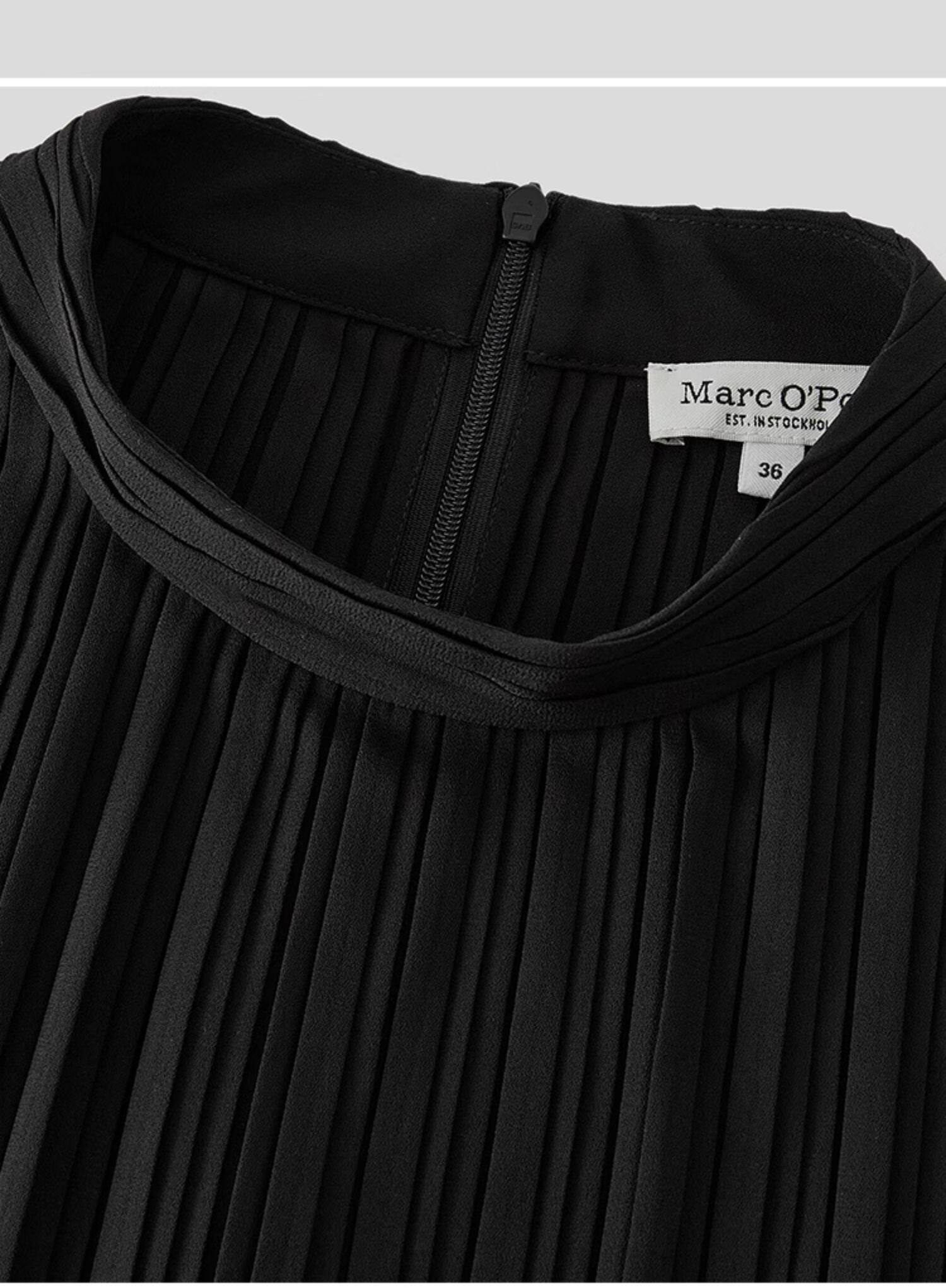 Marc O'Polo/MOP 夏季新款好看黑色圆领褶皱长款收腰气质连衣裙女