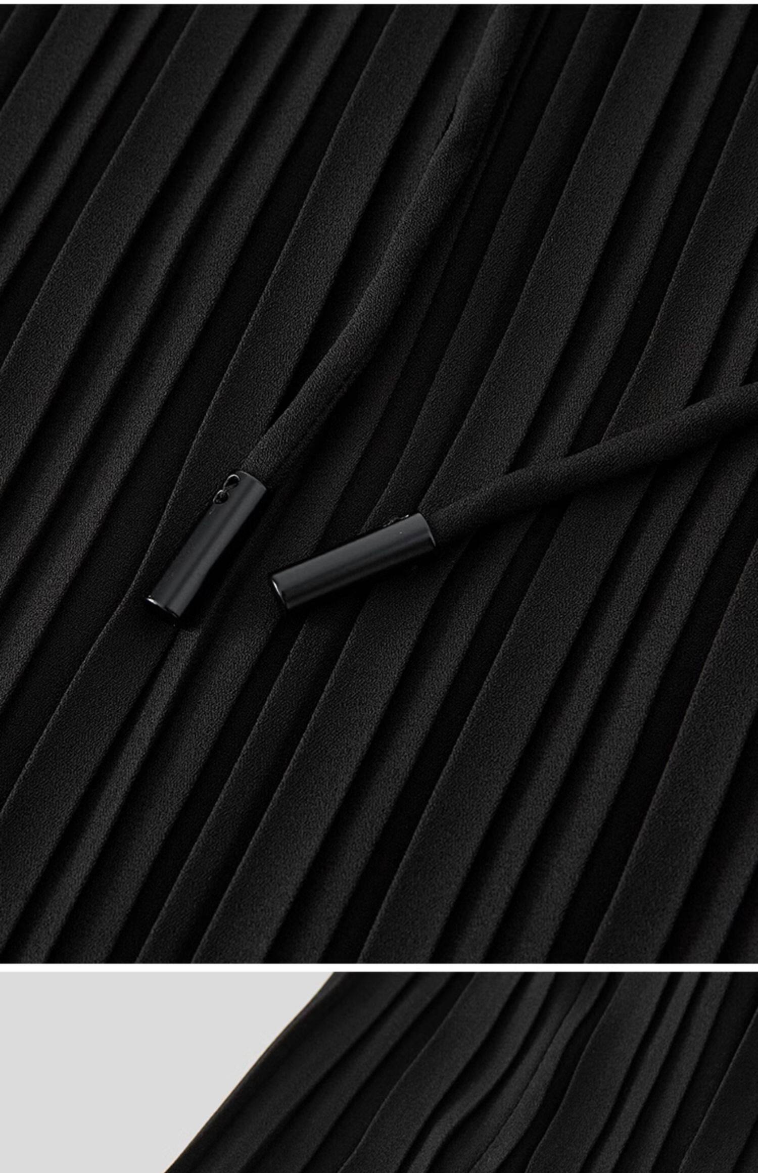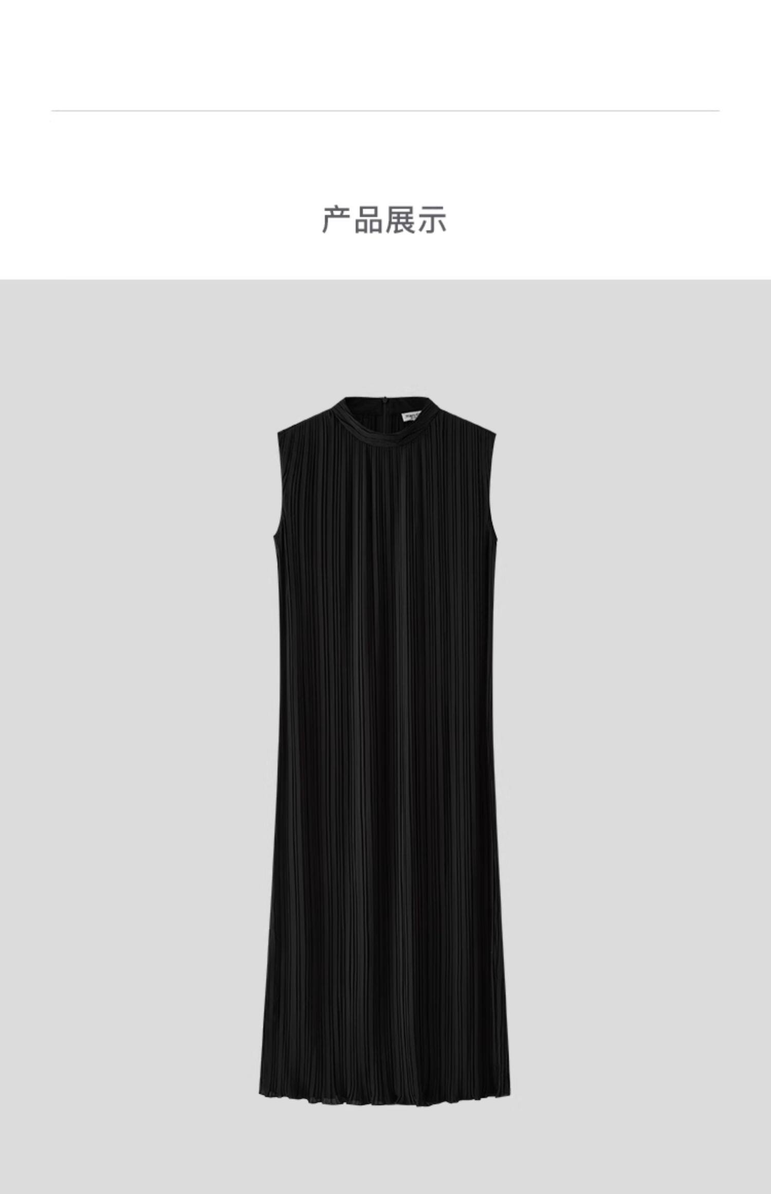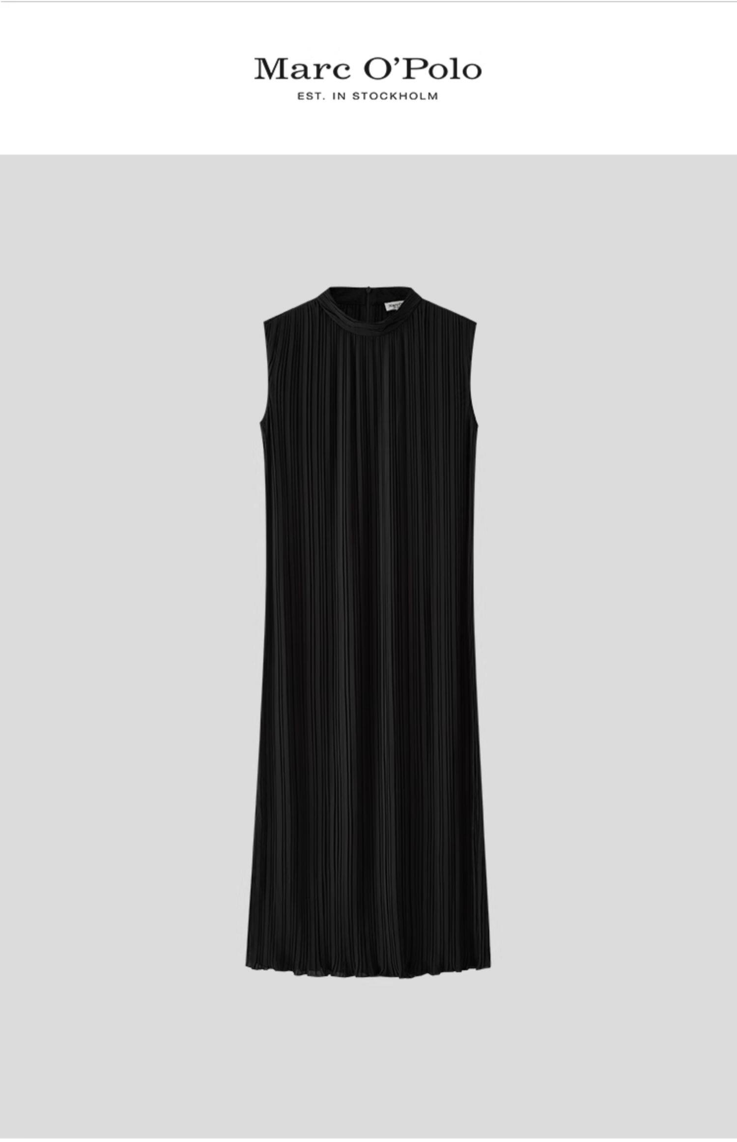 Marc O'Polo/MOP 夏季新款好看黑色圆领褶皱长款收腰气质连衣裙女