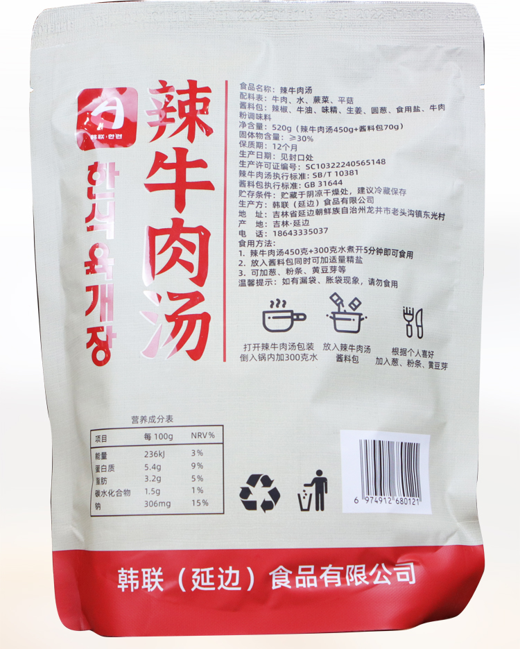 【满66包邮】韩联延边辣牛肉汤520g*1袋