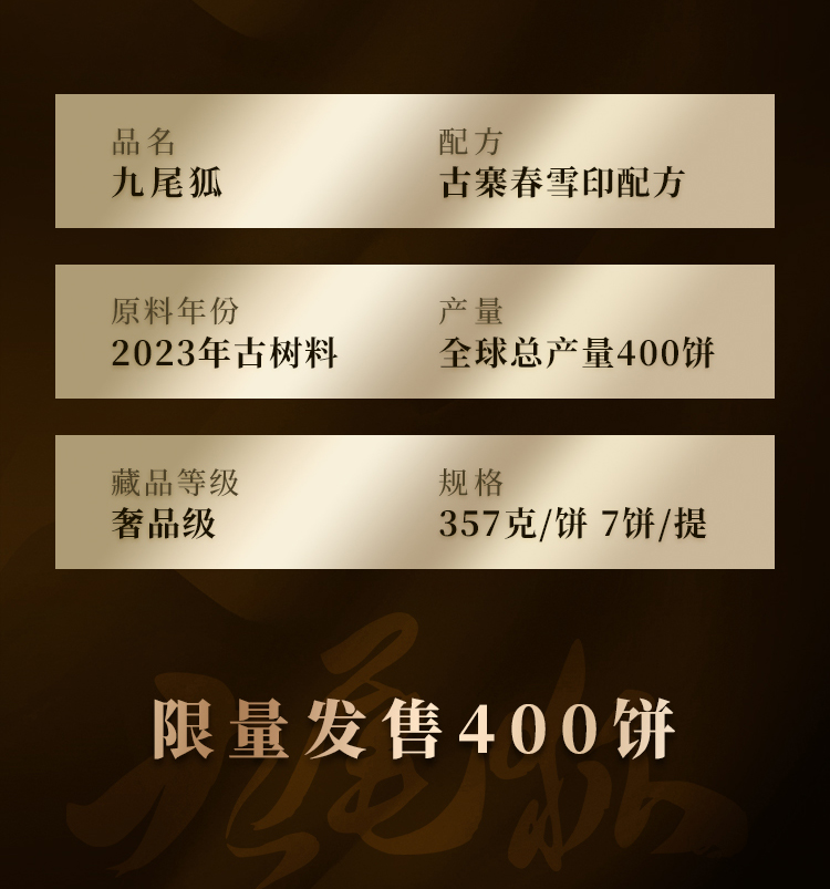 活动即将结束!【积分兑换】【九尾狐】2023年春茶神兽事业部收官力作迄今为止研发费用蕞高之作雪印青饼我们顶峰相见357克/饼