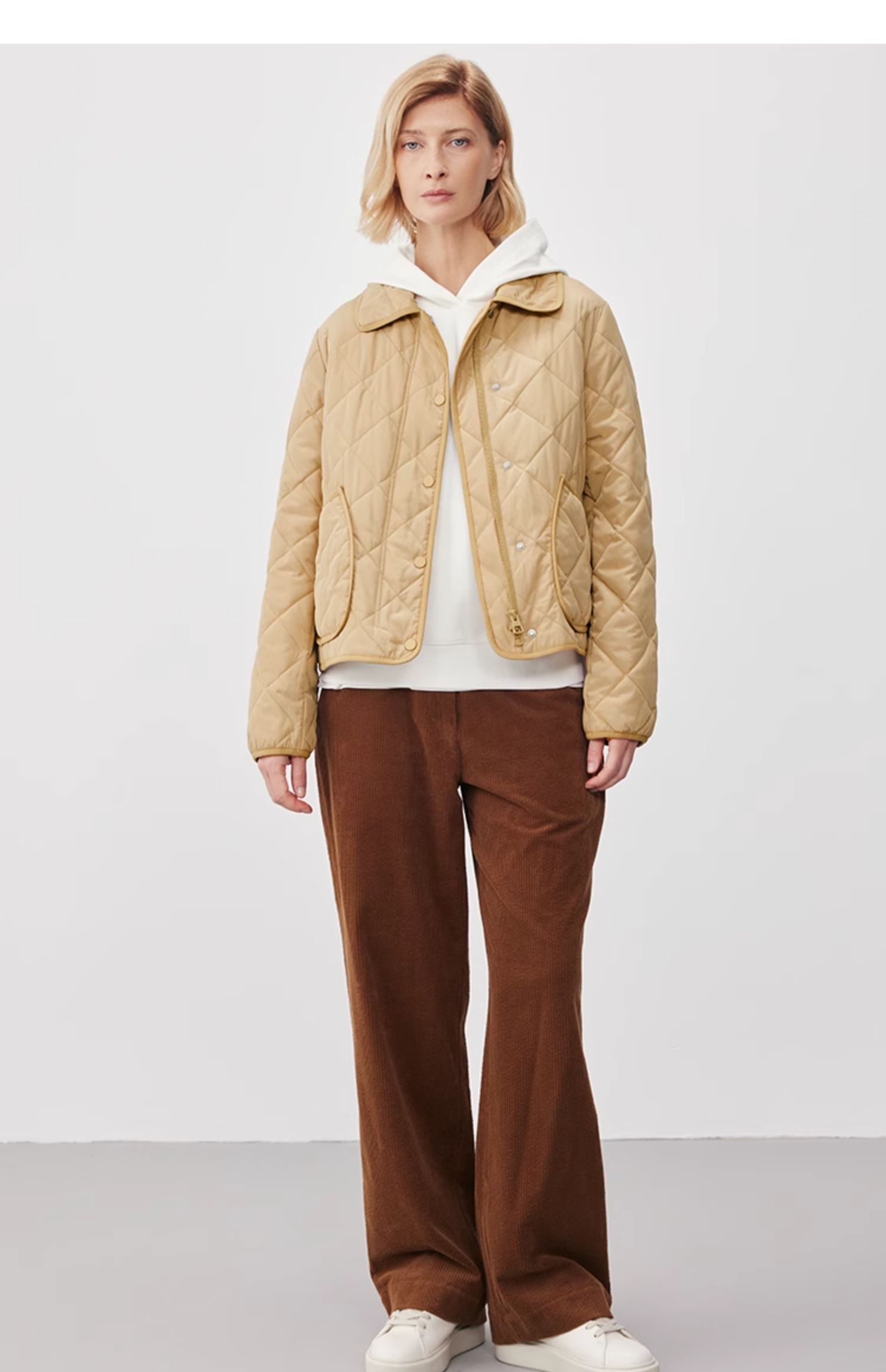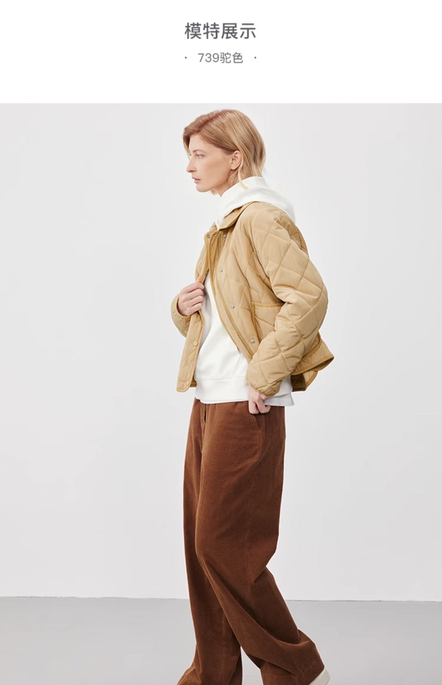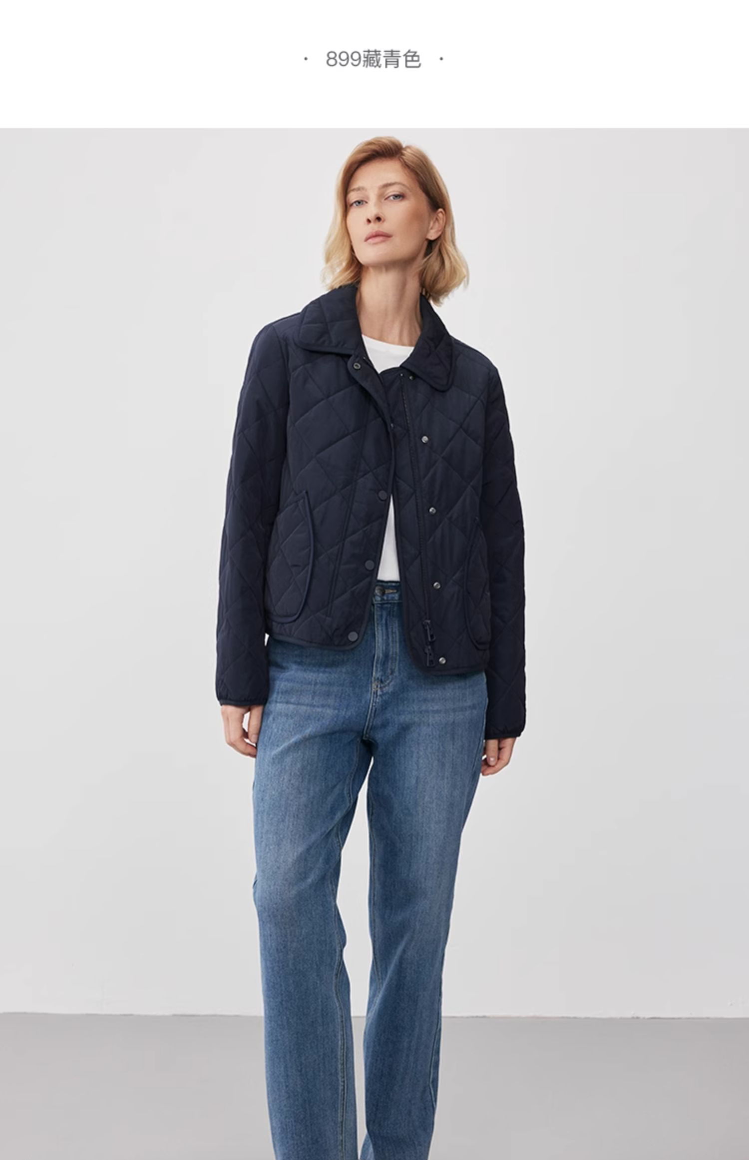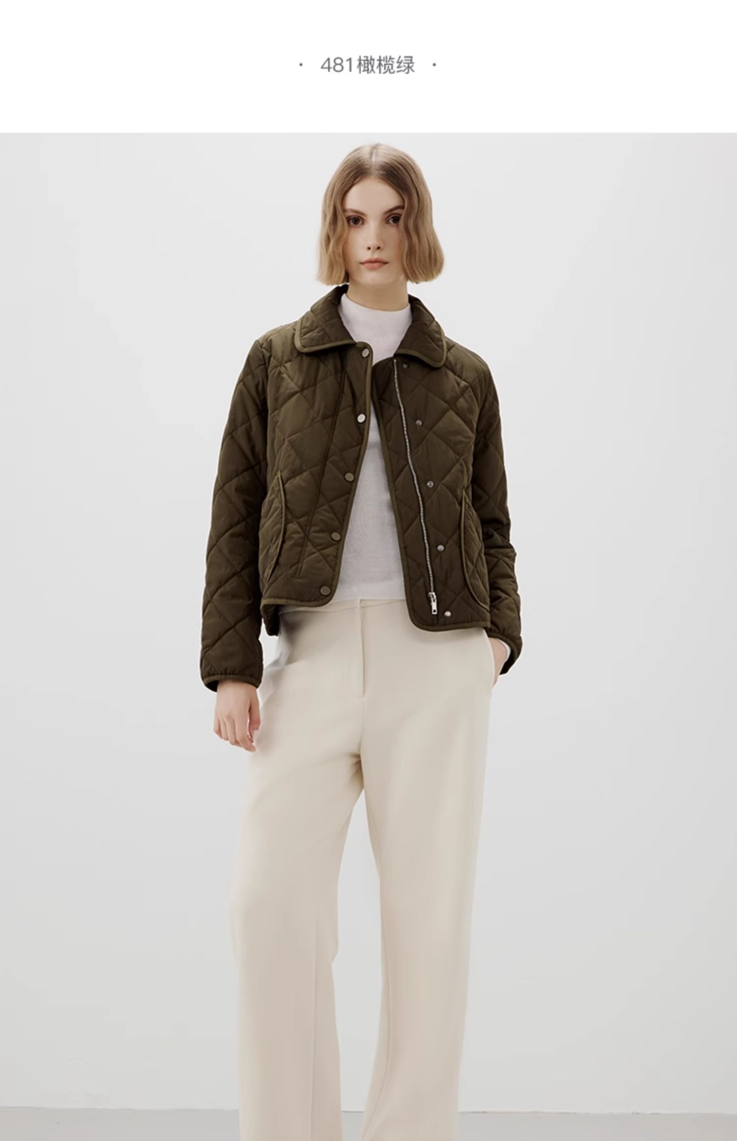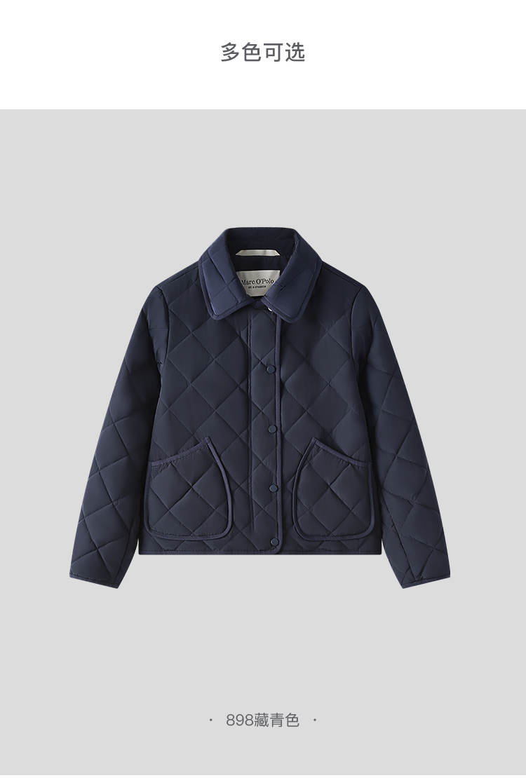 Marc O'Polo/MOP2024冬季新款翻领菱形轻薄时尚短款女士棉服外套