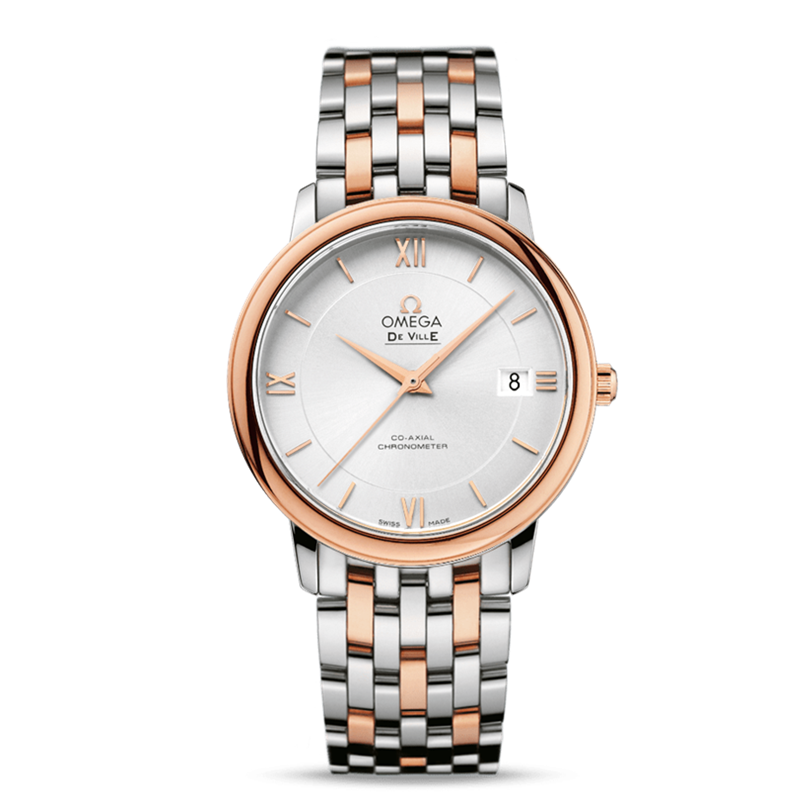 镜面材质 | 蓝宝石水晶玻璃 | 表盘 | 精钢‑18K红金表壳 银色同心圆表盘,饰有18K镀红金小时刻度,3时、6时、9时及12时位置设有罗马数字。 表盘的3时位置设有日历窗口 |