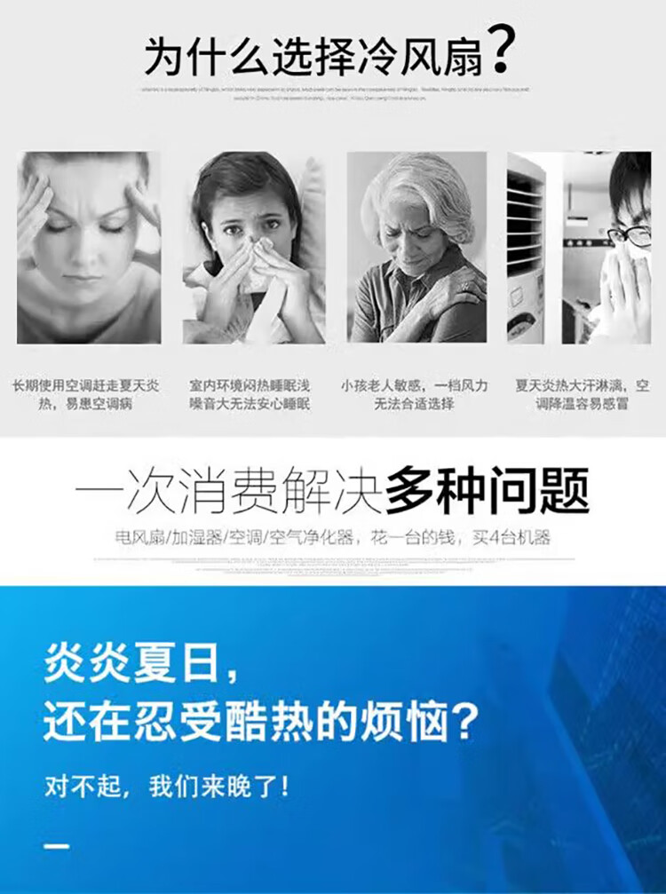 海边风水冷空调扇商用家用制冷风扇饭店养殖大型工业冷风机移动式冷风扇大排档专用大风扇 H210大风量【适用80-100平】77*48*151cm