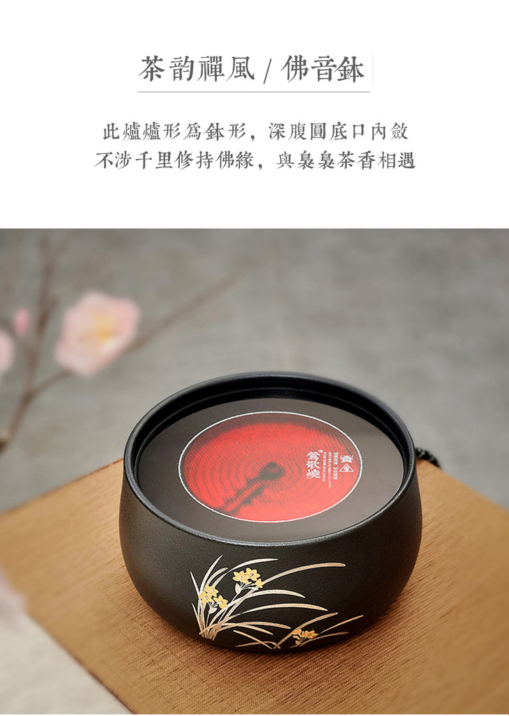 【莺歌烧旗舰店】黑底错金银兰花 电陶炉