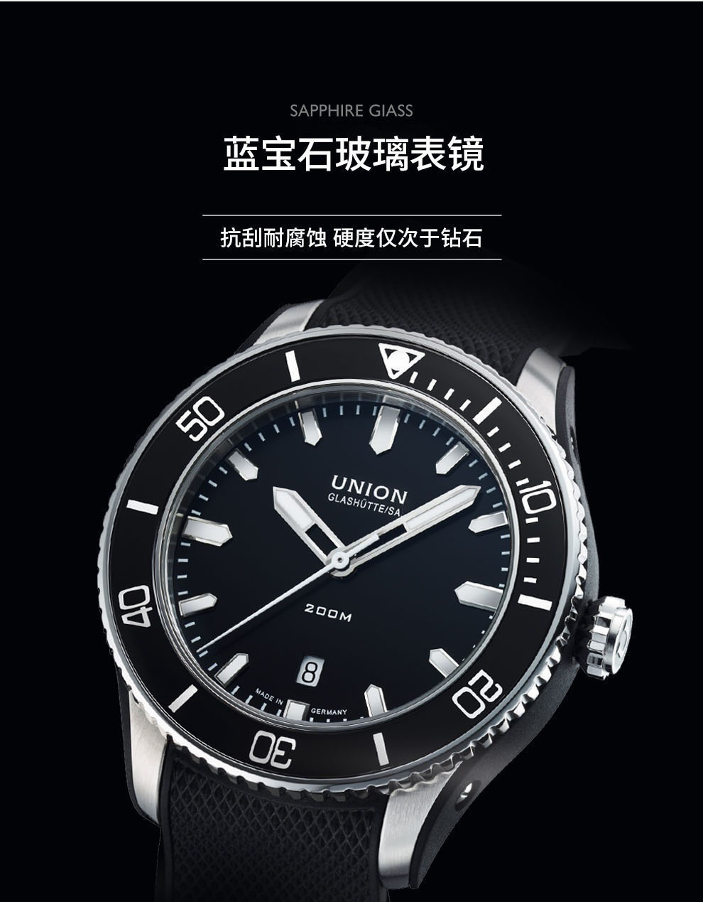 宇联(UNION GLASHÜTTE)德国手表 贝利士系列运动 一表两带男士机械腕表 D009.907.27.057.00