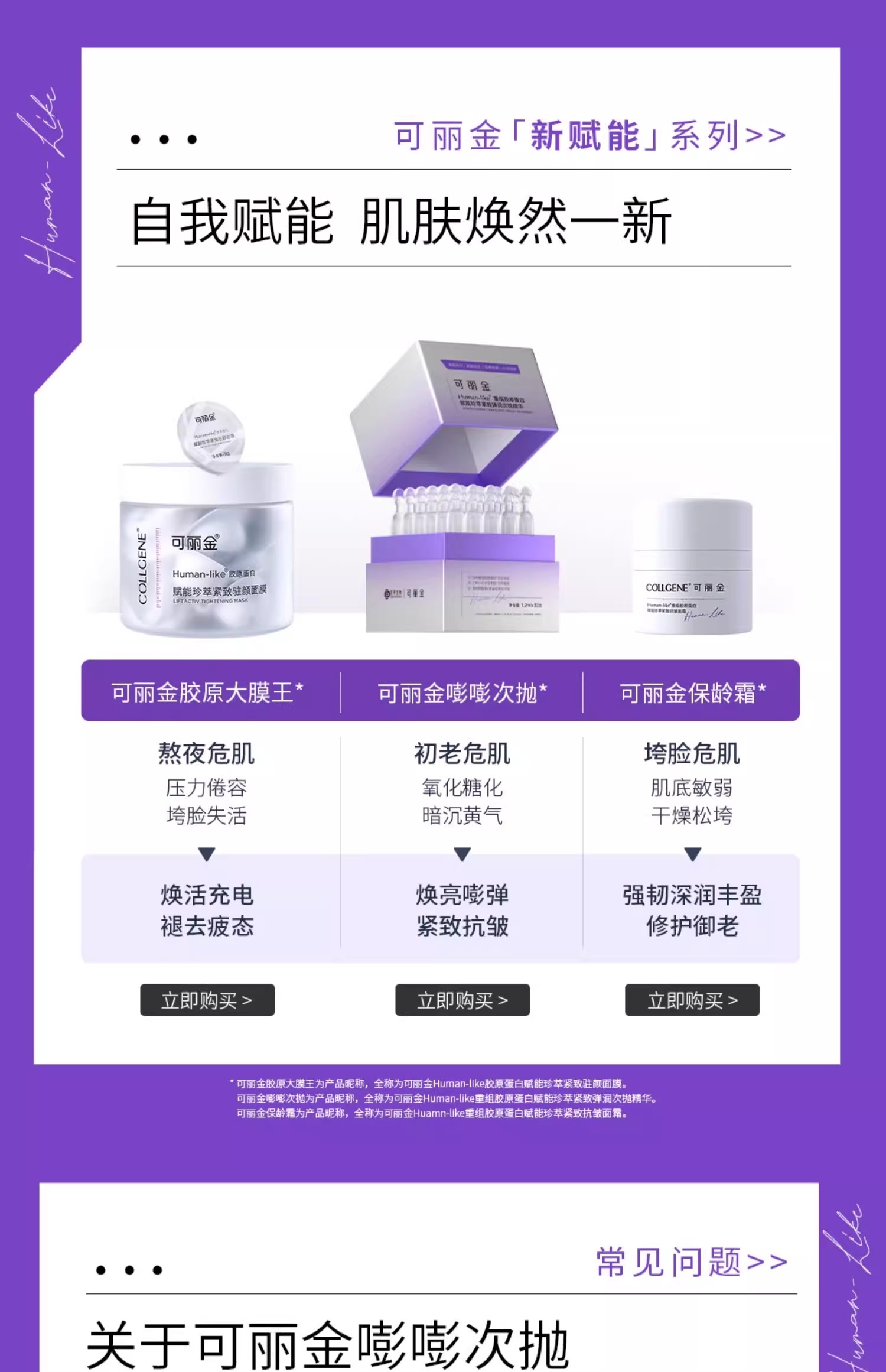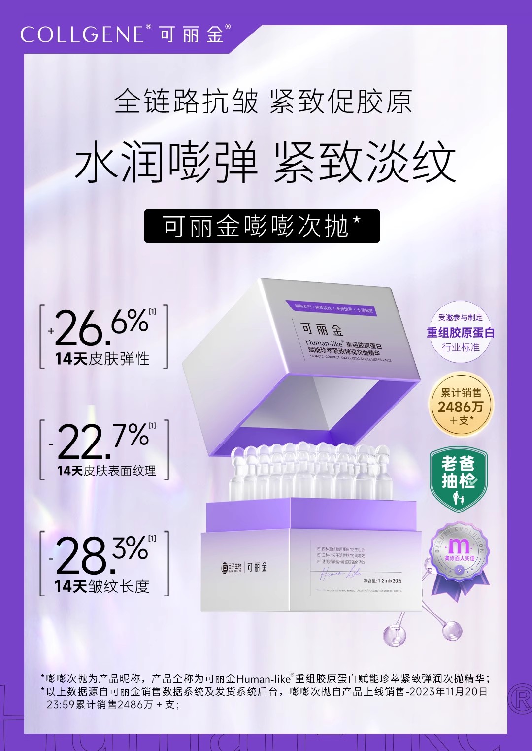 可丽金重组胶原蛋白嘭嘭次抛30支抗皱紧致保湿精华敏感肌肤适用