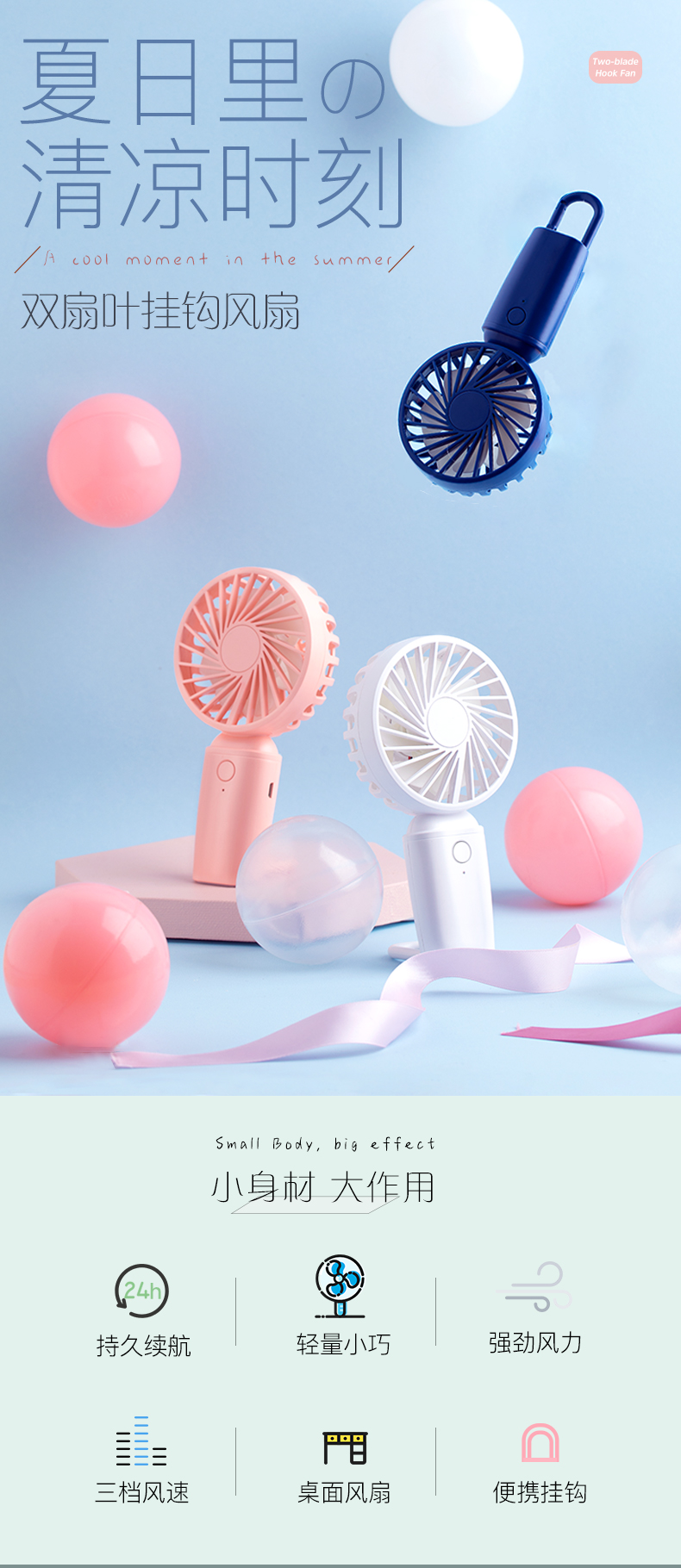 【朴氧生活】便携式双叶风扇