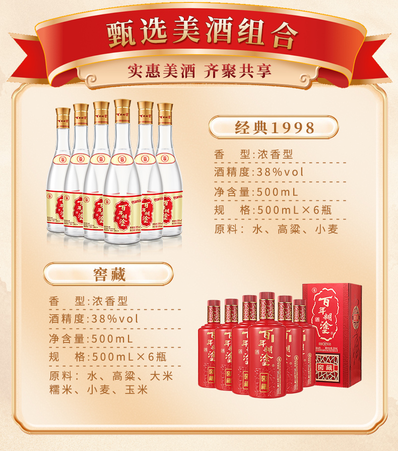 【特惠低度组合】百年糊涂浓香型白酒38度经典1998 500mL*6瓶+38度窖藏500mL*6瓶