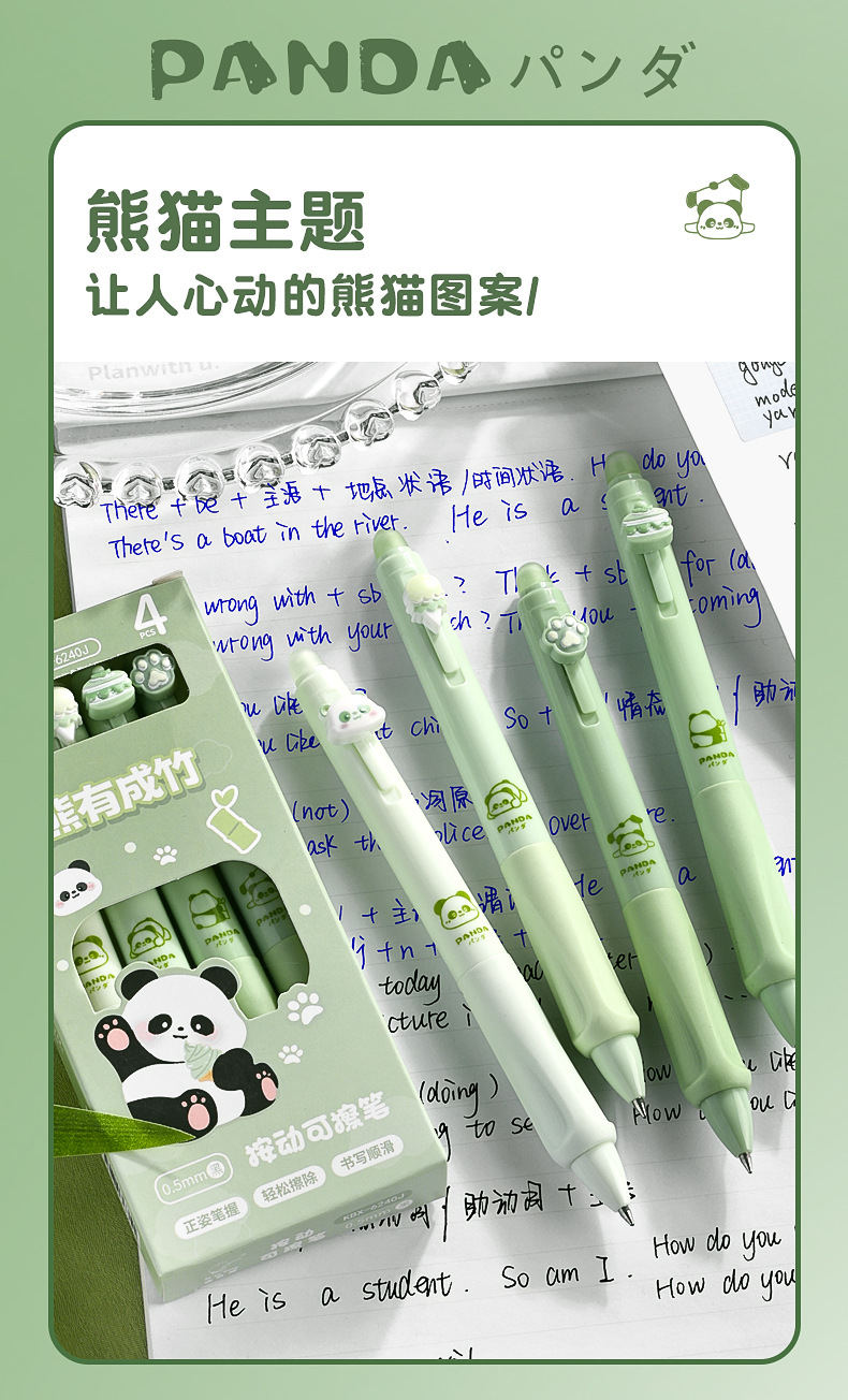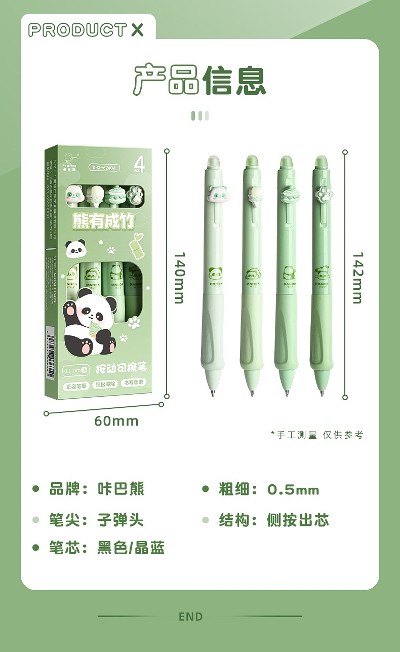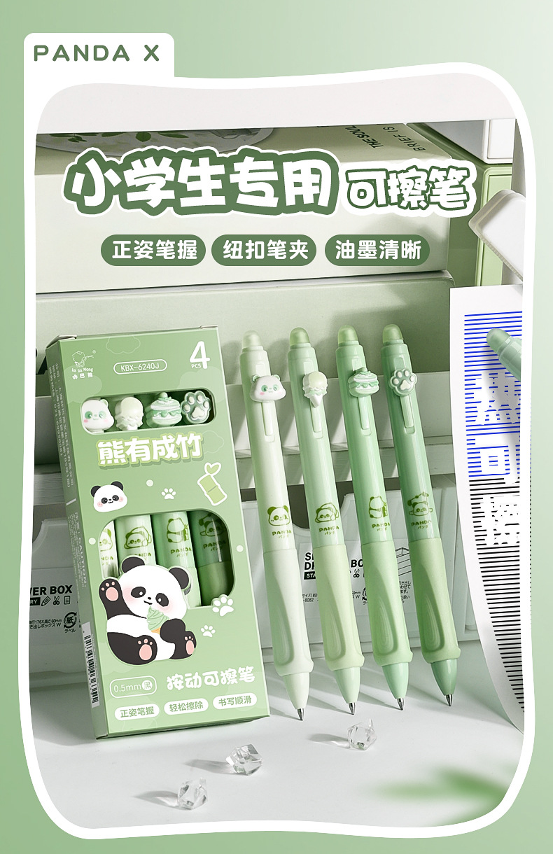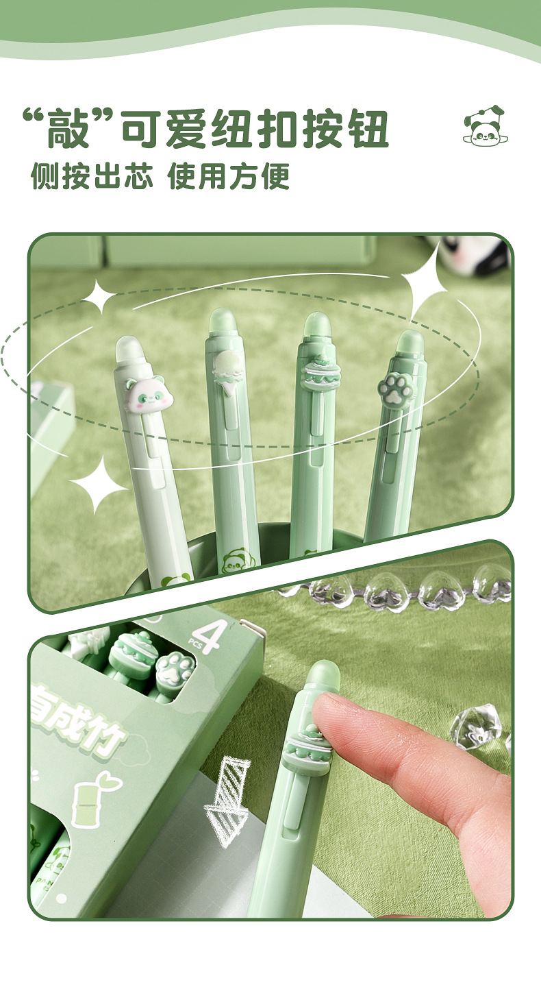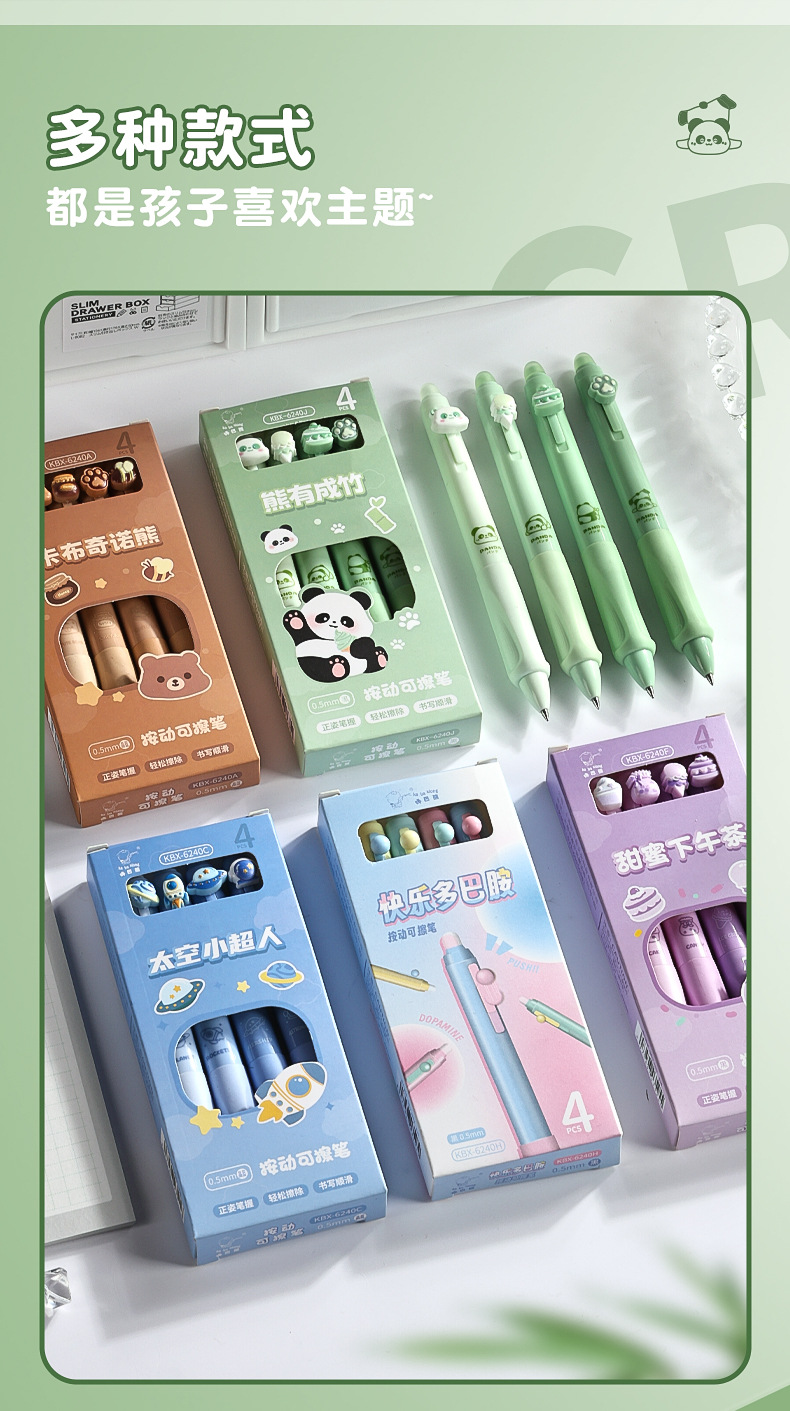 超值19.9四支!【敲可爱纽扣按钮❗️书写顺滑不断墨】小熊正姿可擦笔小学生专用高颜值按动中性笔卡通热敏擦黑色晶蓝色。jb