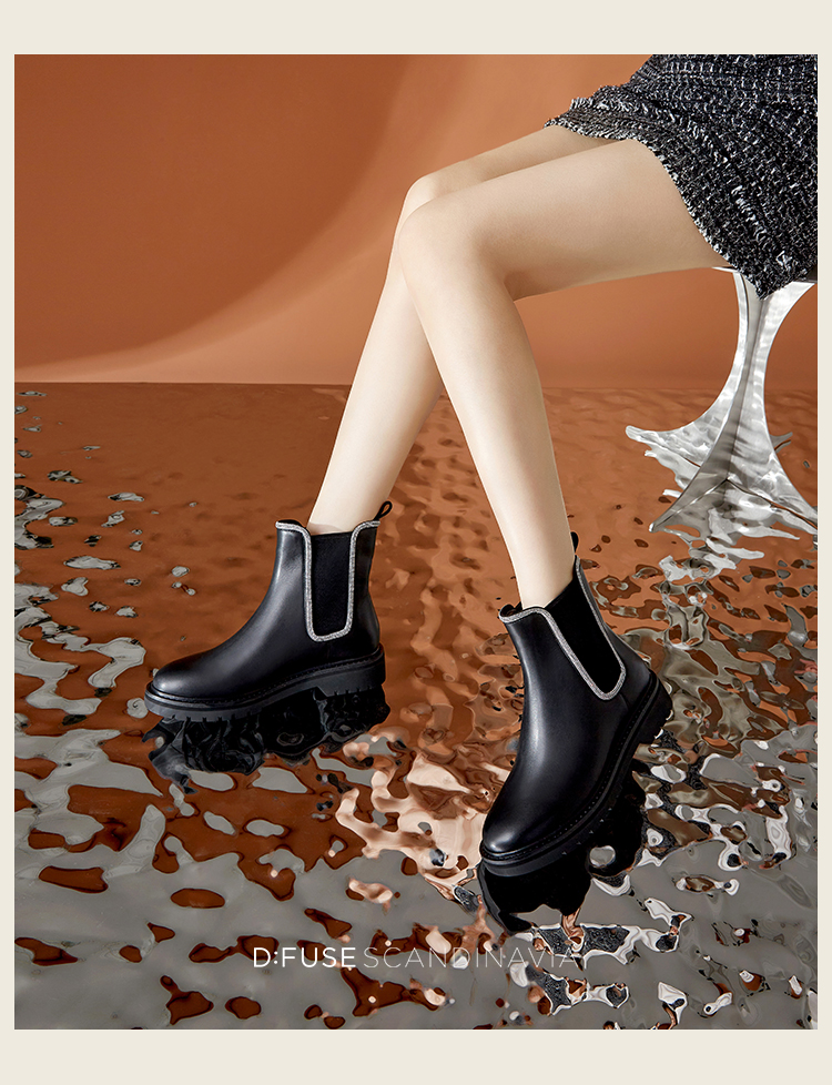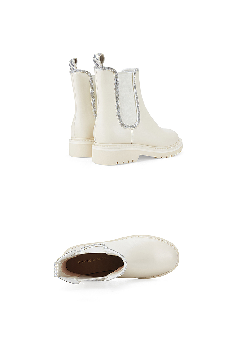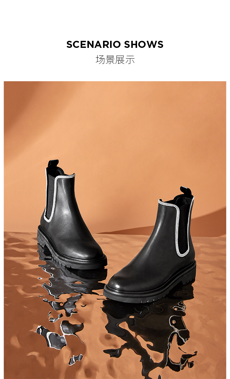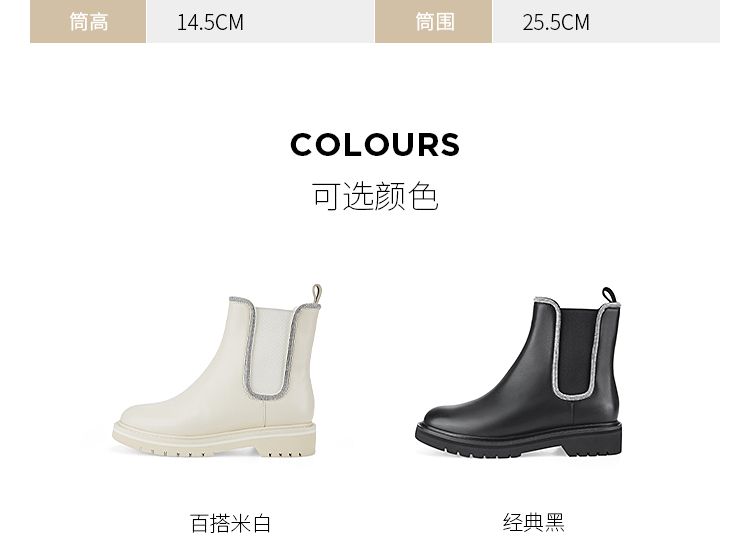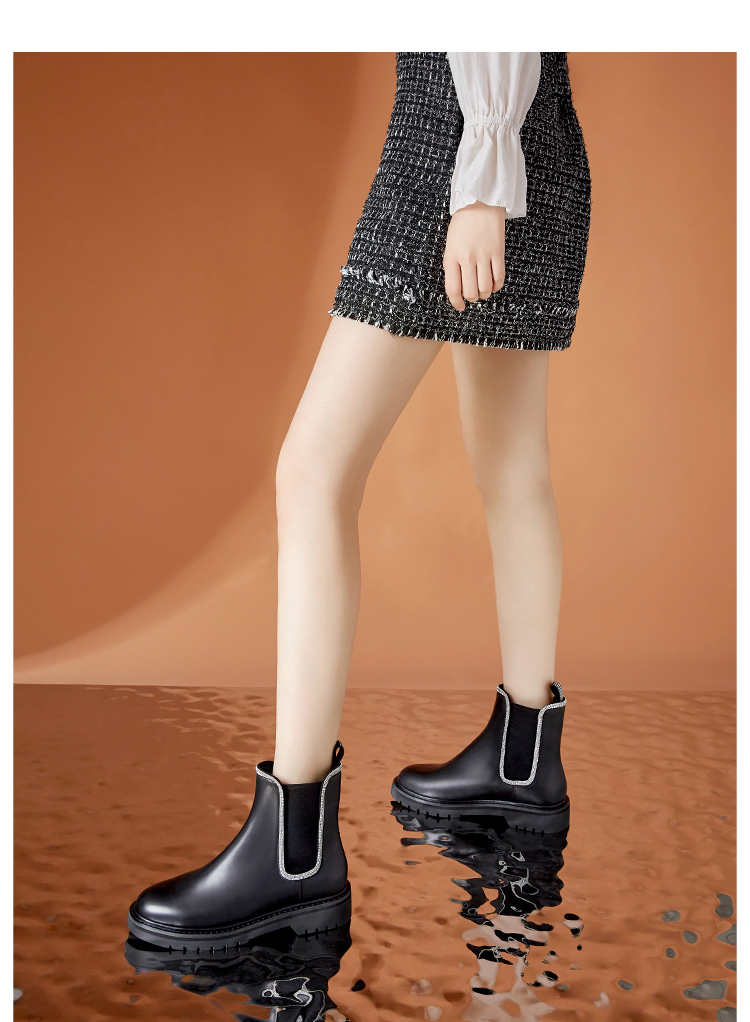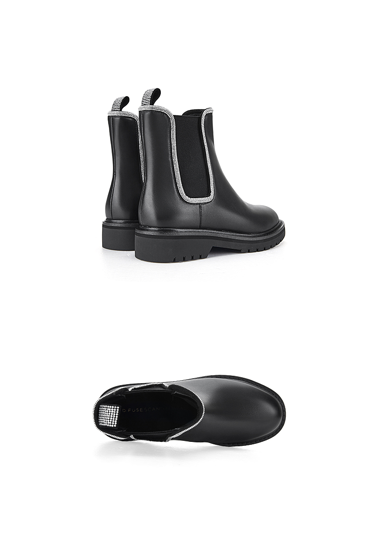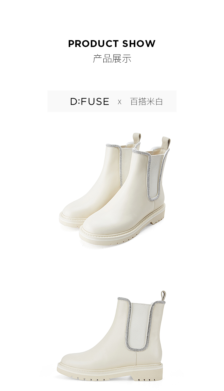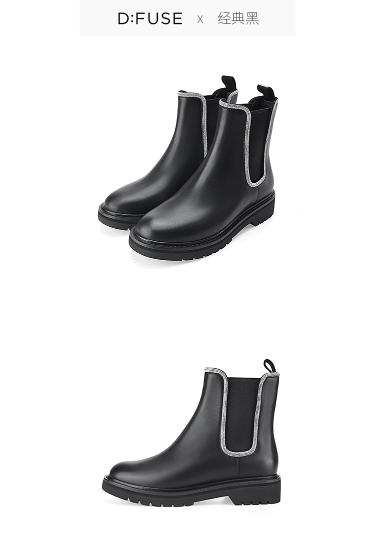 Dfuse迪芙斯冬季新款牛皮圆头经典闪钻切尔西短靴DF34116052