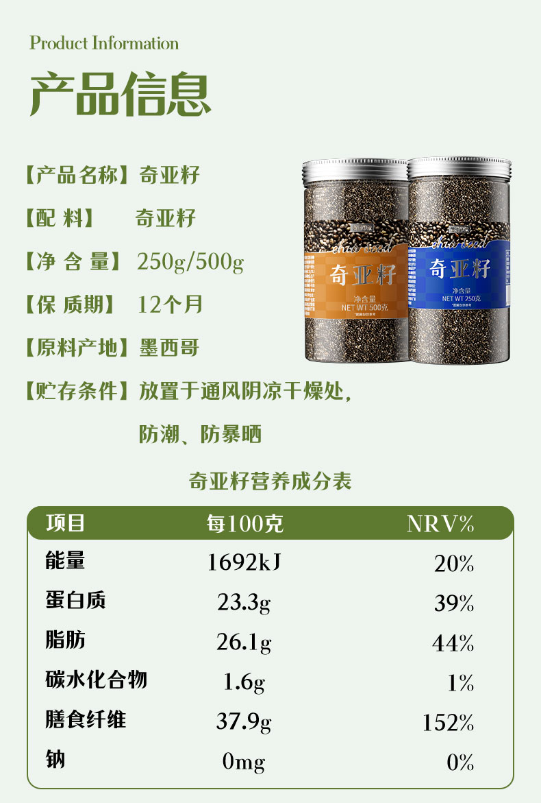 奇亚籽瓶装代餐专用袋装墨西哥进口奇亚籽即食饱腹代餐