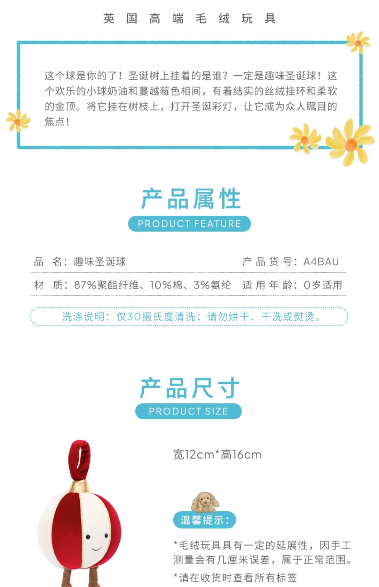 Jellycat 趣味圣诞球 16cm
