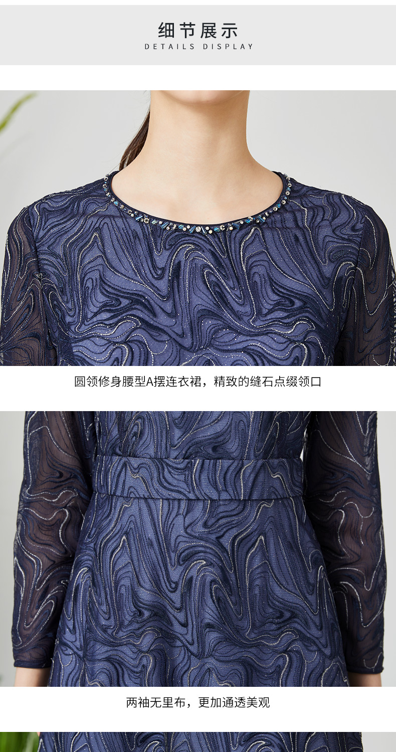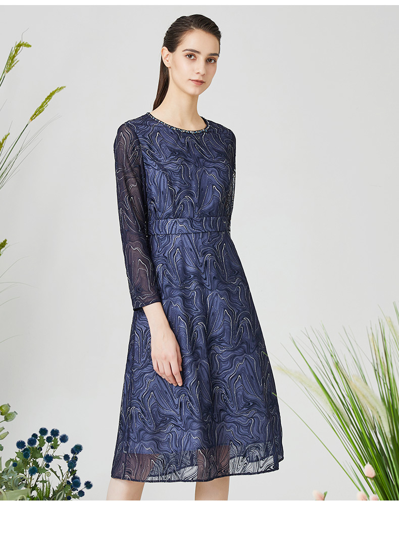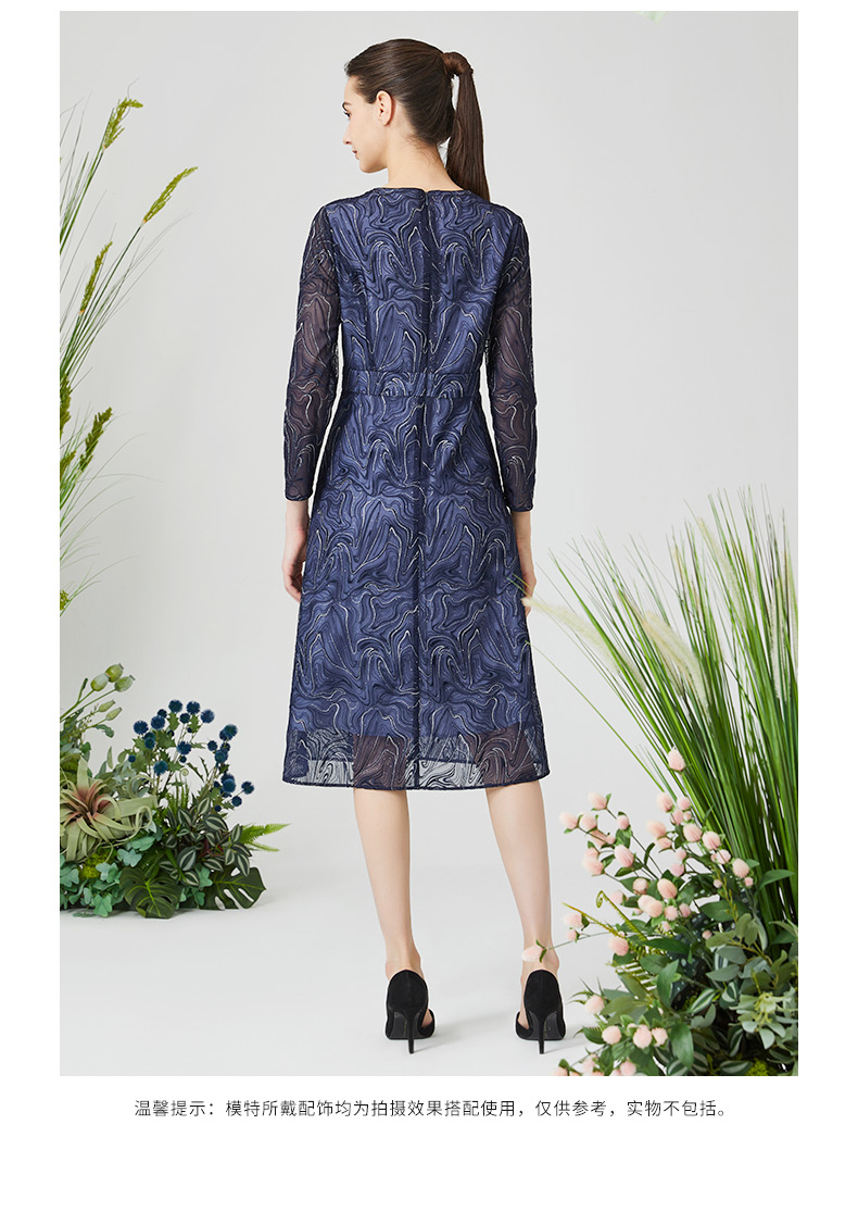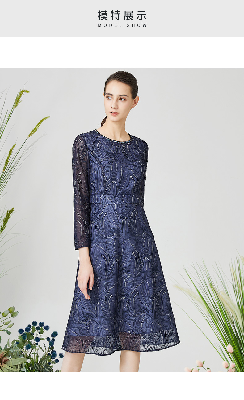 皮尔卡丹女装春季新款简约淑女蕾丝百搭连衣裙P3121E3048N0