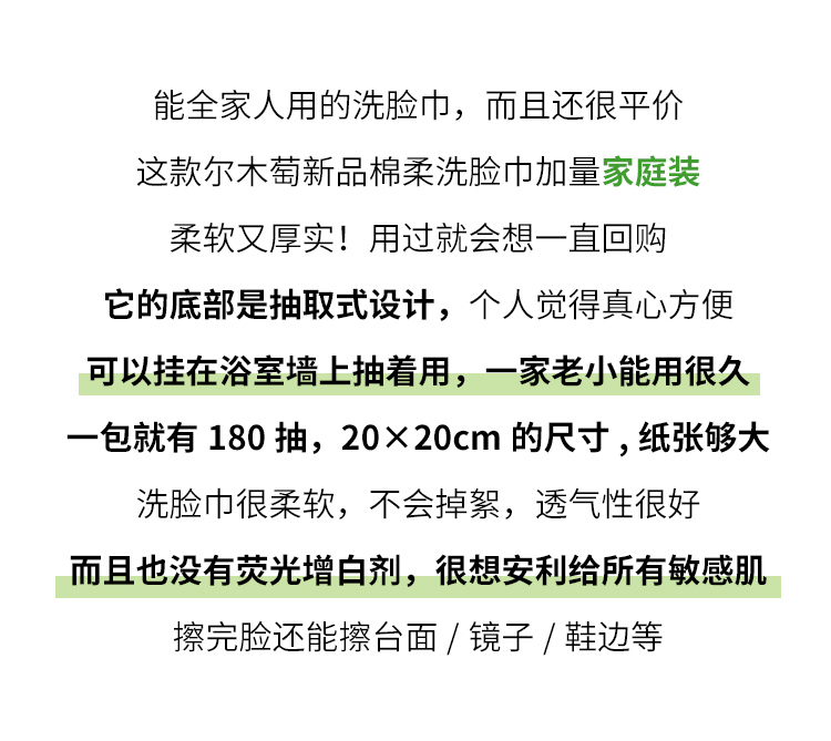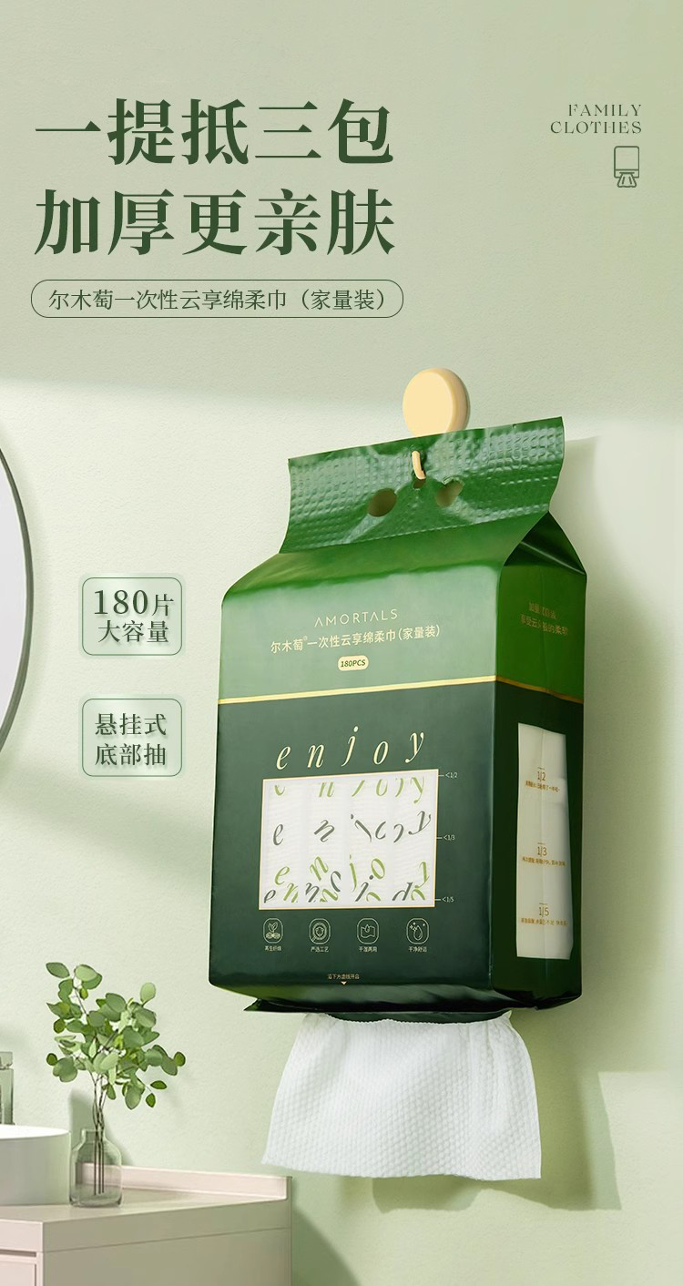 尔木萄家庭装洗脸巾 悬挂抽取式加大加厚洁面巾
