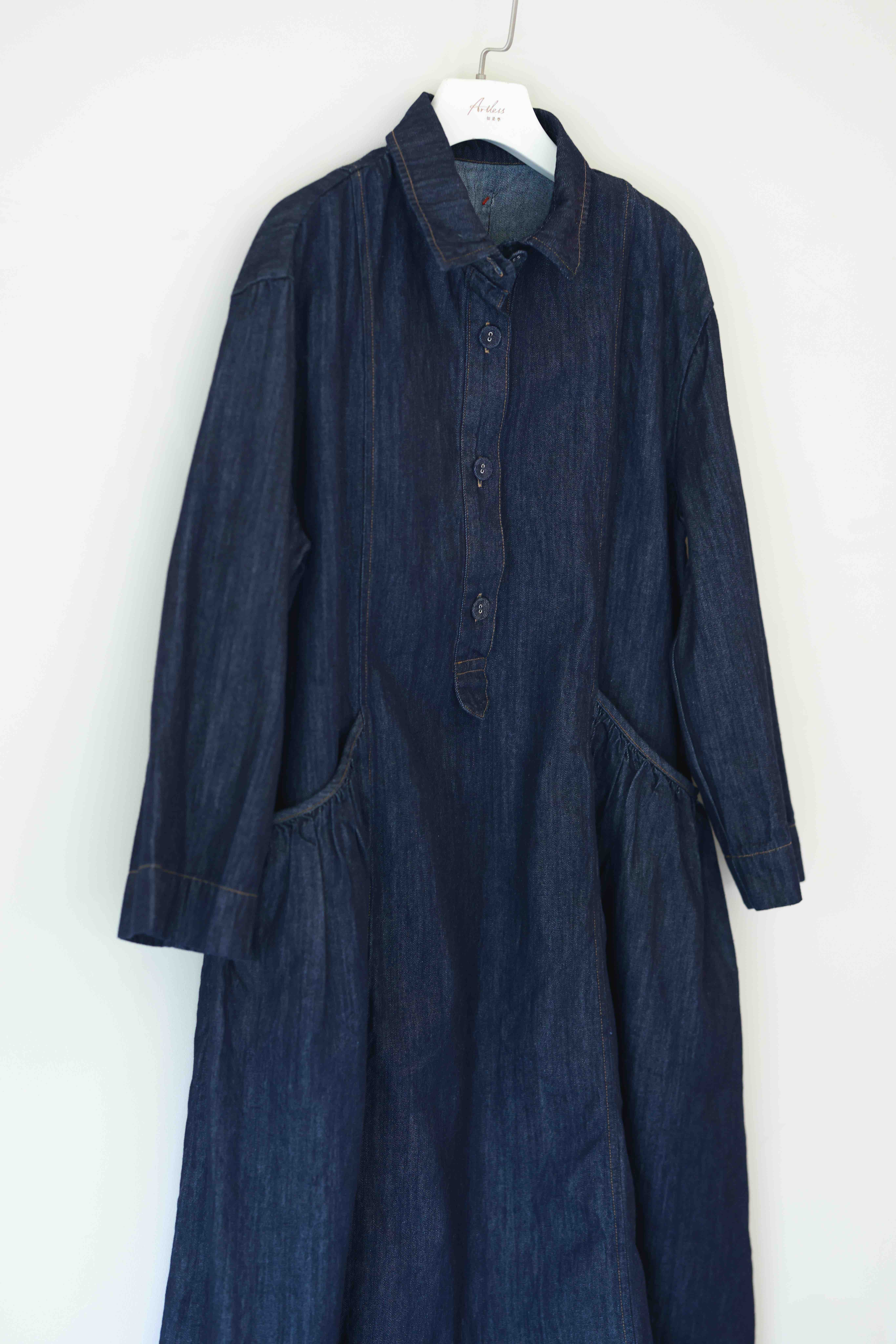 黄阿福 羊毛亚麻经典双口袋连衣裙