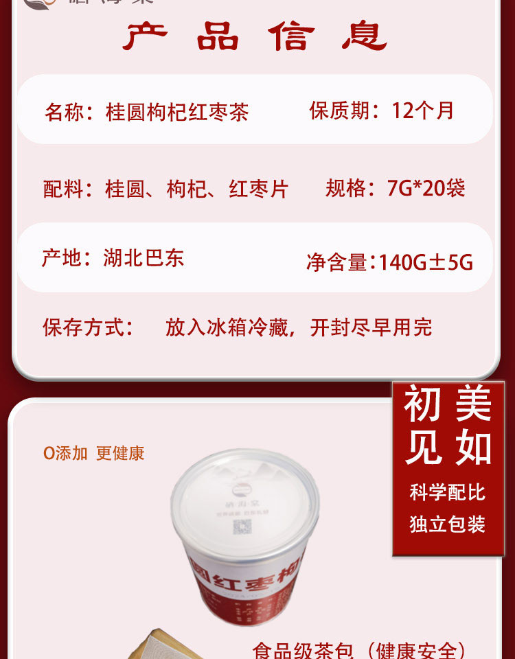 恩施巴东 益合青 桂圆红枣枸杞茶 140g