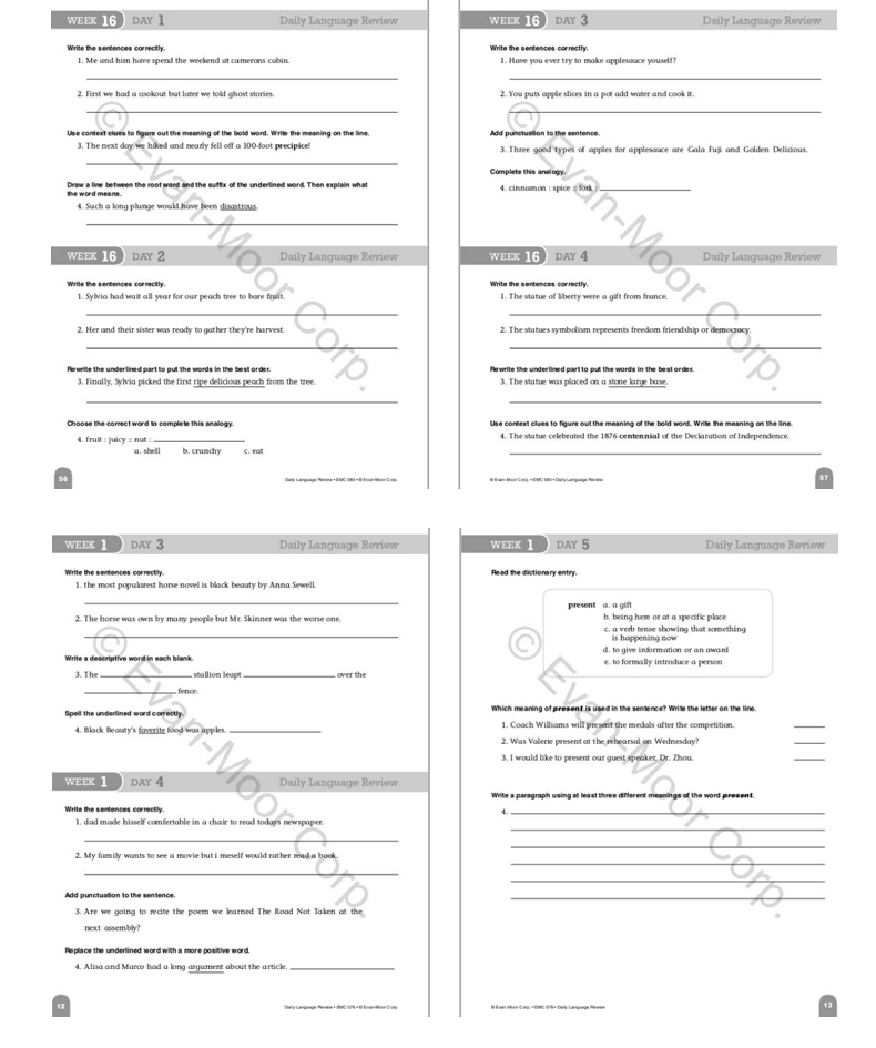 Evan-Moor Daily Language Review TE 每日练习系列 语言复习 完整版